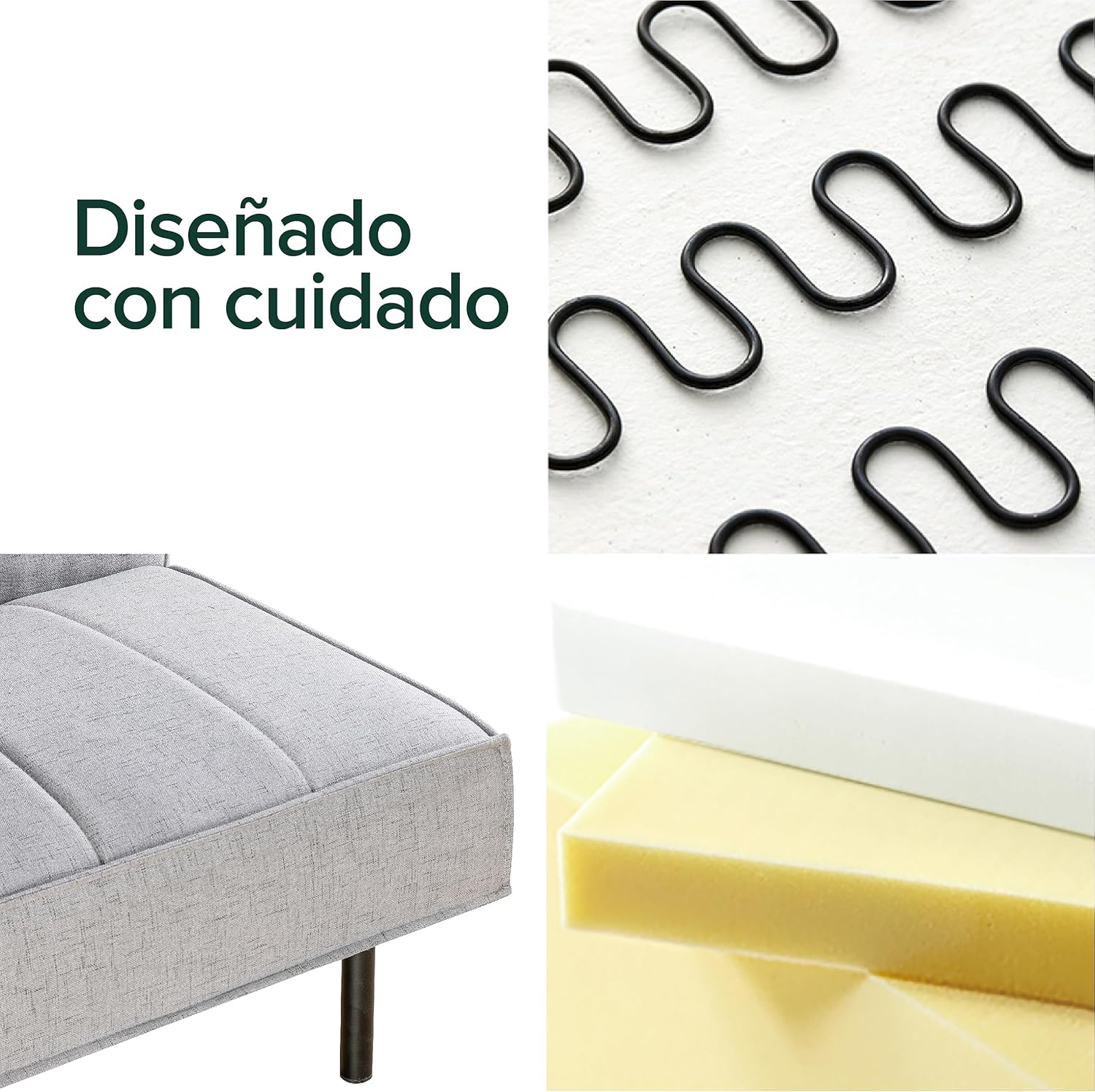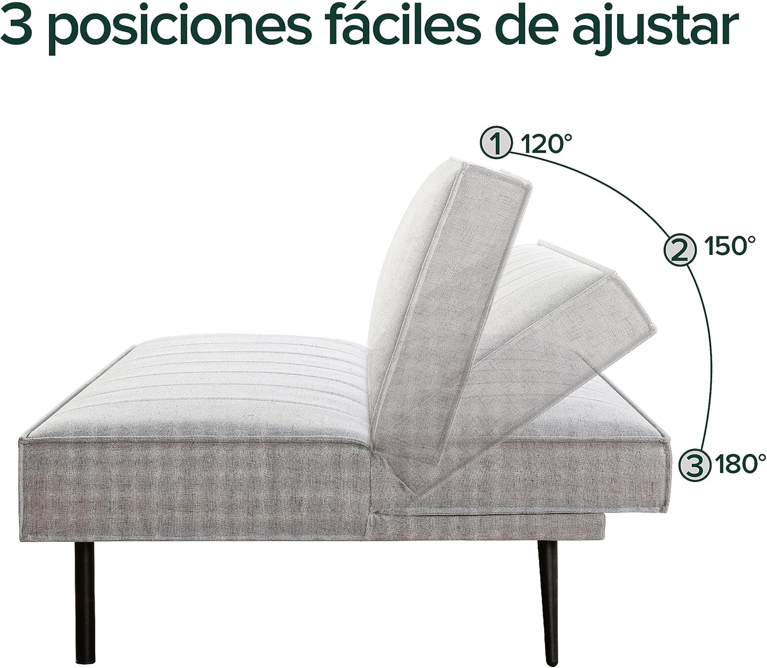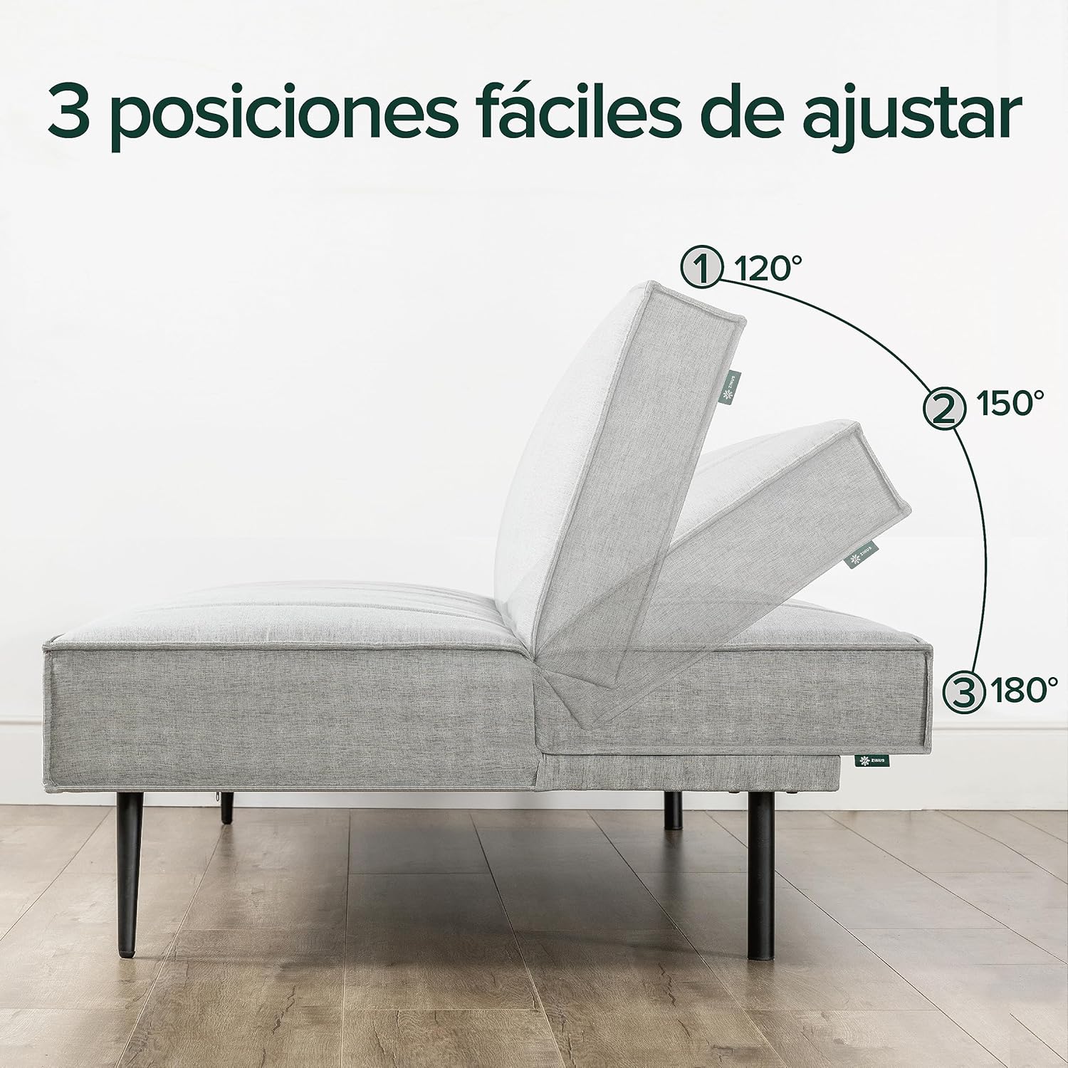 Zinus Quinn Clic Clac Sofá Cama - Sofá Cama Plegable 2 en 1 - Adecuado para habitaciones de invitados y espacios pequeños - Gris