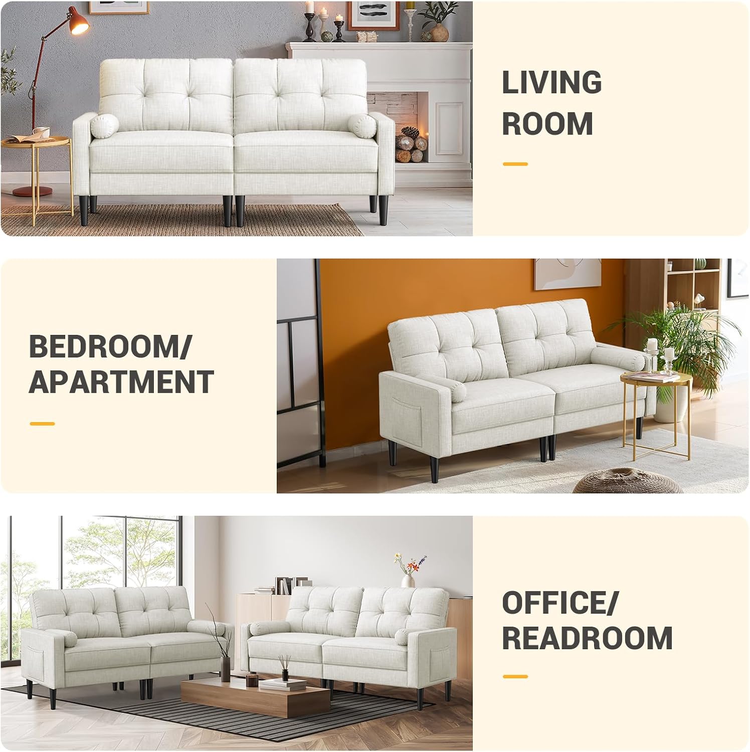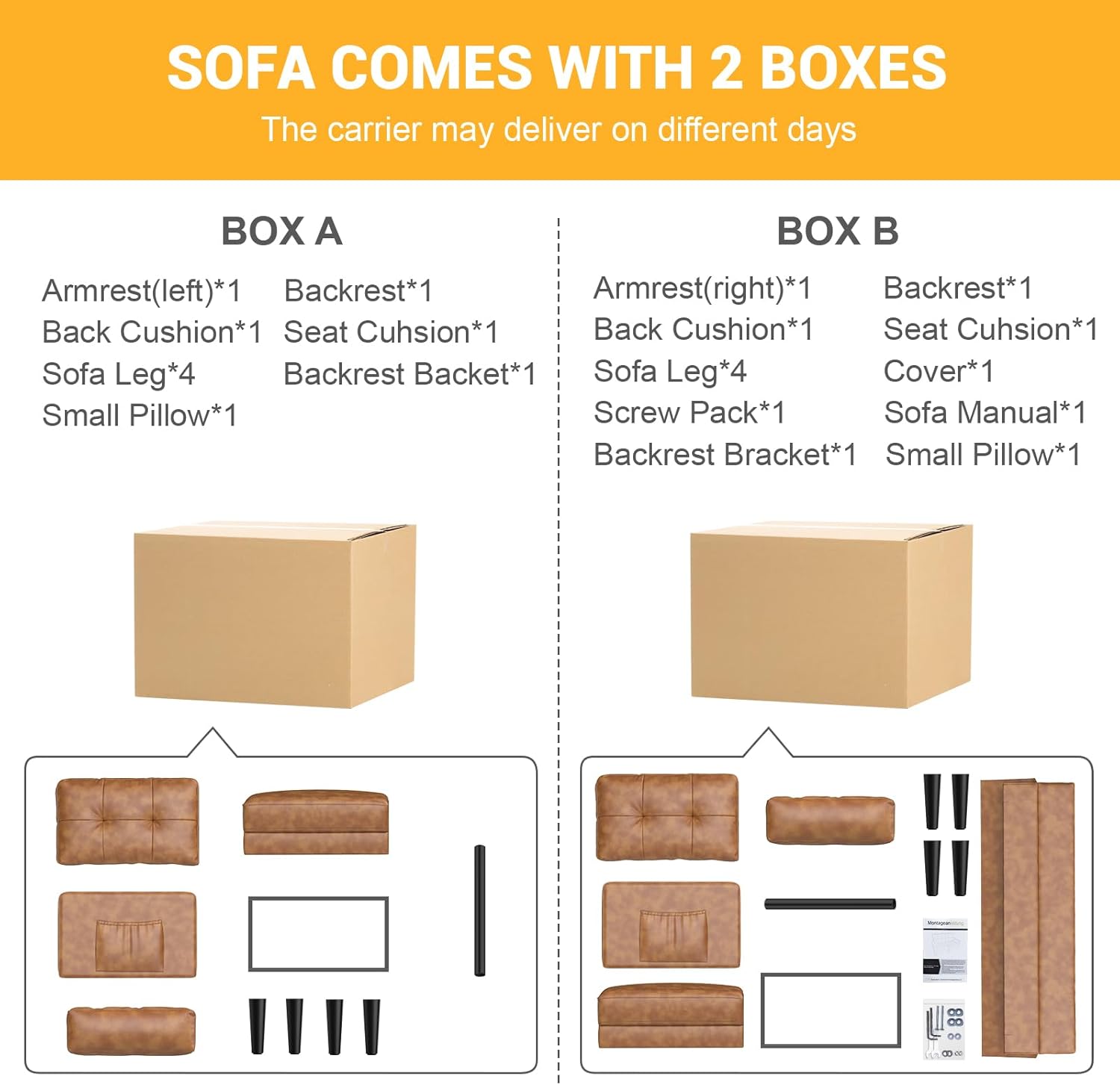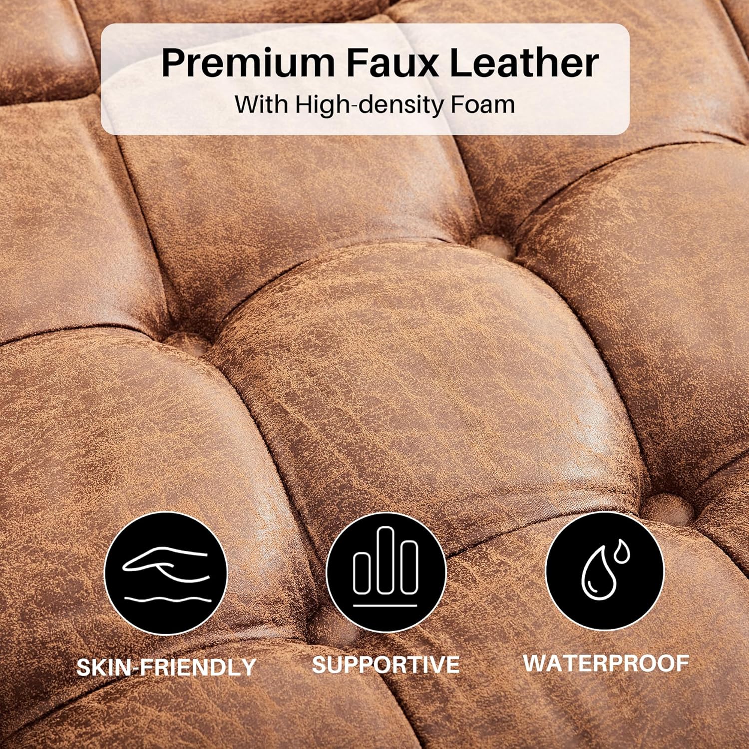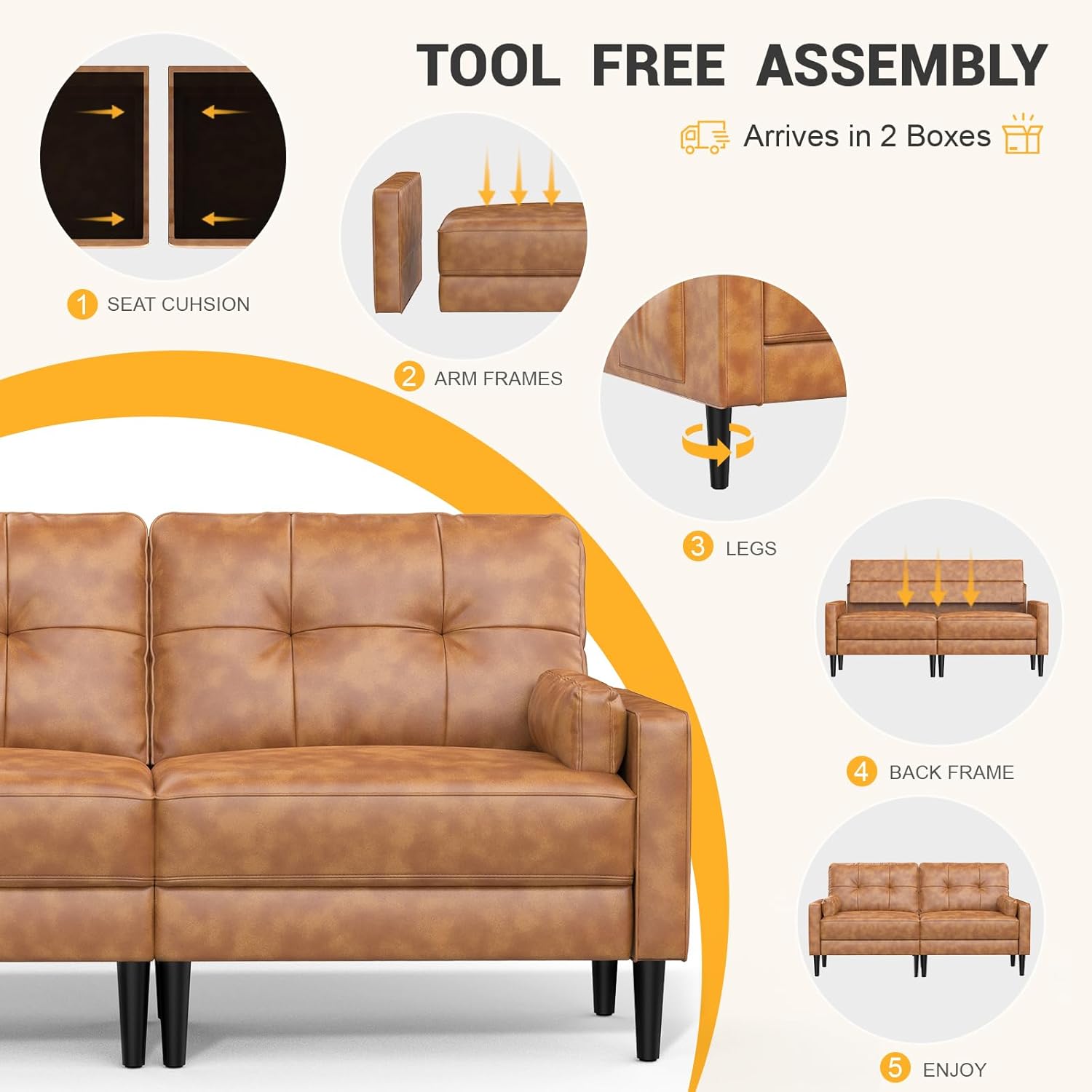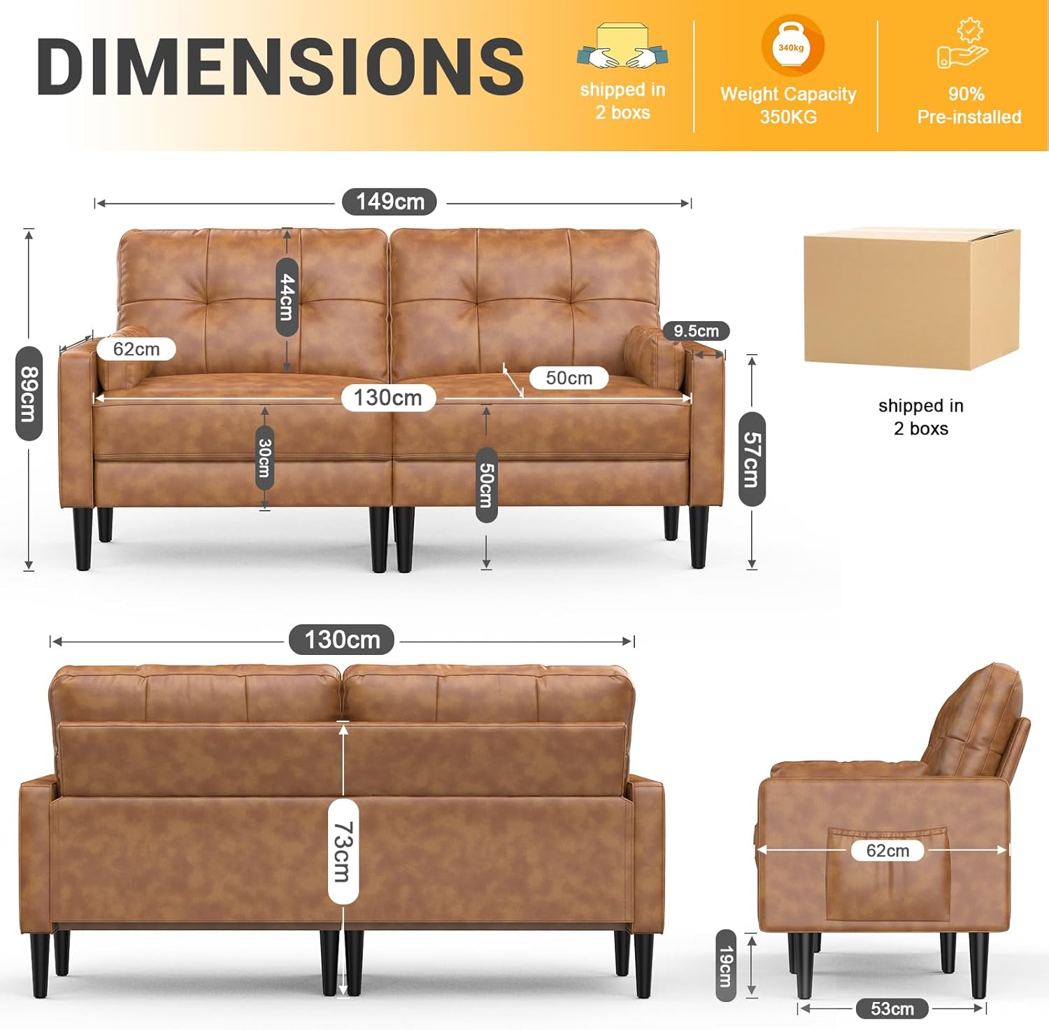 Aotumm Ciort Sofa 2 Plazas, Sofá Moderno con Cojines Gruesos, 2 Almohadas, Cómodo Sofá de Cuero con 2 Bolsillos de Almacenamiento para Sala de Estar/Dormitorio/Oficina, Sofá Pequeño (Marrón)