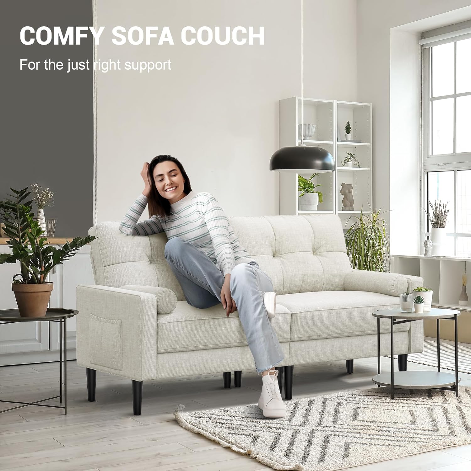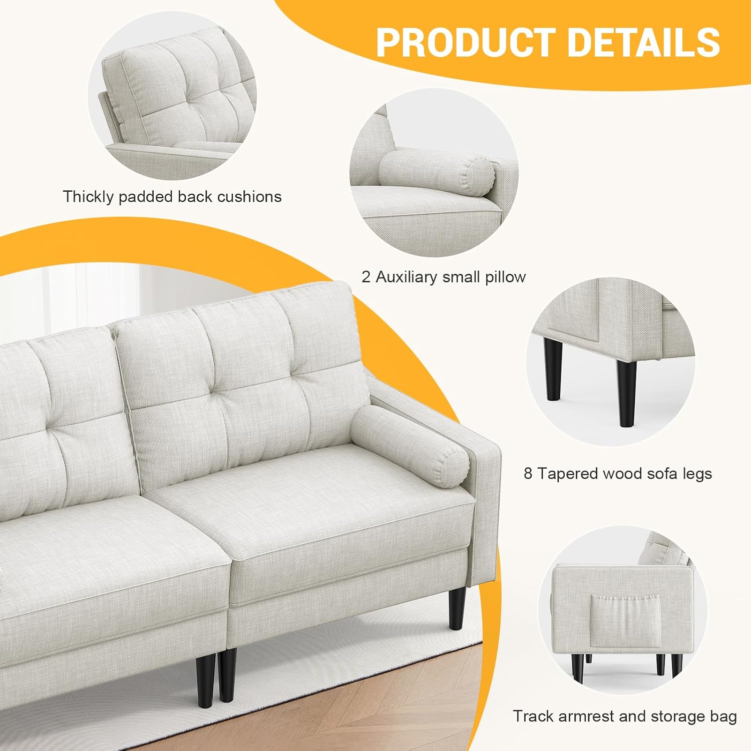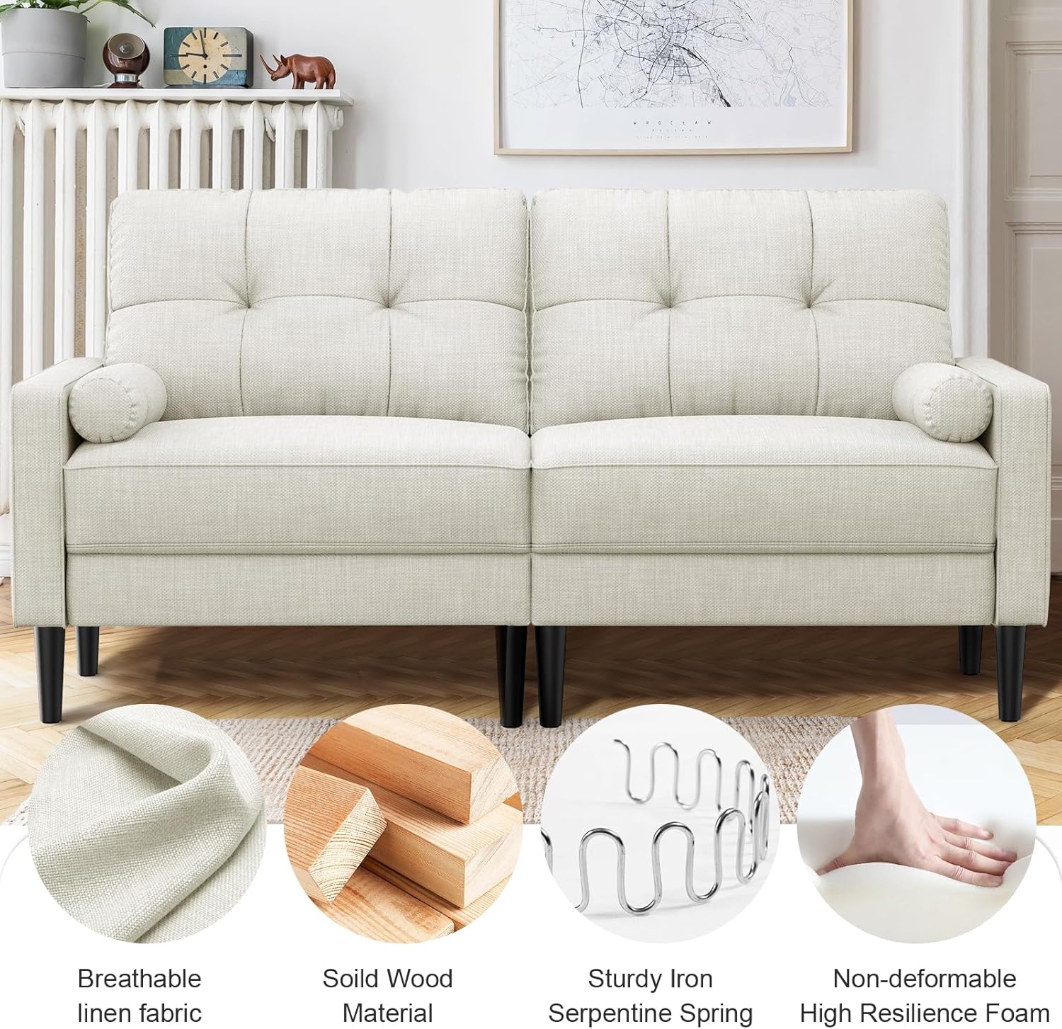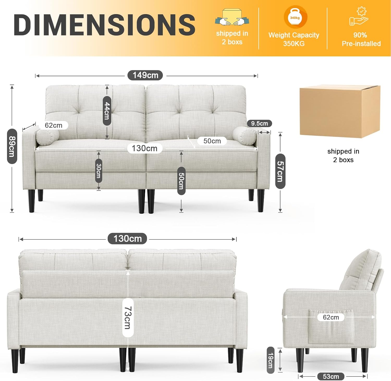 Aotumm Ciort Sofa 2 Plazas, Sofá Moderno con Cojines Gruesos, 2 Almohadas, Cómodo Sofá de Cuero con 2 Bolsillos de Almacenamiento para Sala de Estar/Dormitorio/Oficina, Sofá Pequeño (Marrón)
