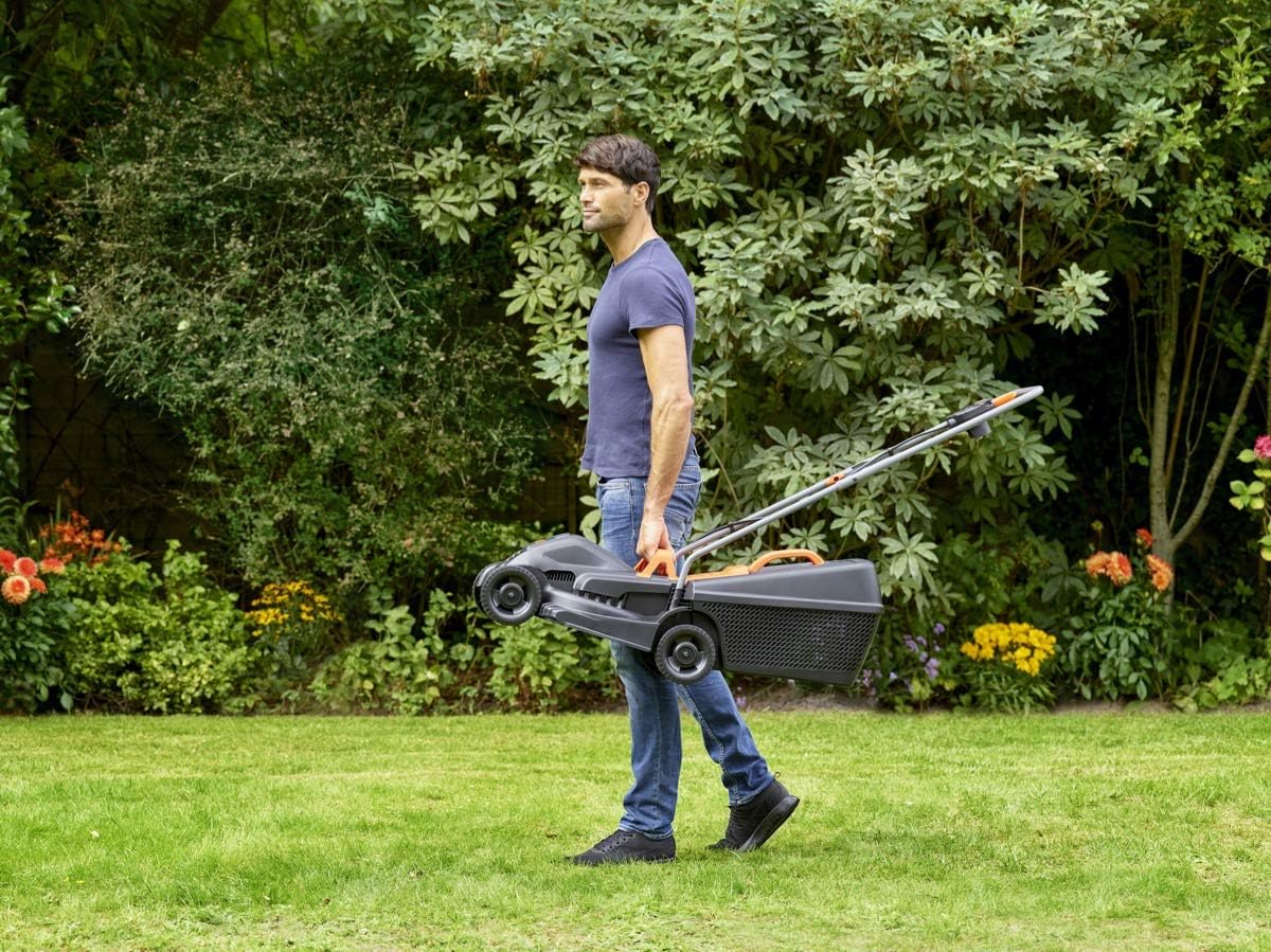 BLACK+DECKER Cortacésped con Manillar de Tipo Bicicleta 1600W, Ancho de Corte 38cm, Sistema E-Drive, EdgeMax y SoftTouch, 6 Alturas de Corte, Depósito 45L, BEMW471BH