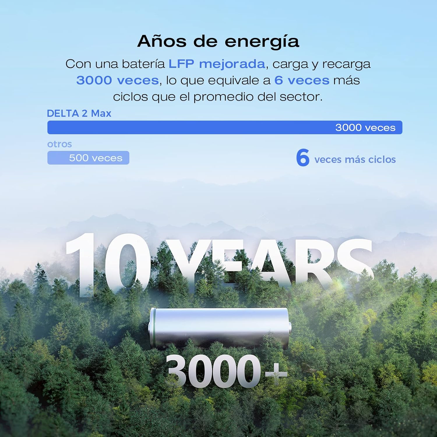 EcoFlow DELTA 2 Max Portable Power Station, 2048Wh, 3000 AC Cycles LFP Battery 80% Charge in 53mins, Power Up to 3100W Quiet Solar Generator for Home/Caravan/Camping