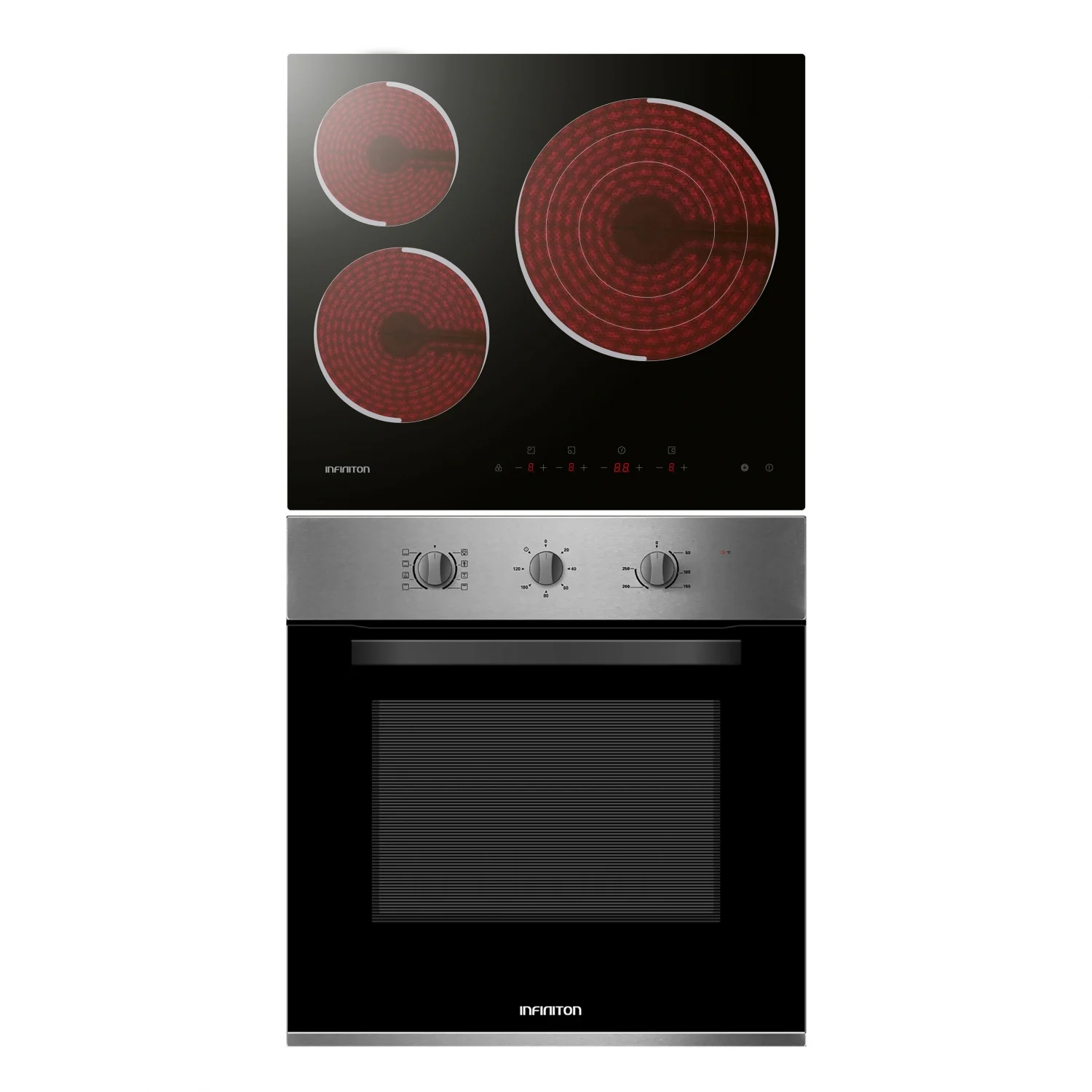 Conjunto Horno Multifunción y Placa Vitrocerámica Infiniton HV-CB65H30, 8 Funciones de Cocción y 3 Zonas de Cocción, Eficiencia A - Inox
