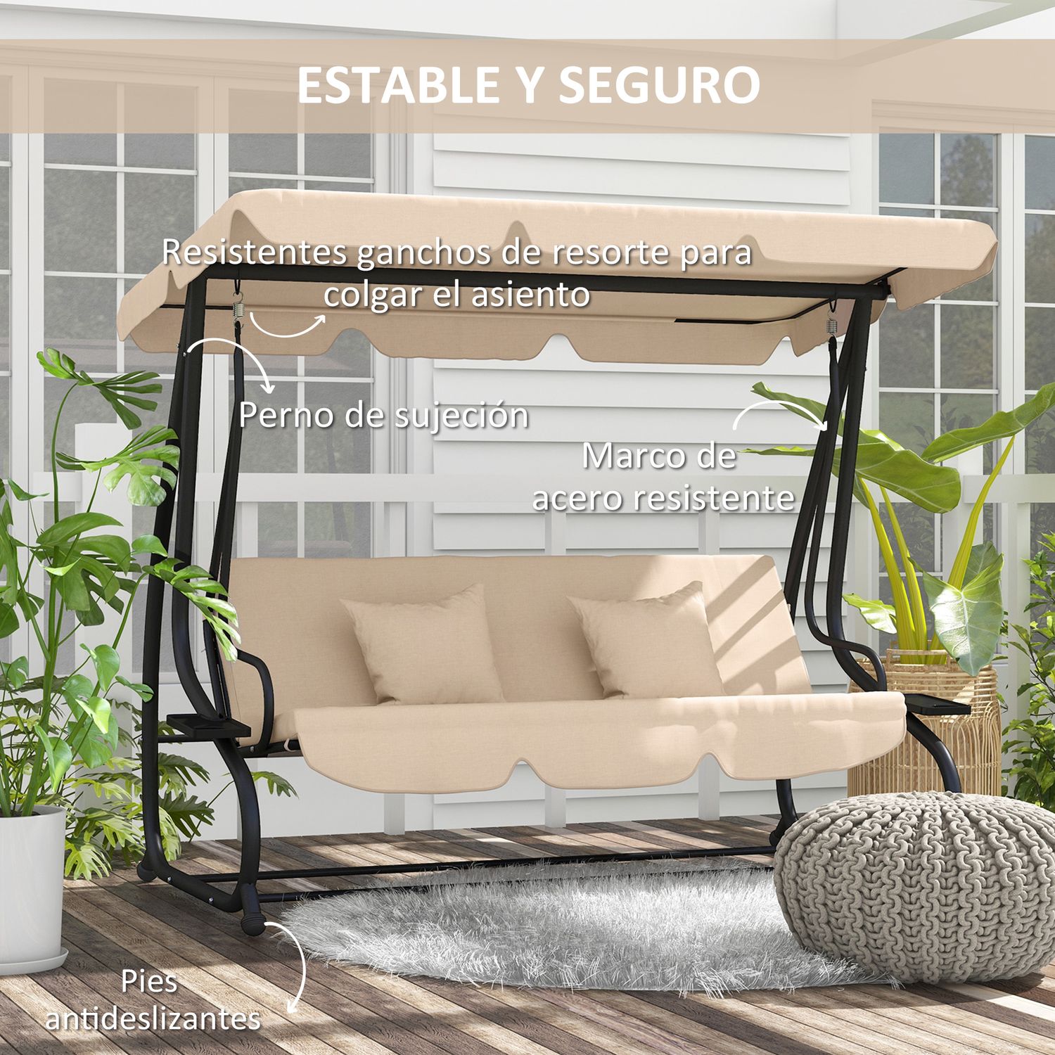 Columpio De Jardín Exterior Outsunny Poliéster 200x120x164 Cm Arena
