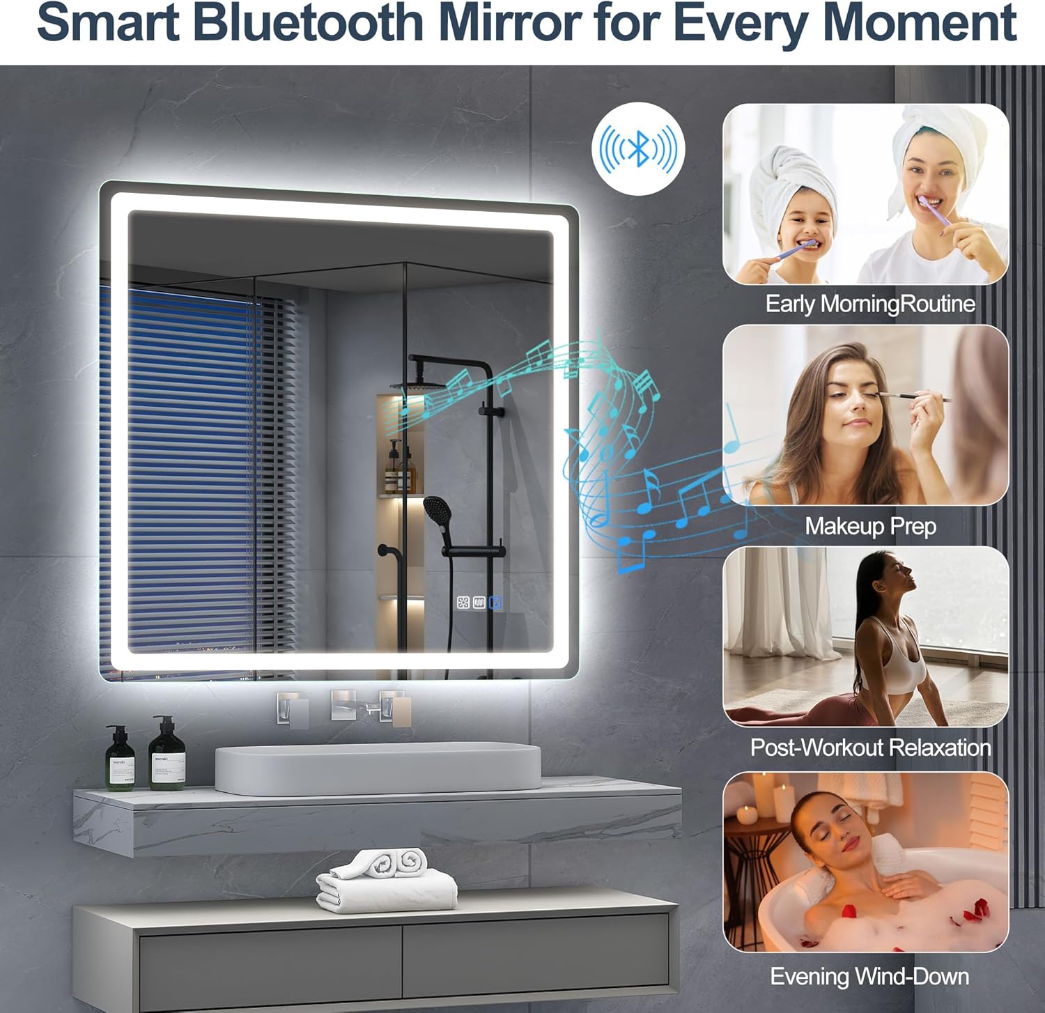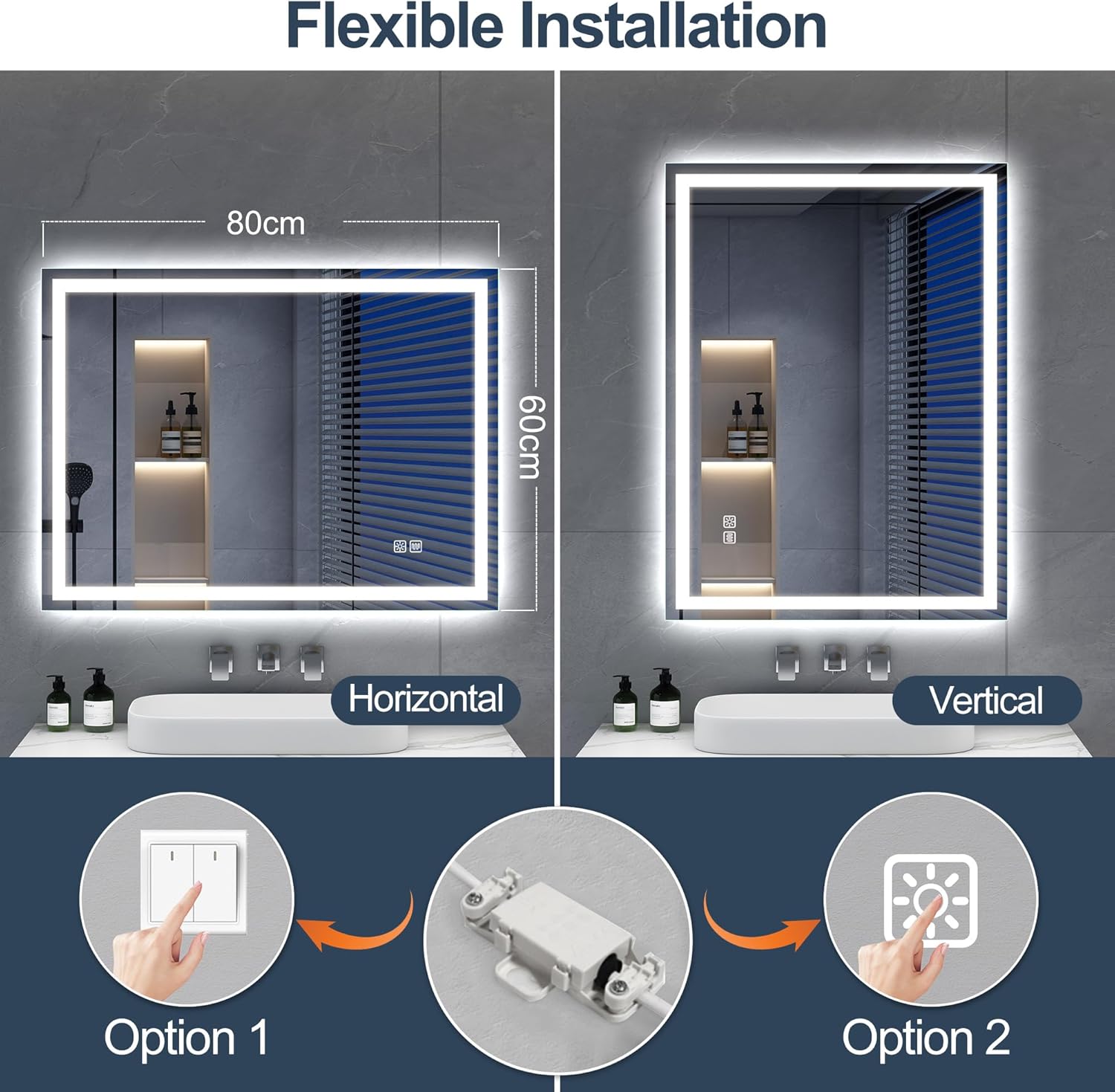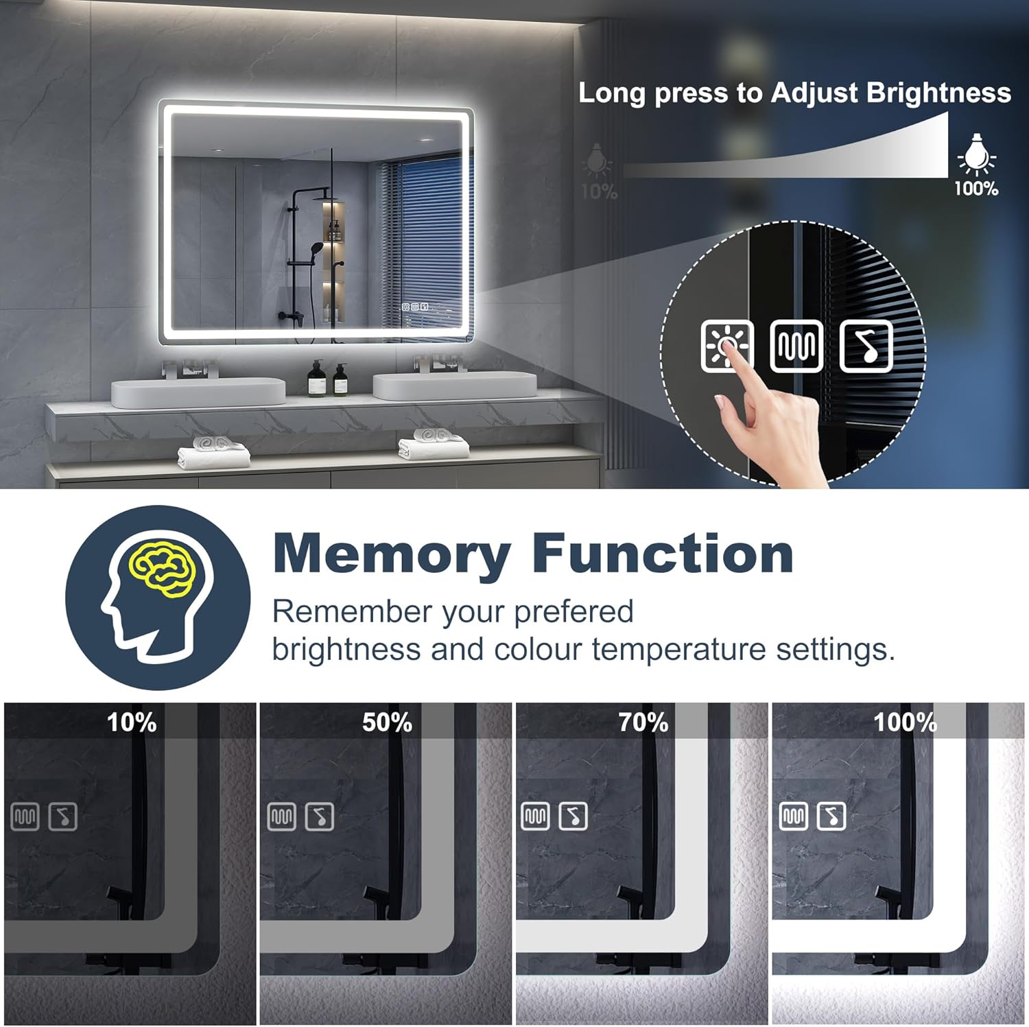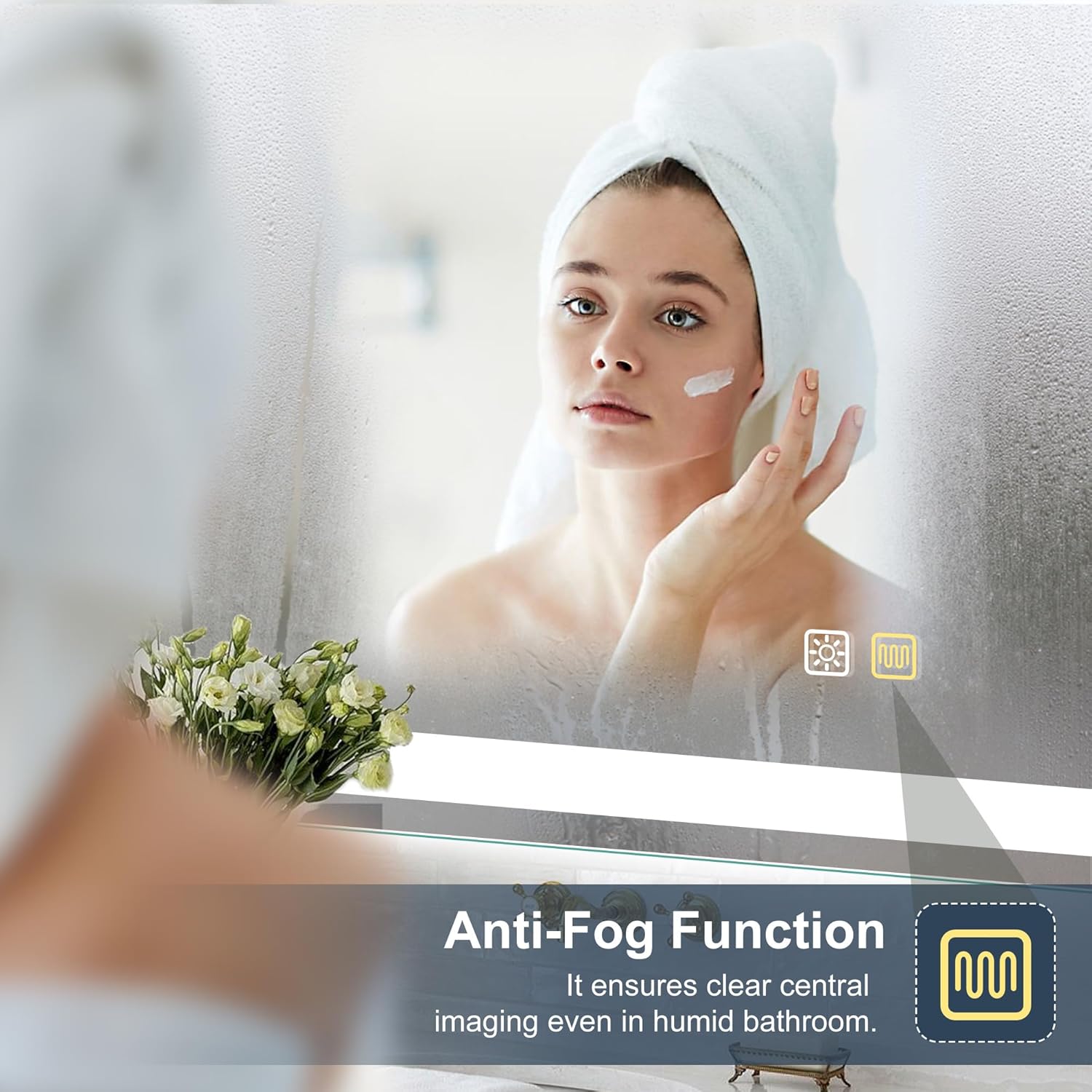 S'bagno Espejo-Baño-con-Luz 120x70cm, Espejo-Baño-LED-Bluetooth con Función Antivaho, 3000K/4000K/6500K, Regulable, Memoria, Cristal Templado HD, IP44-Espejos-de-Baño-con-LED, Horizontal/Vertical