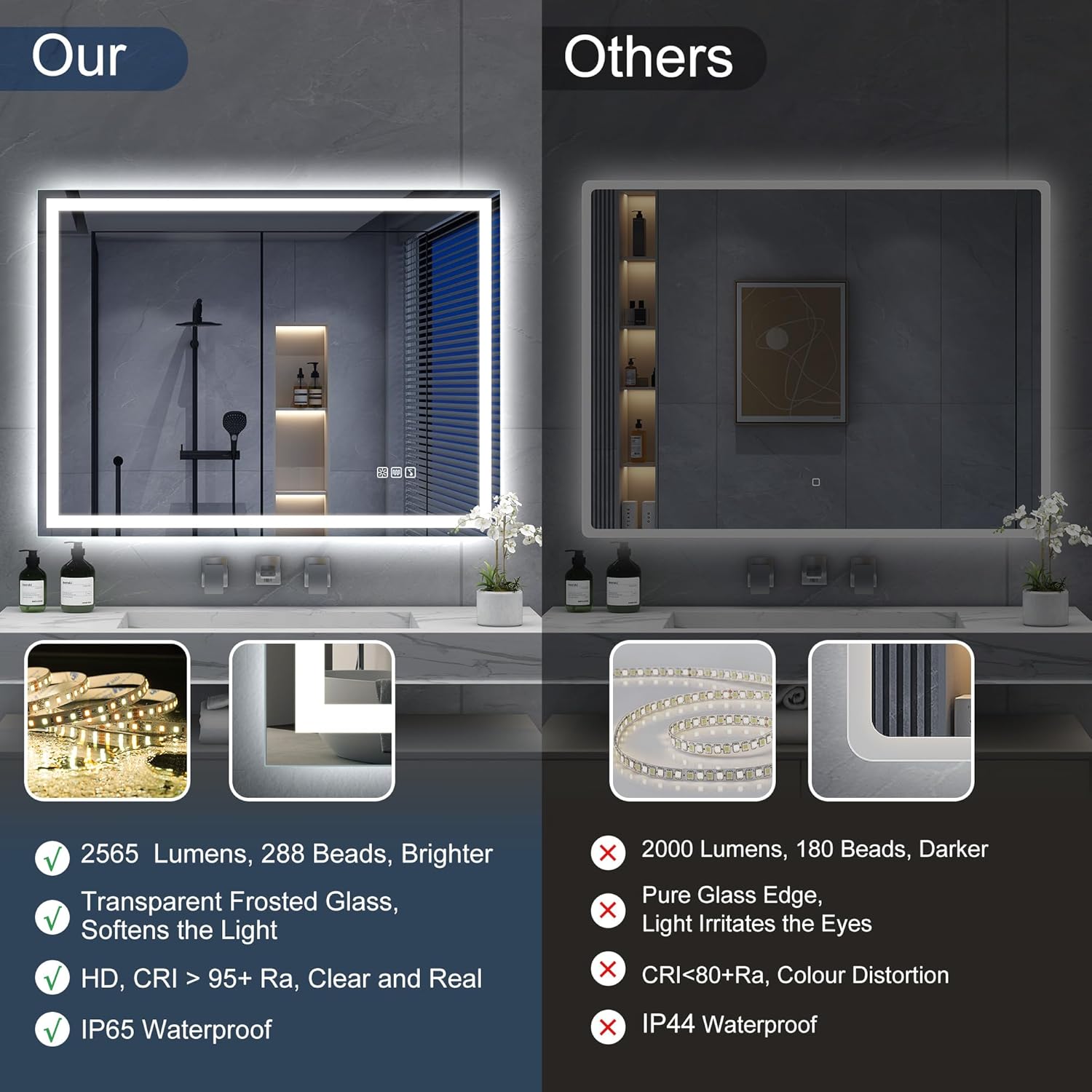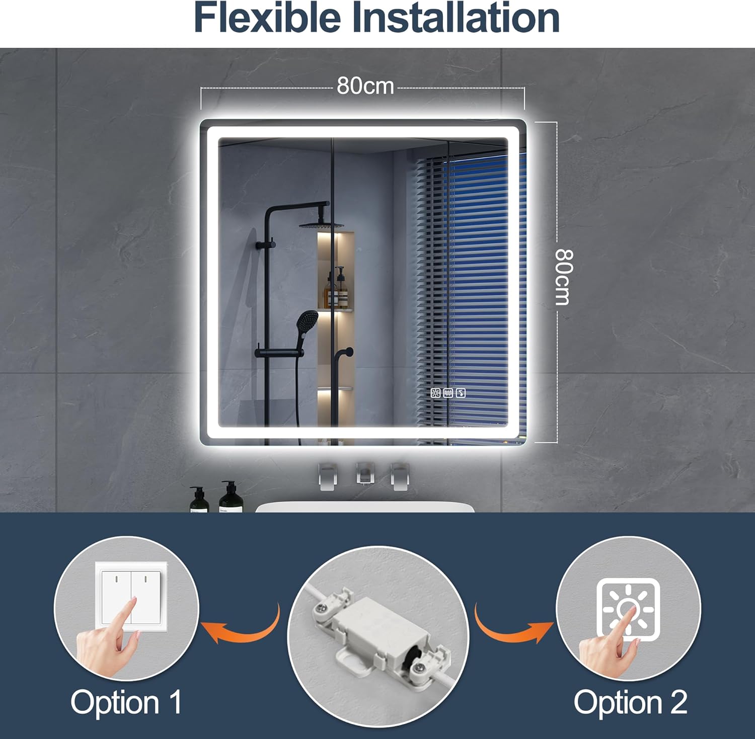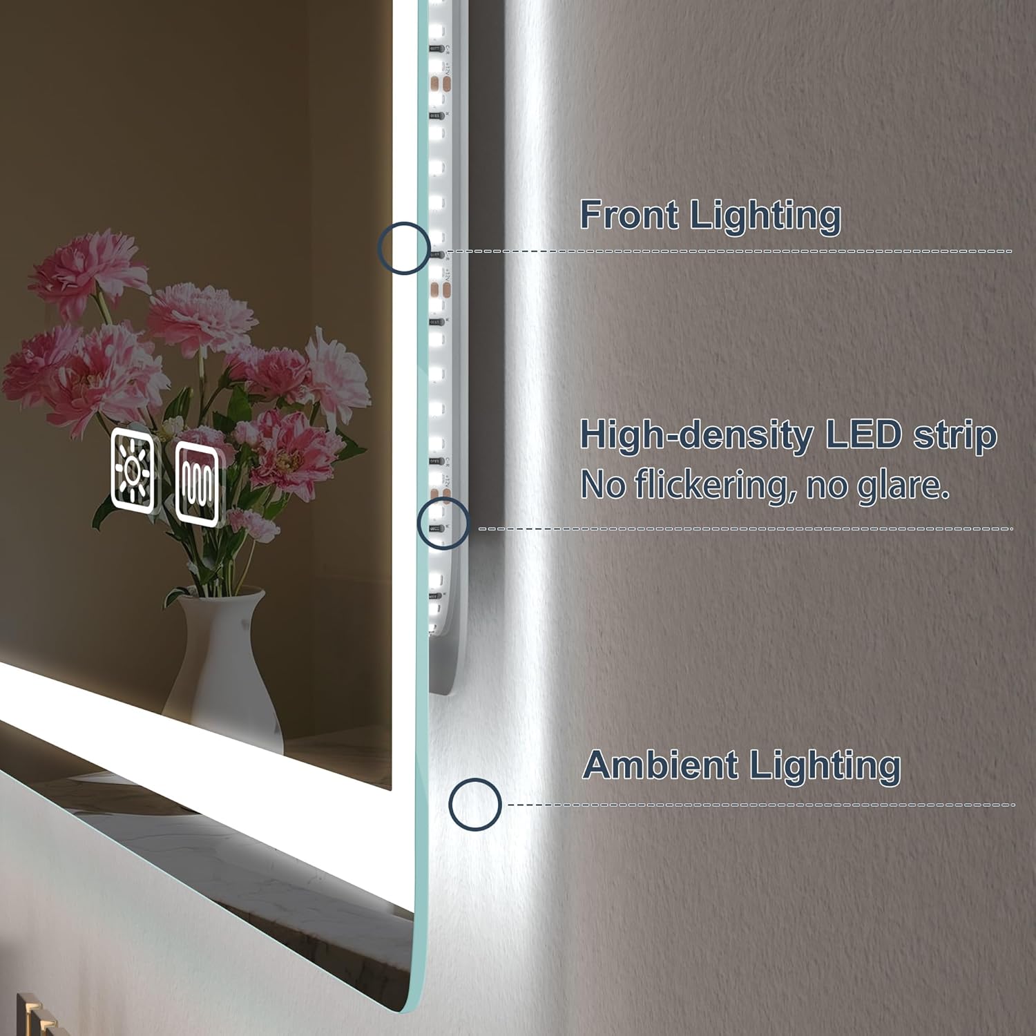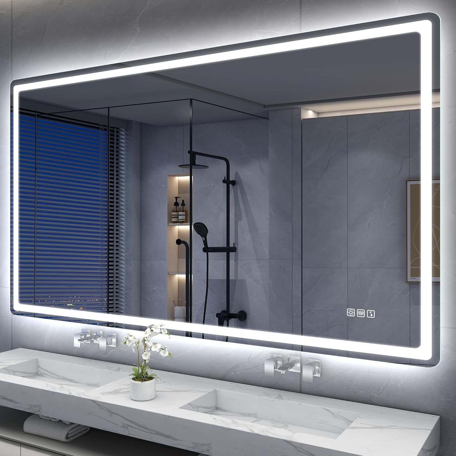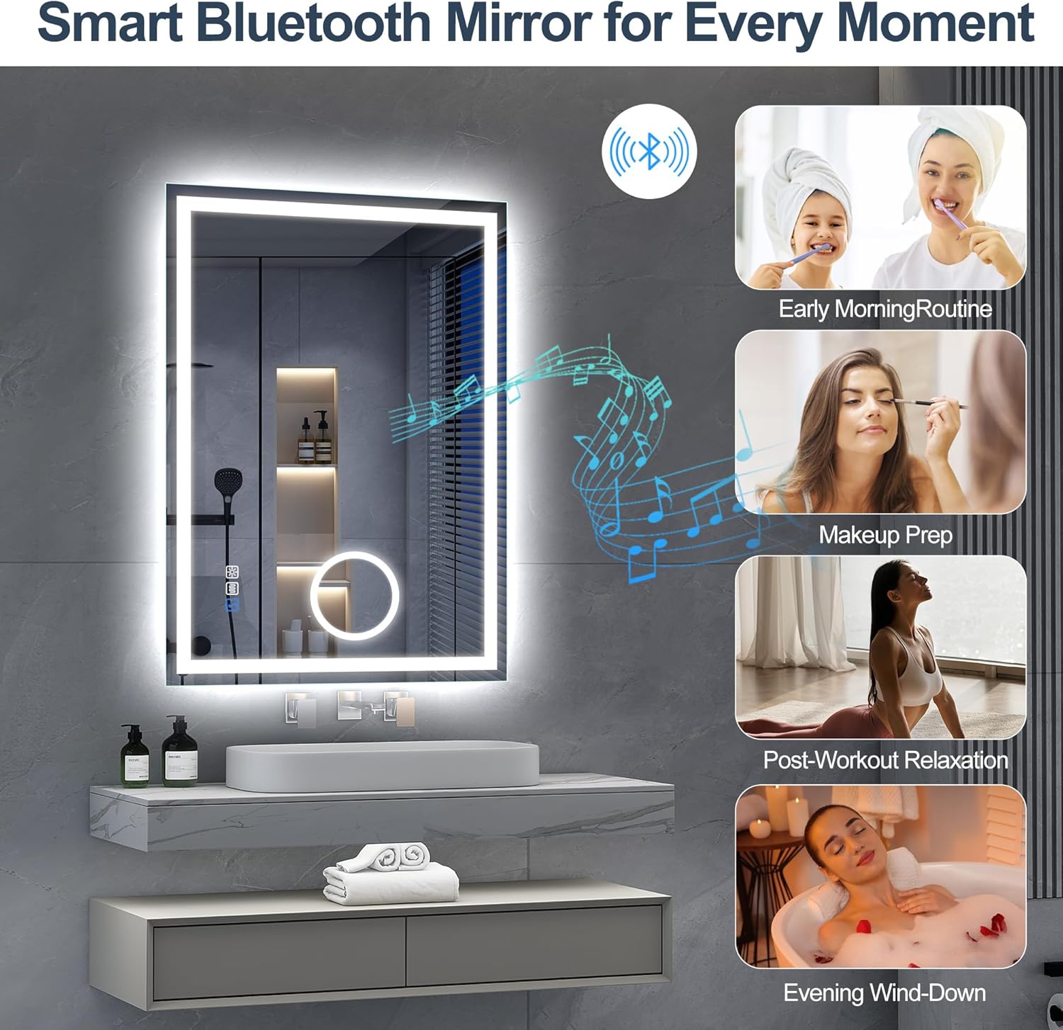 S'bagno Espejo-Baño-con-Luz 120x70cm, Espejo-Baño-LED-Bluetooth con Función Antivaho, 3000K/4000K/6500K, Regulable, Memoria, Cristal Templado HD, IP44-Espejos-de-Baño-con-LED, Horizontal/Vertical