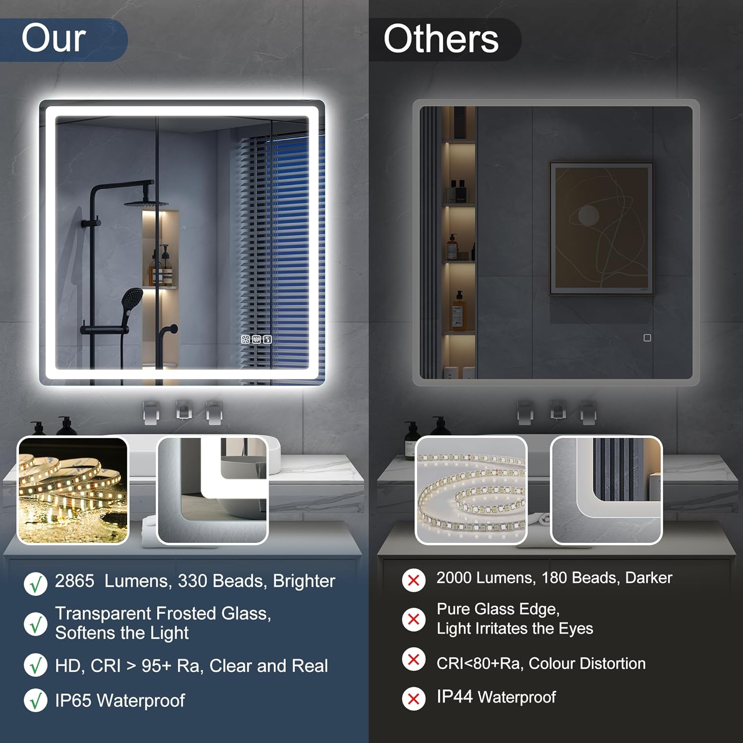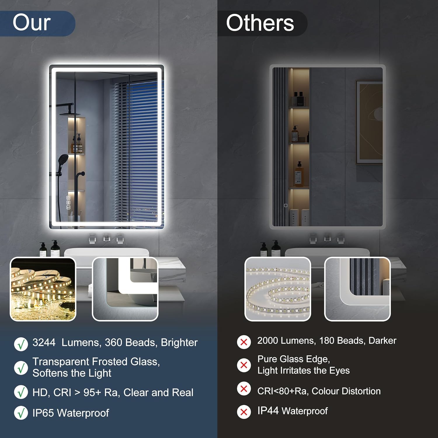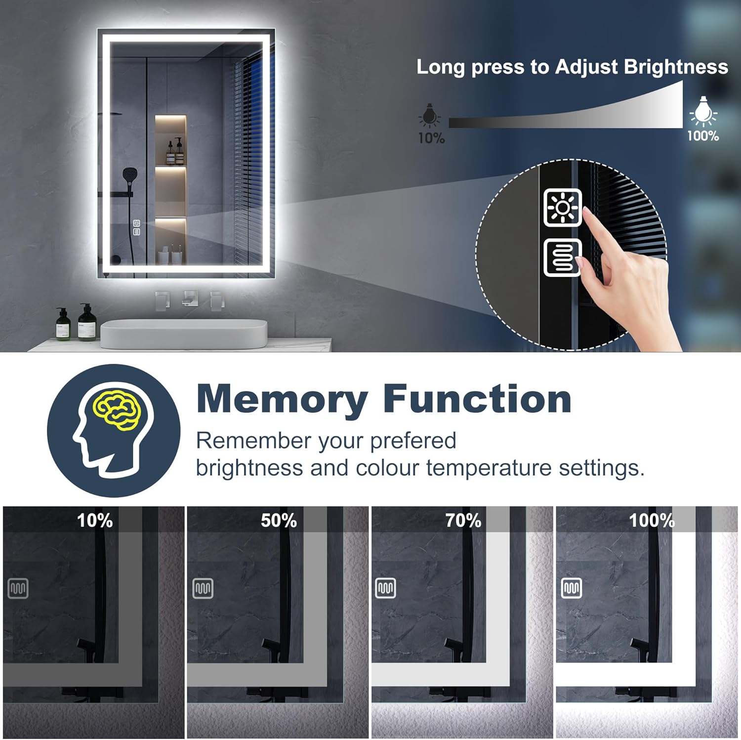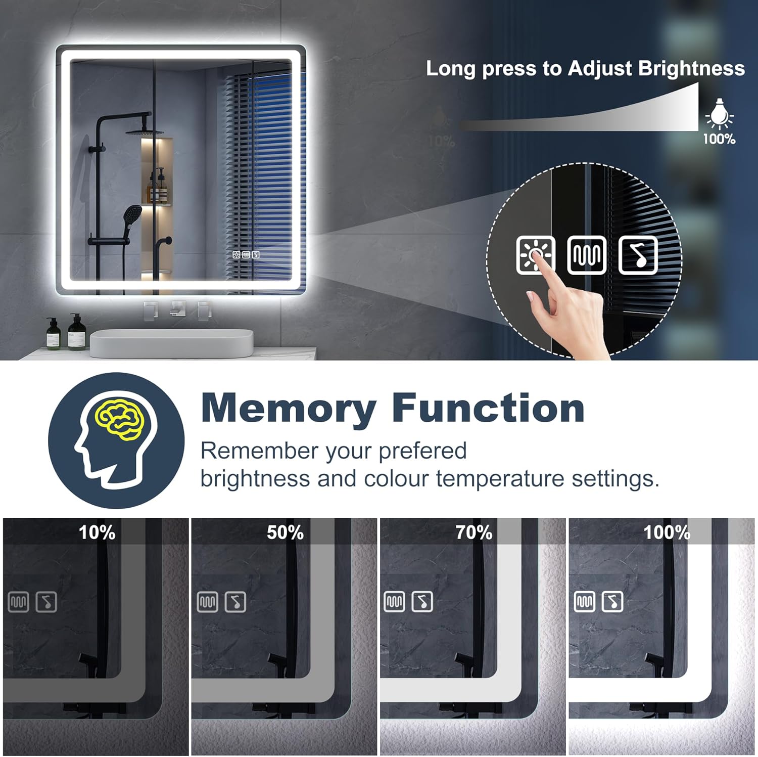 S'bagno Espejo-Baño-con-Luz 120x70cm, Espejo-Baño-LED-Bluetooth con Función Antivaho, 3000K/4000K/6500K, Regulable, Memoria, Cristal Templado HD, IP44-Espejos-de-Baño-con-LED, Horizontal/Vertical