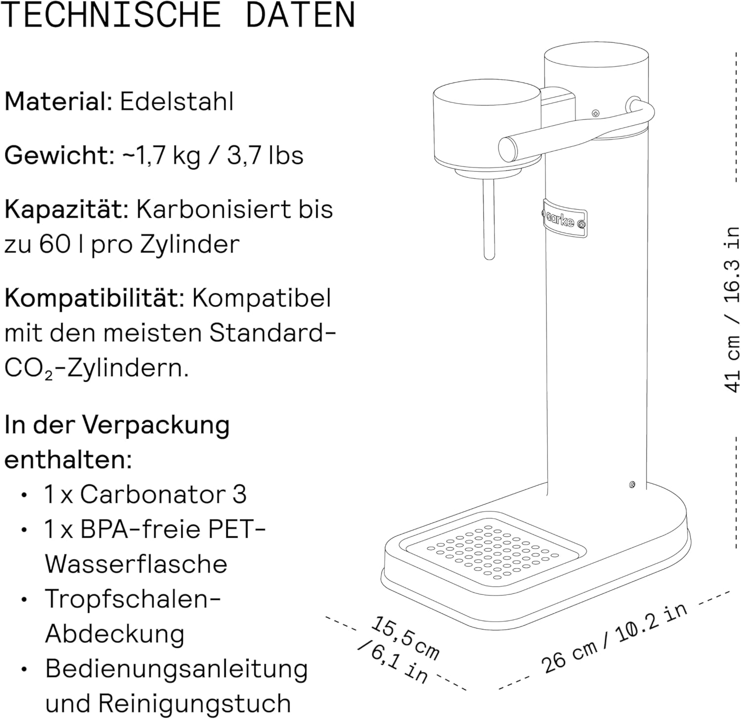 Aarke Carbonator 3, Máquina Gasificadora de Agua en Acero Inoxidable, incluye Dos Botellas (800ml), Acabado en Negro