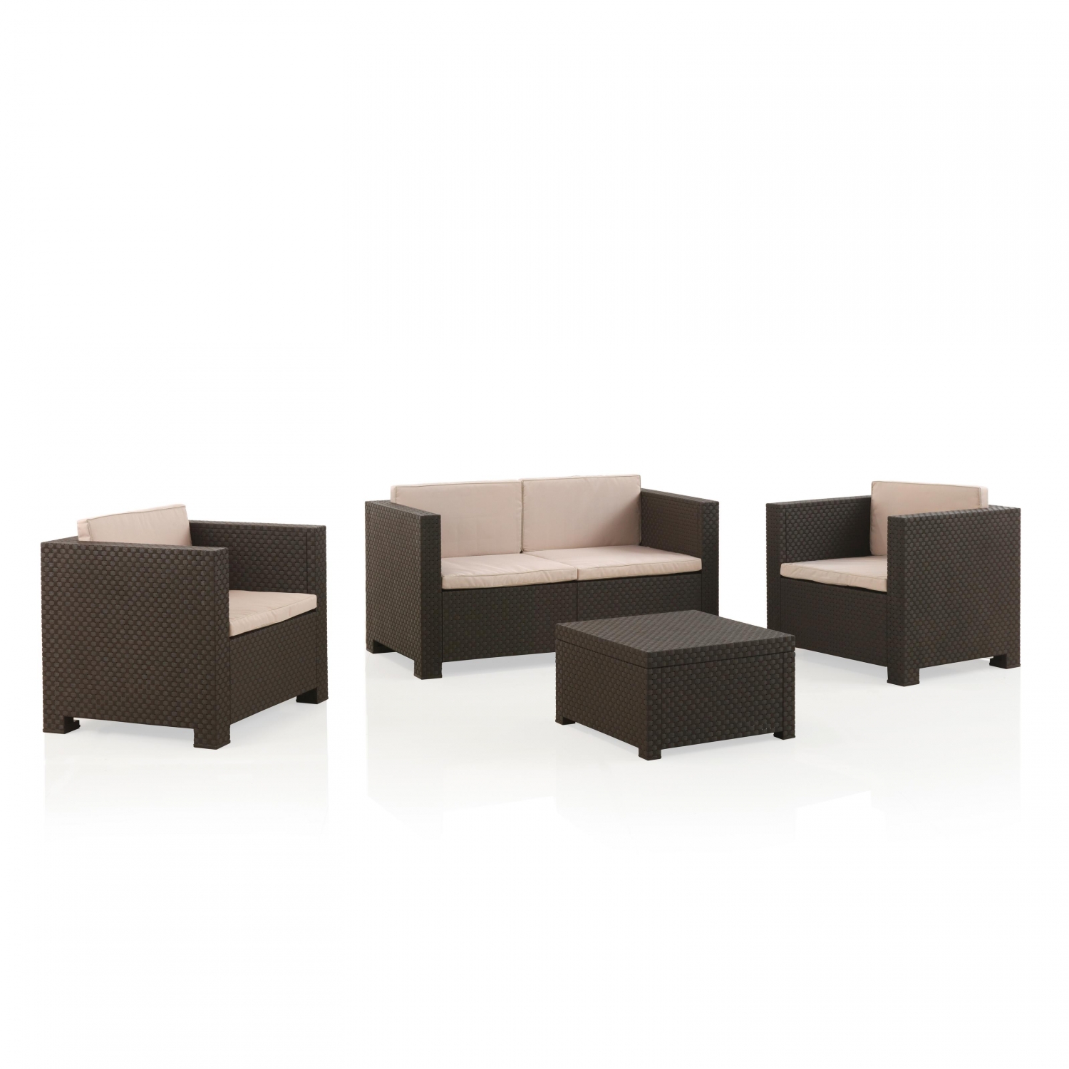 Conjunto de Jardín Sofá + 2 Sillones + Mesa de Centro, Diva Confort - Wengué