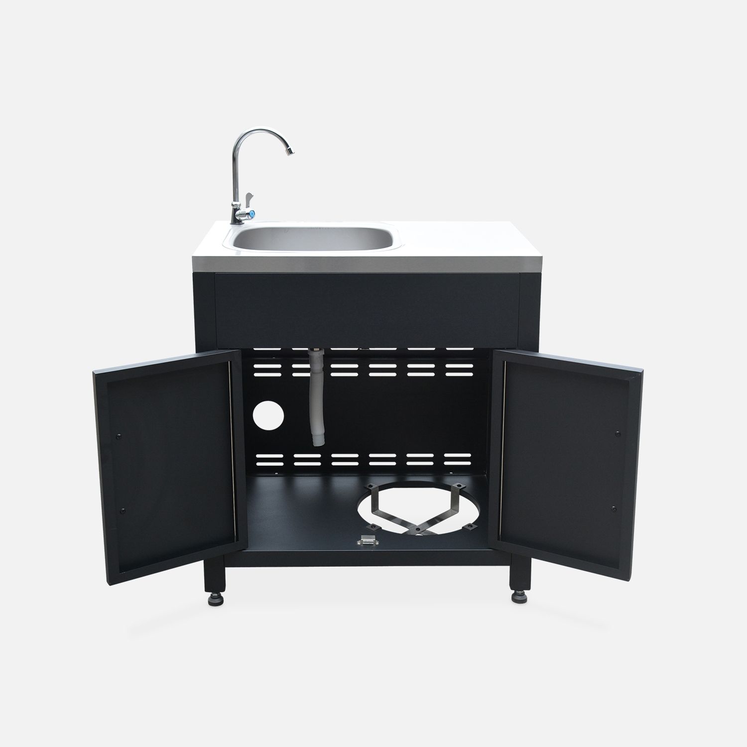 Cocina Exterior De Acero Con Fregadero De 80cm, Negro