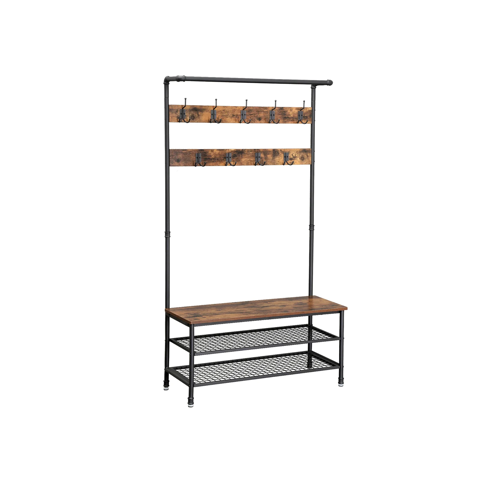 Perchero Recibidor con Banco Zapatero Gris Piedra y Negro Tinta