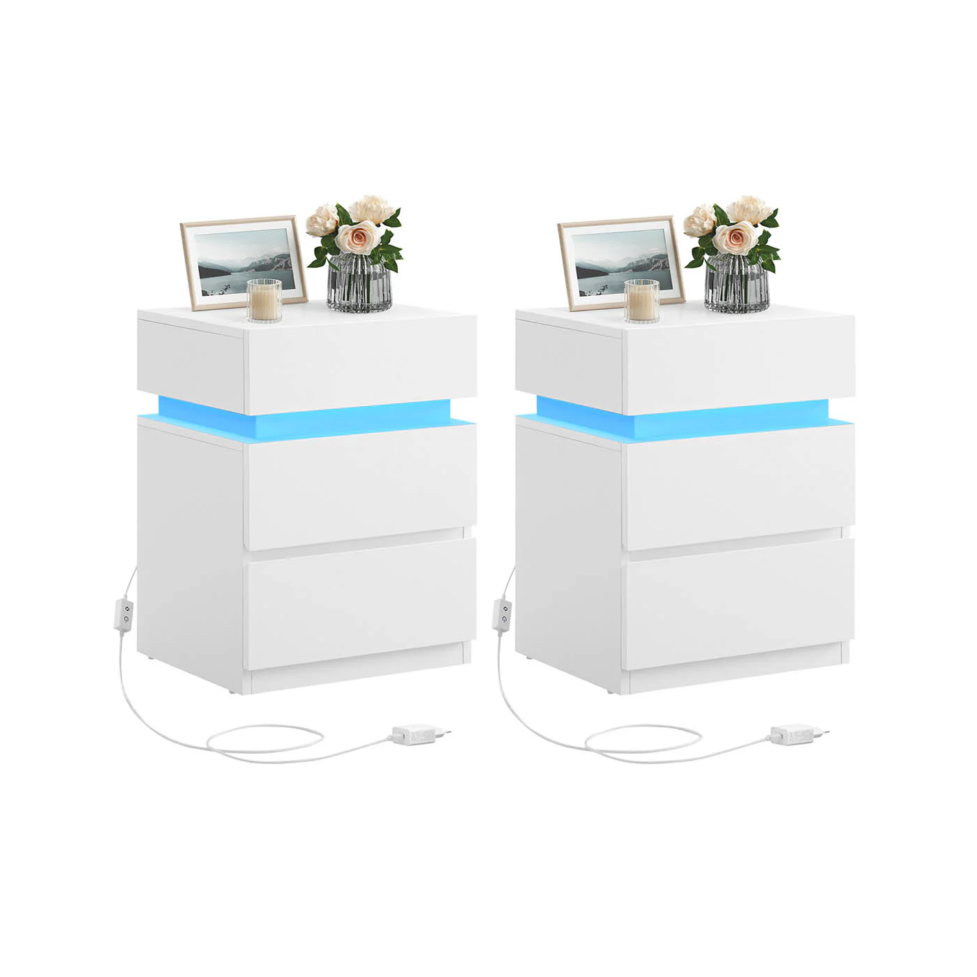 Mesita de Noche con Tira de Luz LED Multicolor Variable