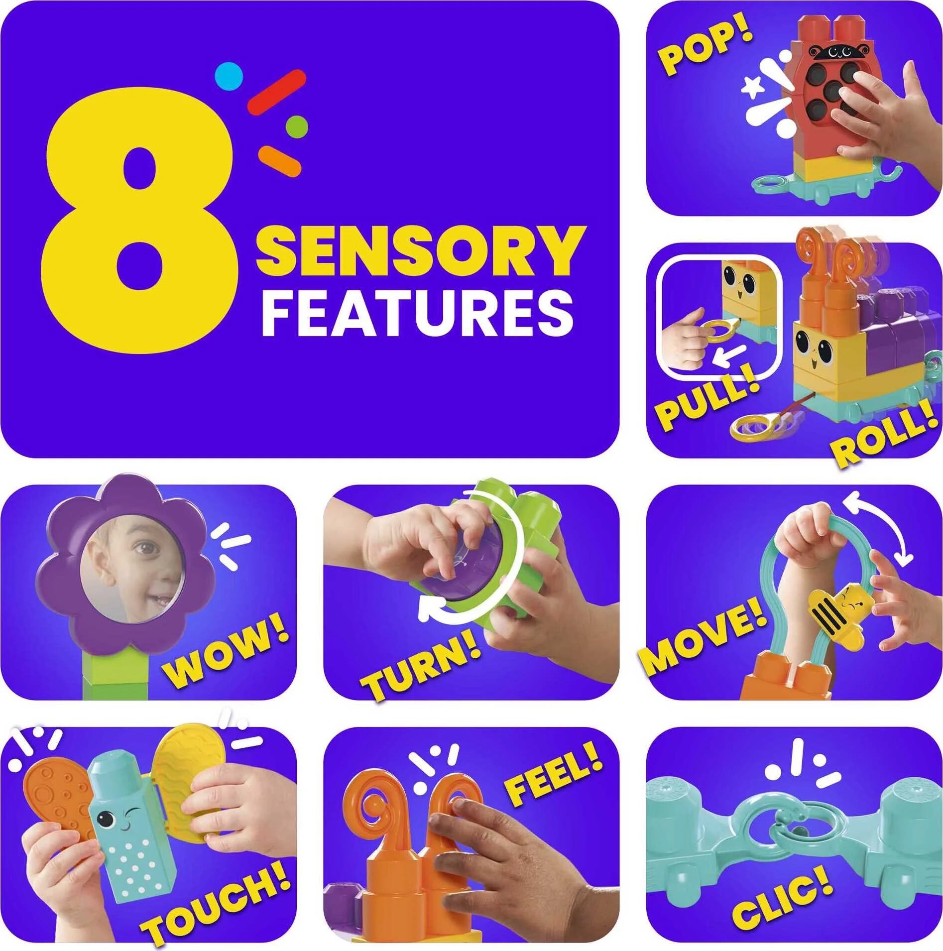 MEGA BLOKS Fisher-Price Bloques Sensoriales Move n Groove Oruga (24 piezas) para niños pequeños