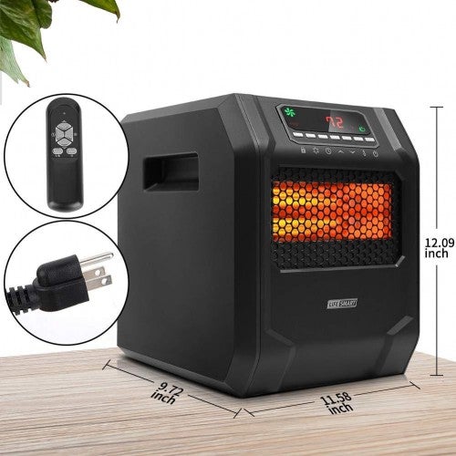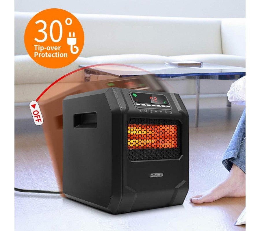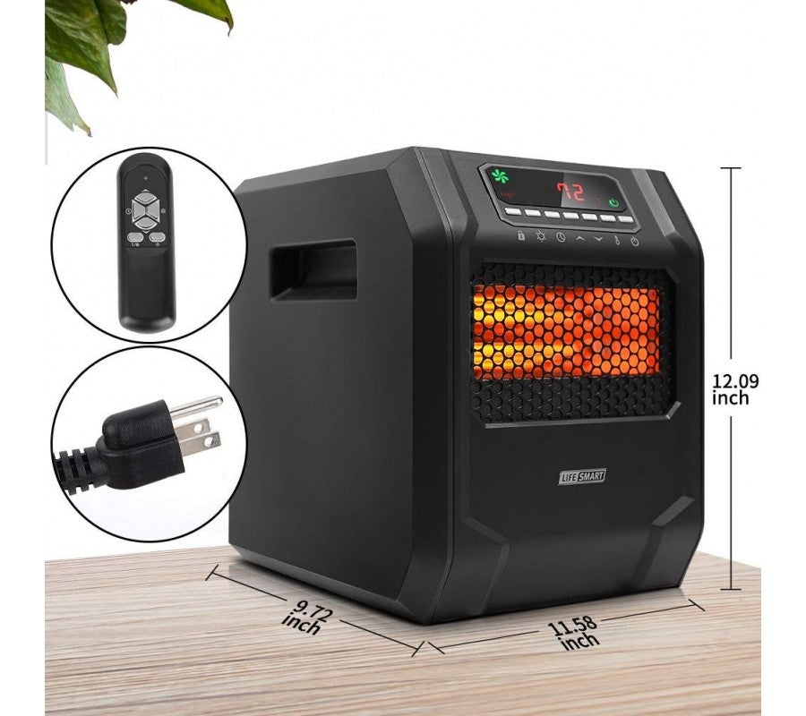 Calefactor de Espacio Infrarrojo LIFE SMART con 6 Elementos de Cuarzo, Pantalla Digital LED, Calentamiento Rápido con Control Remoto y Temporizador, Sistema de Termostato con Protección contra Vuelcos y Sobrecalentamiento para el Hogar