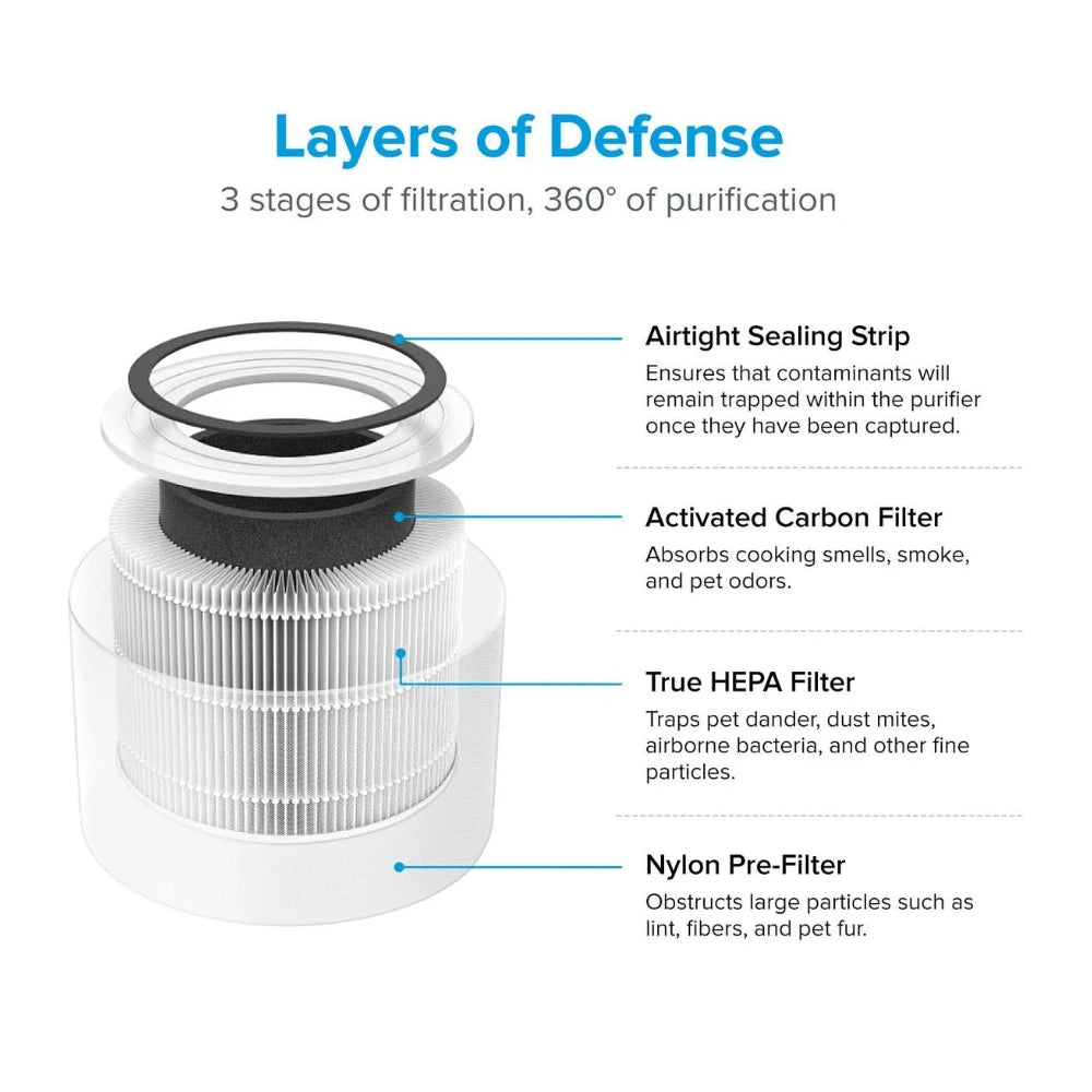 Repuesto para Purificador de Aire LEVOIT LV-H134, Juego de Filtros H13 HEPA Verdadero y de Carbón Activado, LV-H134-RF, Blanco