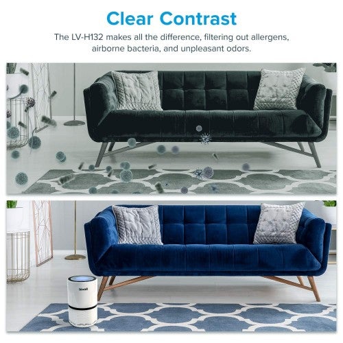 Purificador de Aire LEVOIT LV-H132 para el Hogar con Filtro HEPA Verdadero, Eliminador de Olores y Alergias para Fumadores, Polvo, Moho, Mascotas, Purificador con Luz Nocturna, US-120V, Paquete de 2, Blanco, Garantía de 2 Años (Reacondicionado)