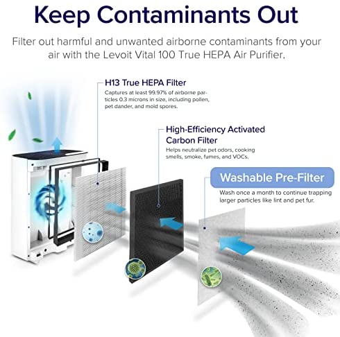 Purificadores de Aire LEVOIT para Habitaciones Grandes, Filtro Verdadero HEPA H13