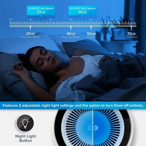 Purificador de Aire LEVOIT para Hogares con Fumadores, Alergias y Pelo de Mascotas, Filtro HEPA Verdadero, Silencioso para Dormitorio, Sistema de Filtración y Eliminadores de Olores, Humo, Polvo, Moho, Luz Nocturna, LV-H132, Paquete de 2
