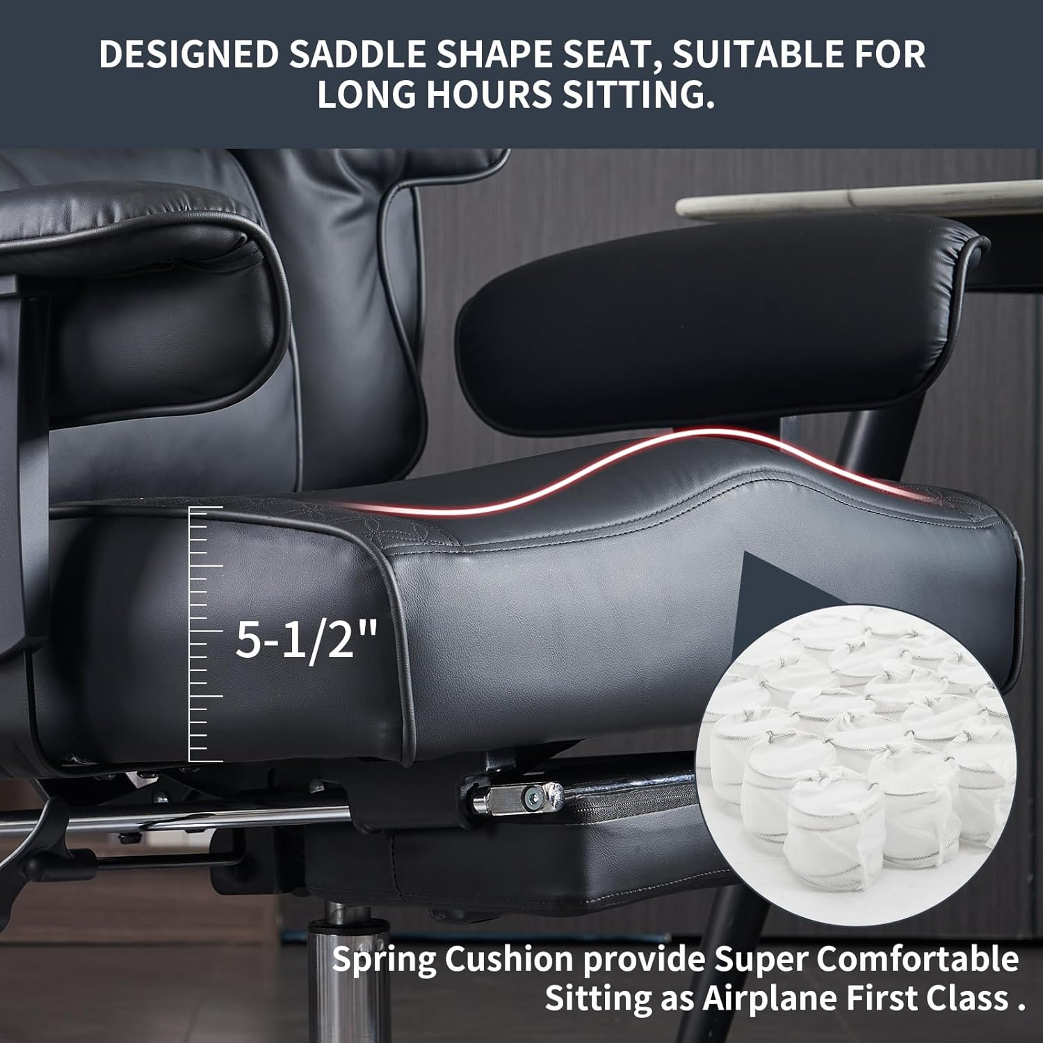 Silla de Oficina Alta y Ancha para 400 lbs, Silla Ejecutiva de Cuero con Respaldo Alto y Reposapiés, Silla Ergonómica con Soporte Lumbar para Aliviar el Dolor de Espalda Baja (Beige)