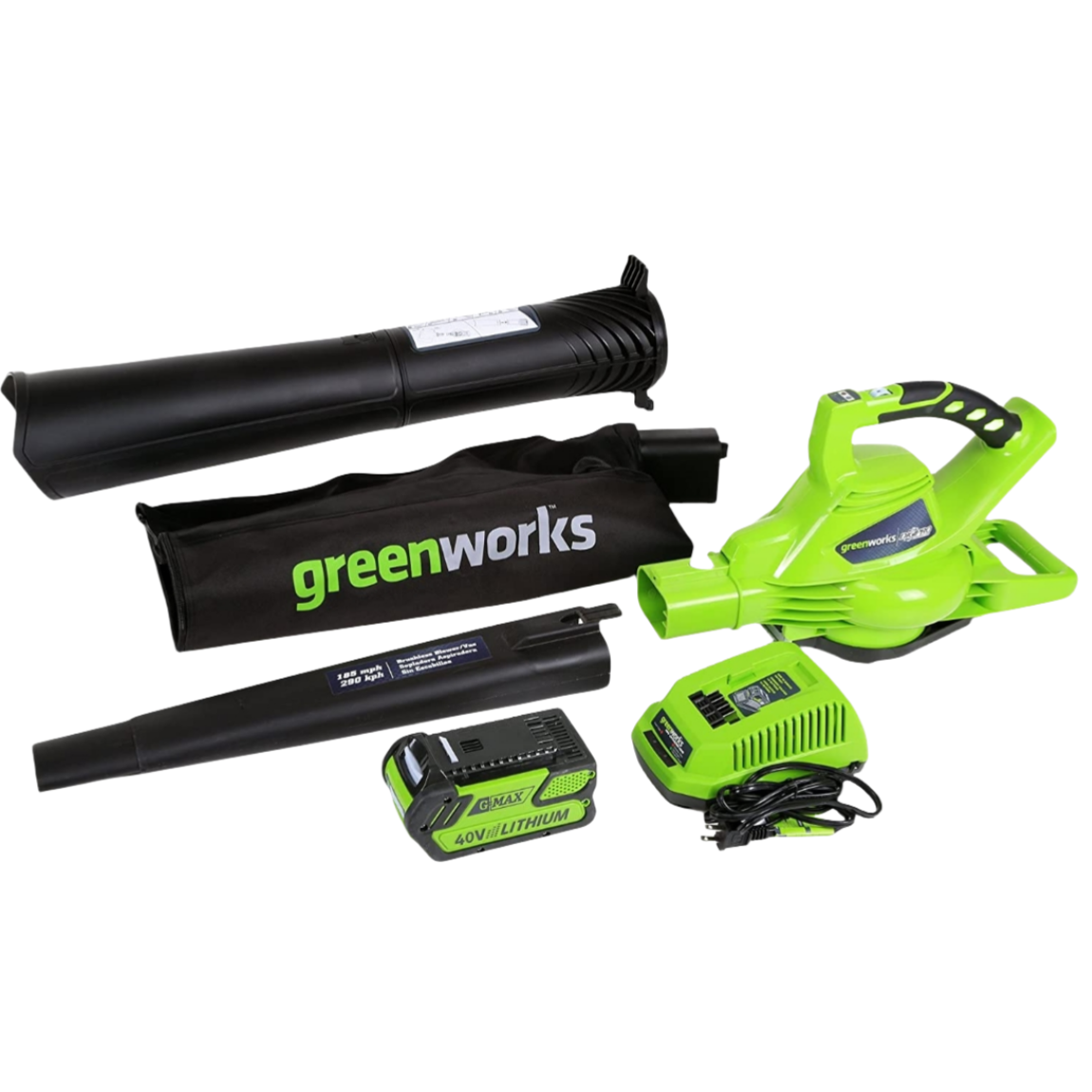 Soplador/Aspiradora de Hojas Inalámbrico 40V, Velocidad Variable de 185 MPH, Batería de 4.0Ah y Cargador Incluidos, Modelo 24322
