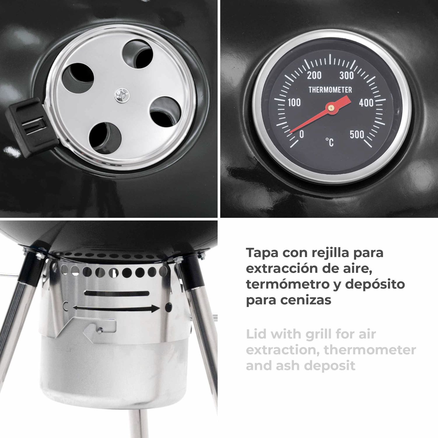 Barbacoa De Carbón Portátil Con Ruedas Kekai Yellowstone 58x47x100 Cm Redonda Con Tapa Y Encendedor Esmaltado En Negro