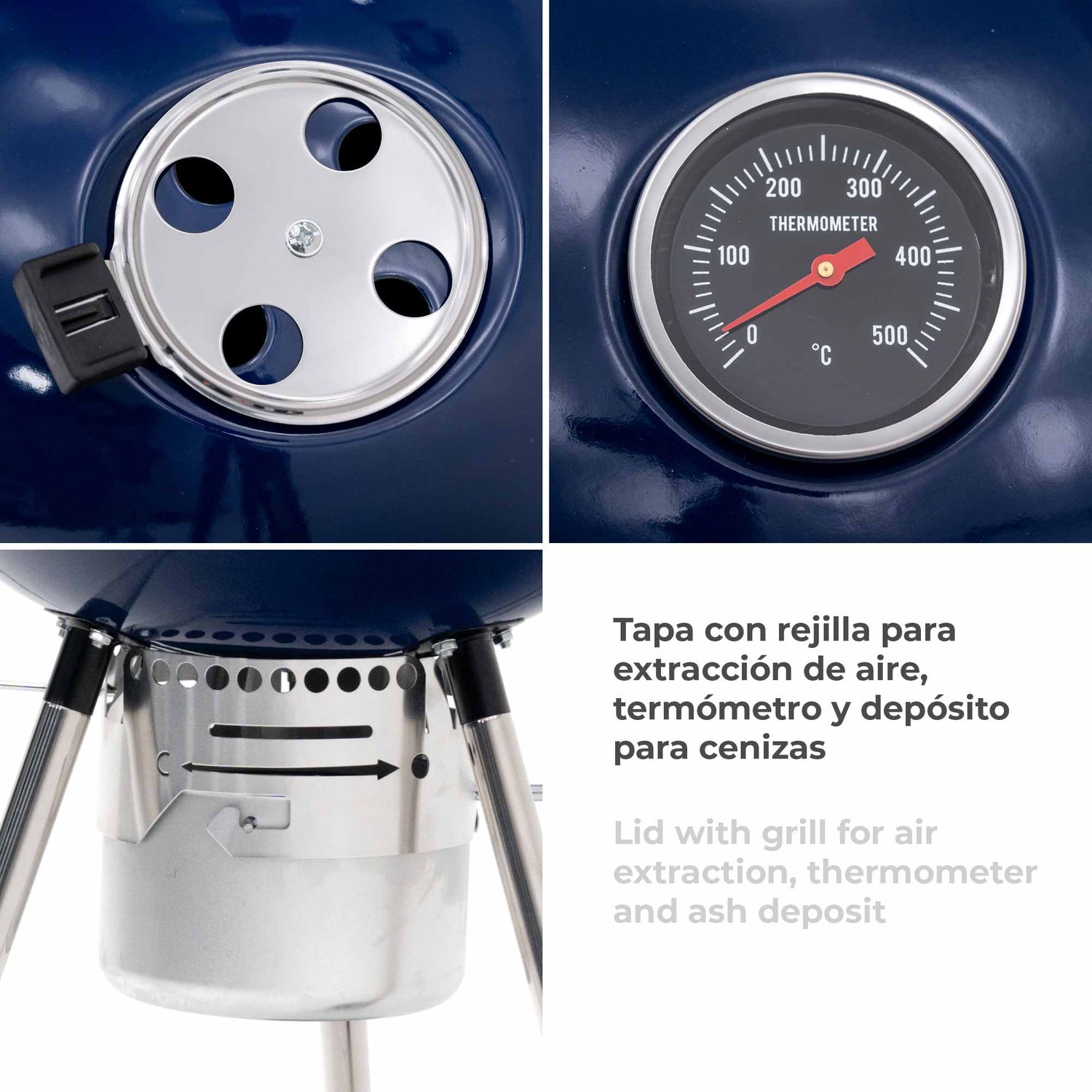 Barbacoa De Carbón Portátil Con Ruedas Kekai Yellowstone 58x47x100 Cm Redonda Con Tapa Y Encendedor Esmaltado En Azul