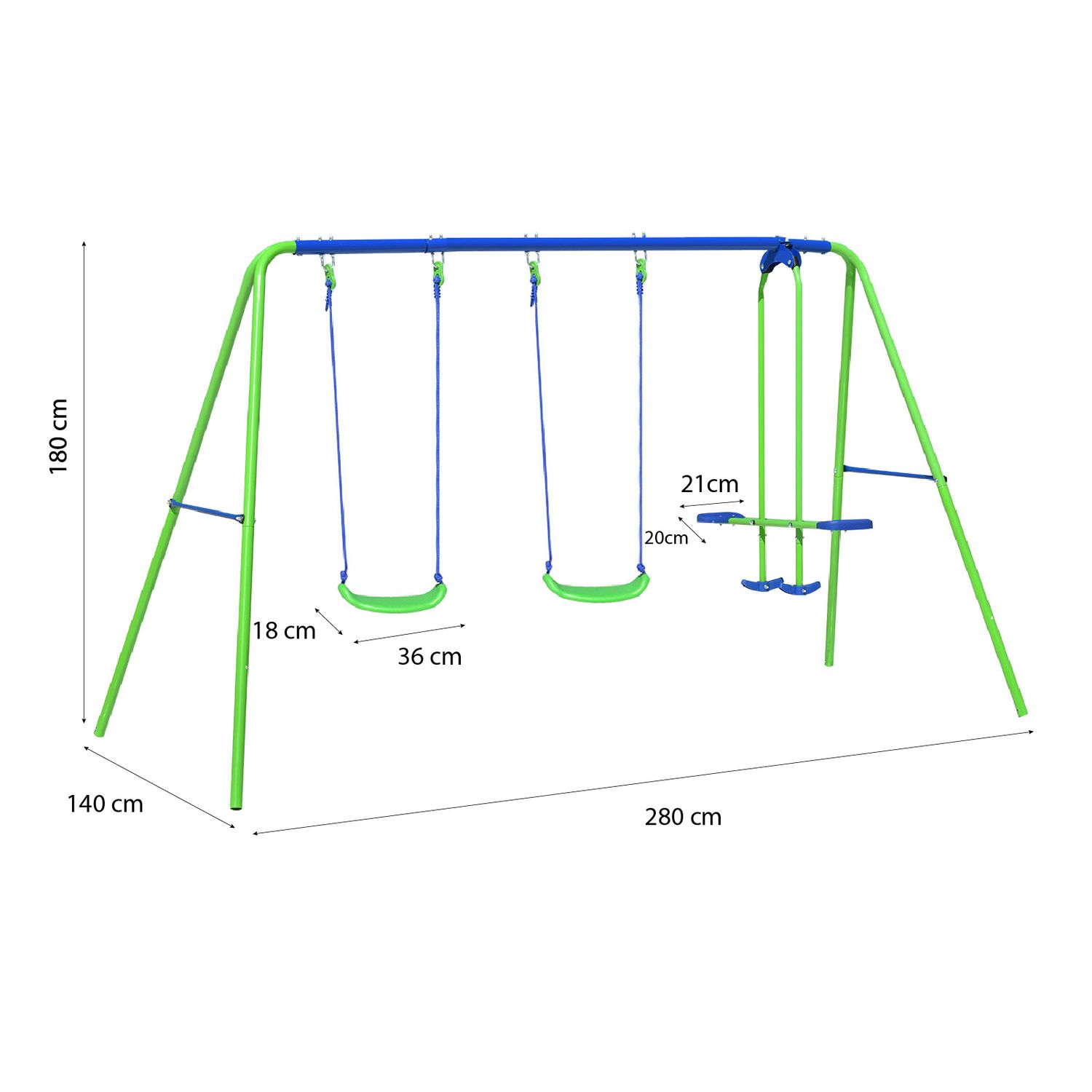 Columpio Doble Balancín Infantil Para Jardín + 3 Años Juego Para Niños De Metal Outdoor Toys 280x140x180 Cm Carga 45 Kg