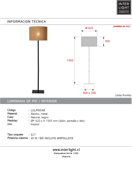 2025 Lámpara de pie bambú natural y metal negro Ø42x156 cm E27 - LULP0048