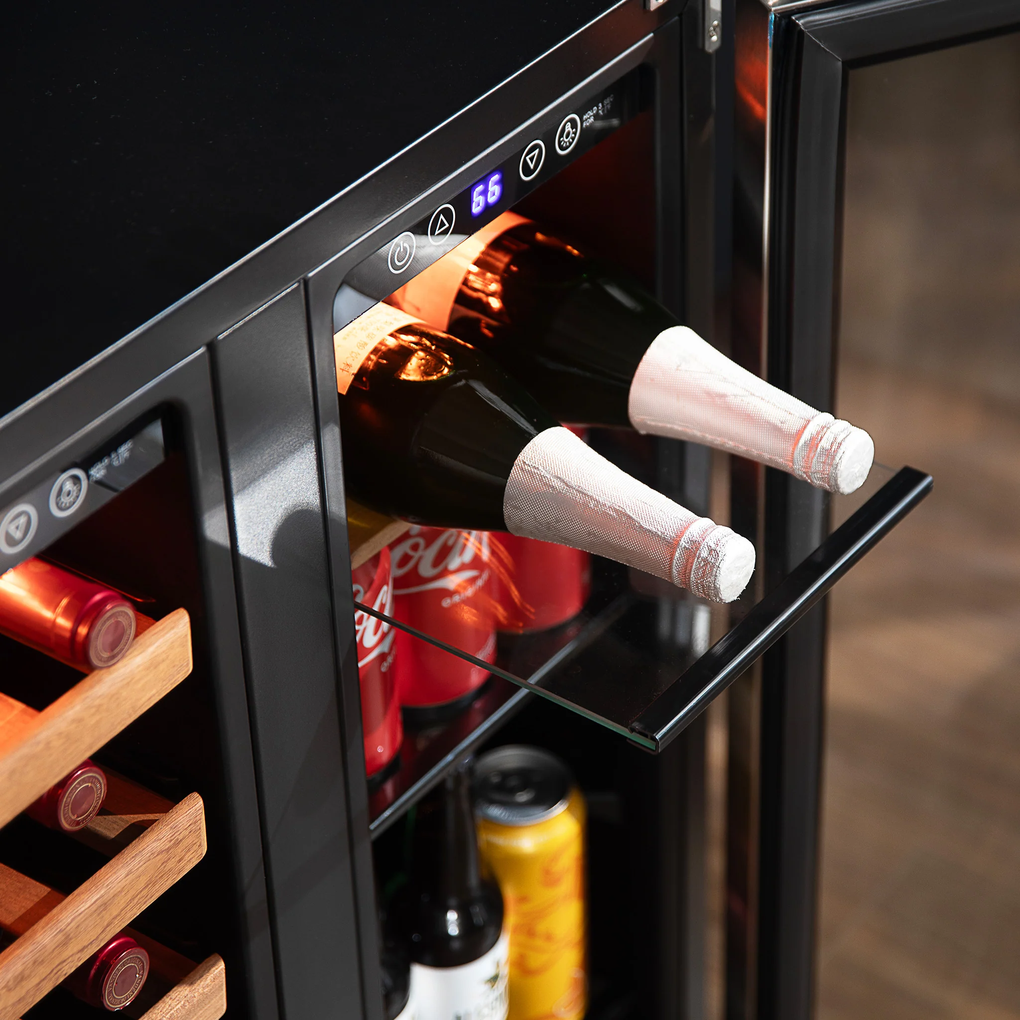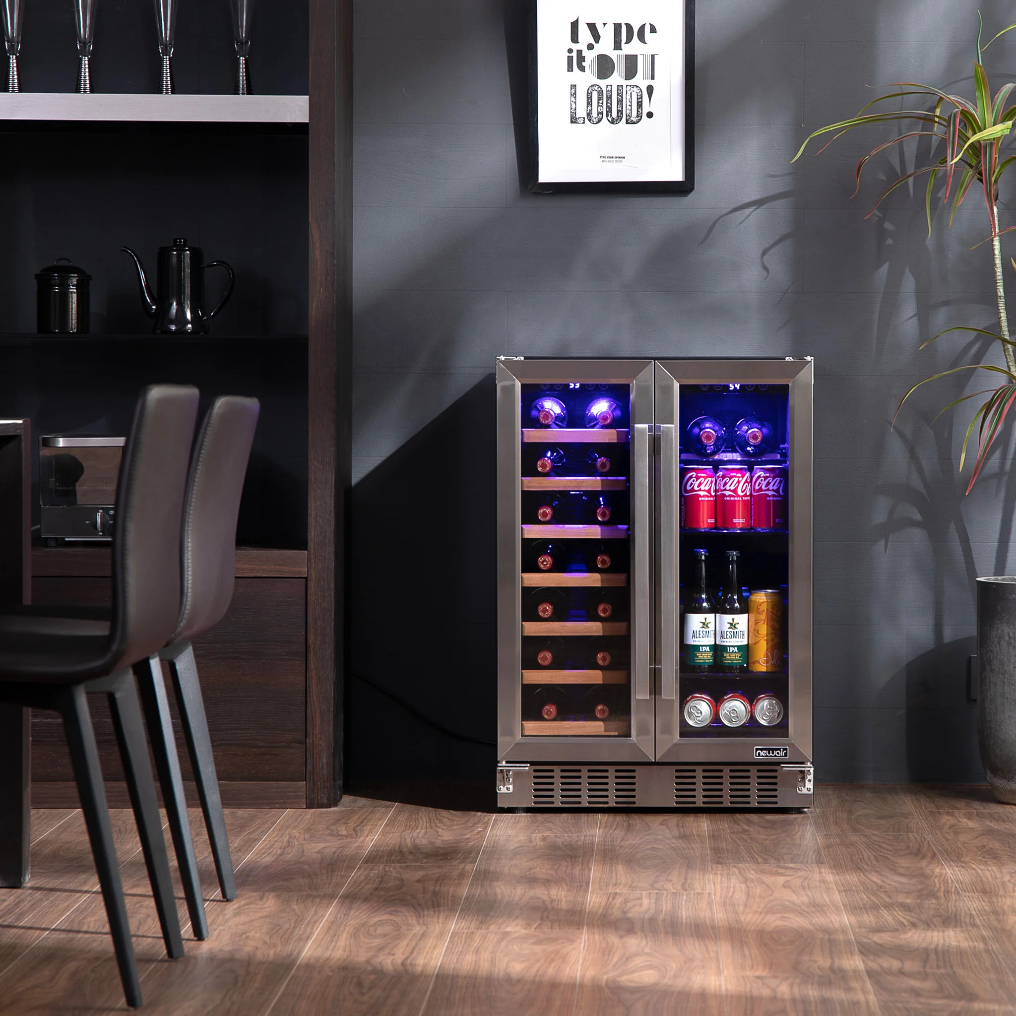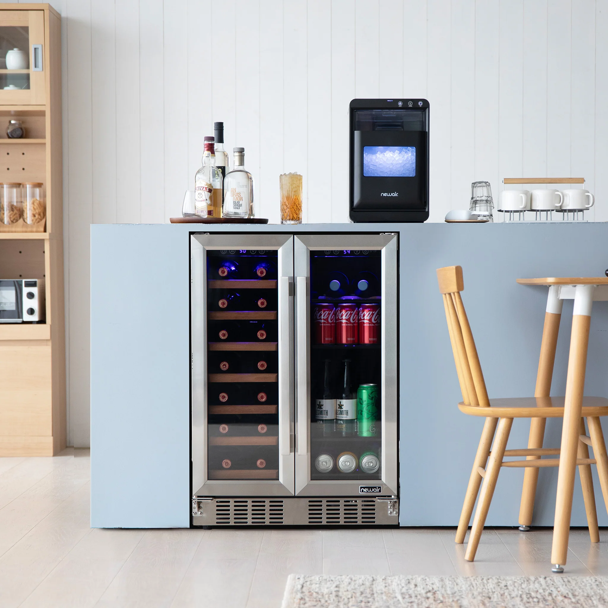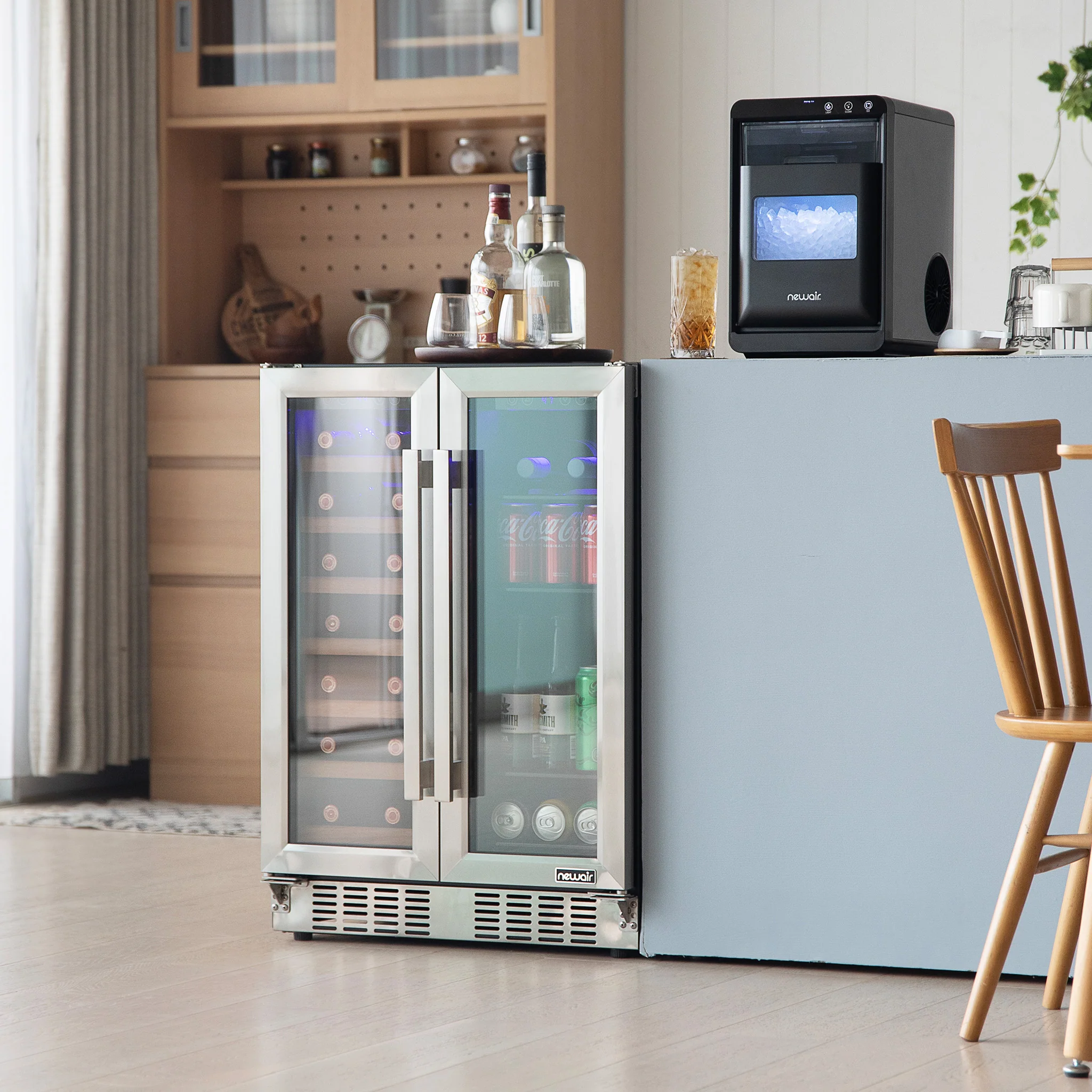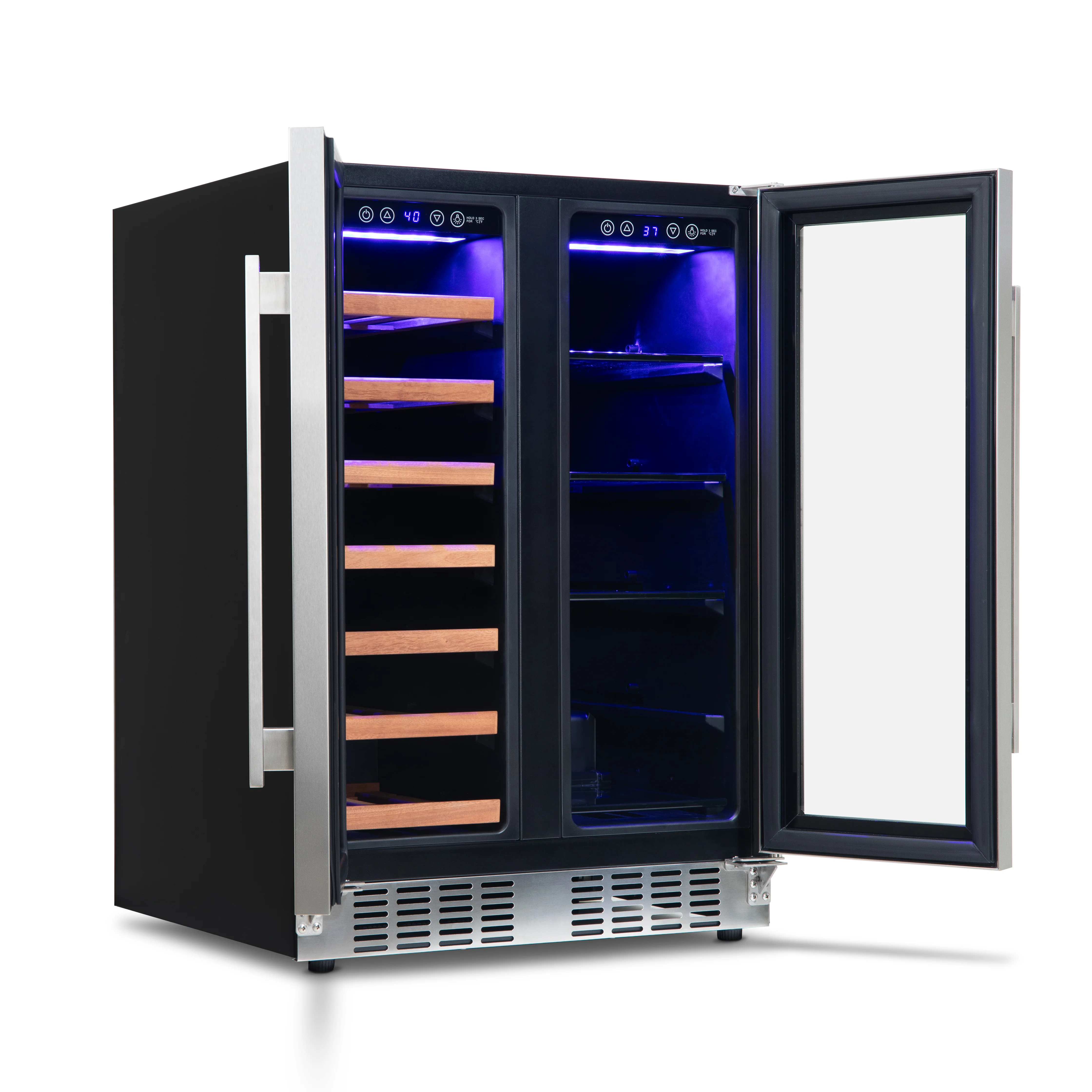 2025 Refrigerador para Vinos y Bebidas Newair – Doble Zona con Puertas Francesas (24 pulgadas)