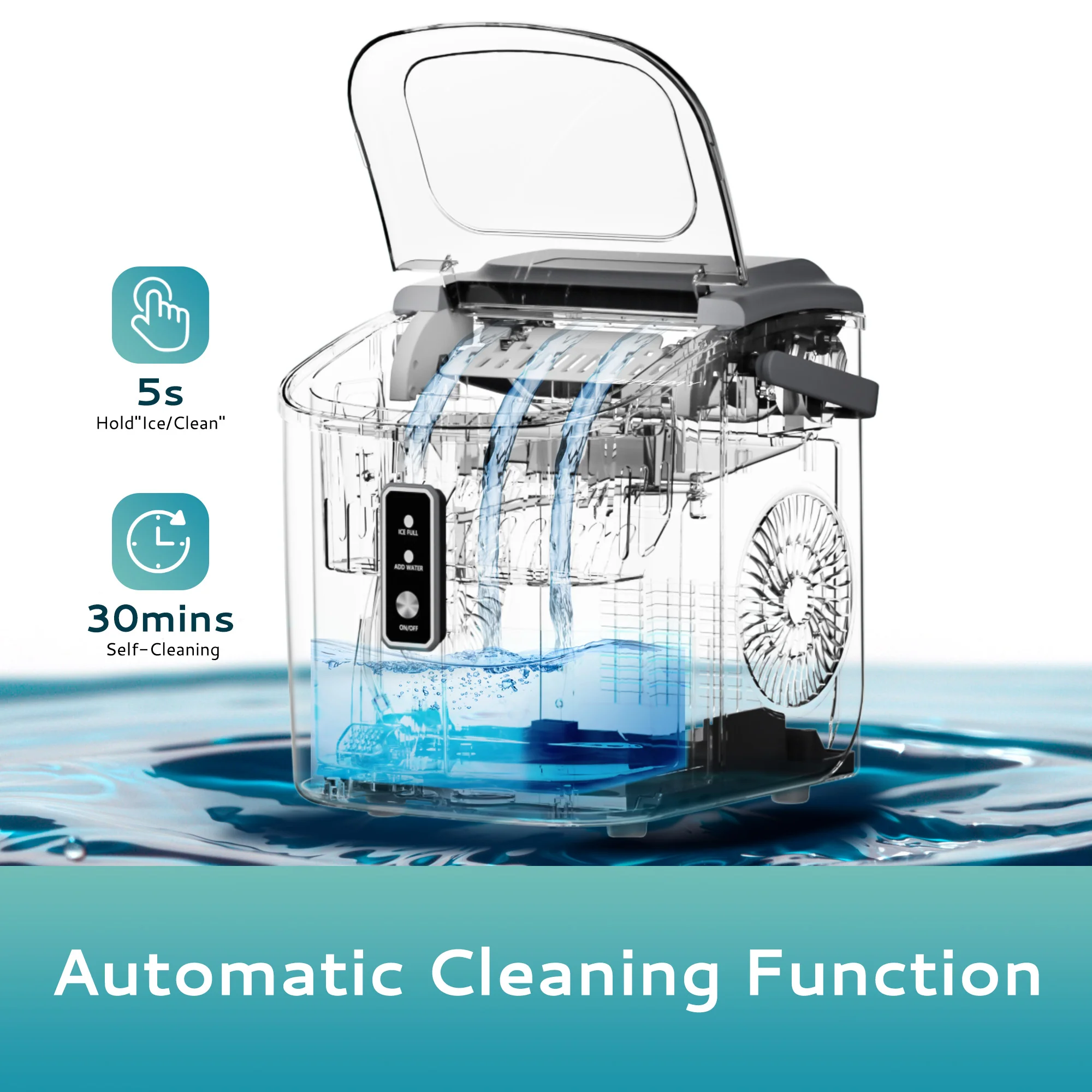 2025 Máquina de hielo portátil EUHOMY con hielo tipo nugget y limpieza automática Sonic