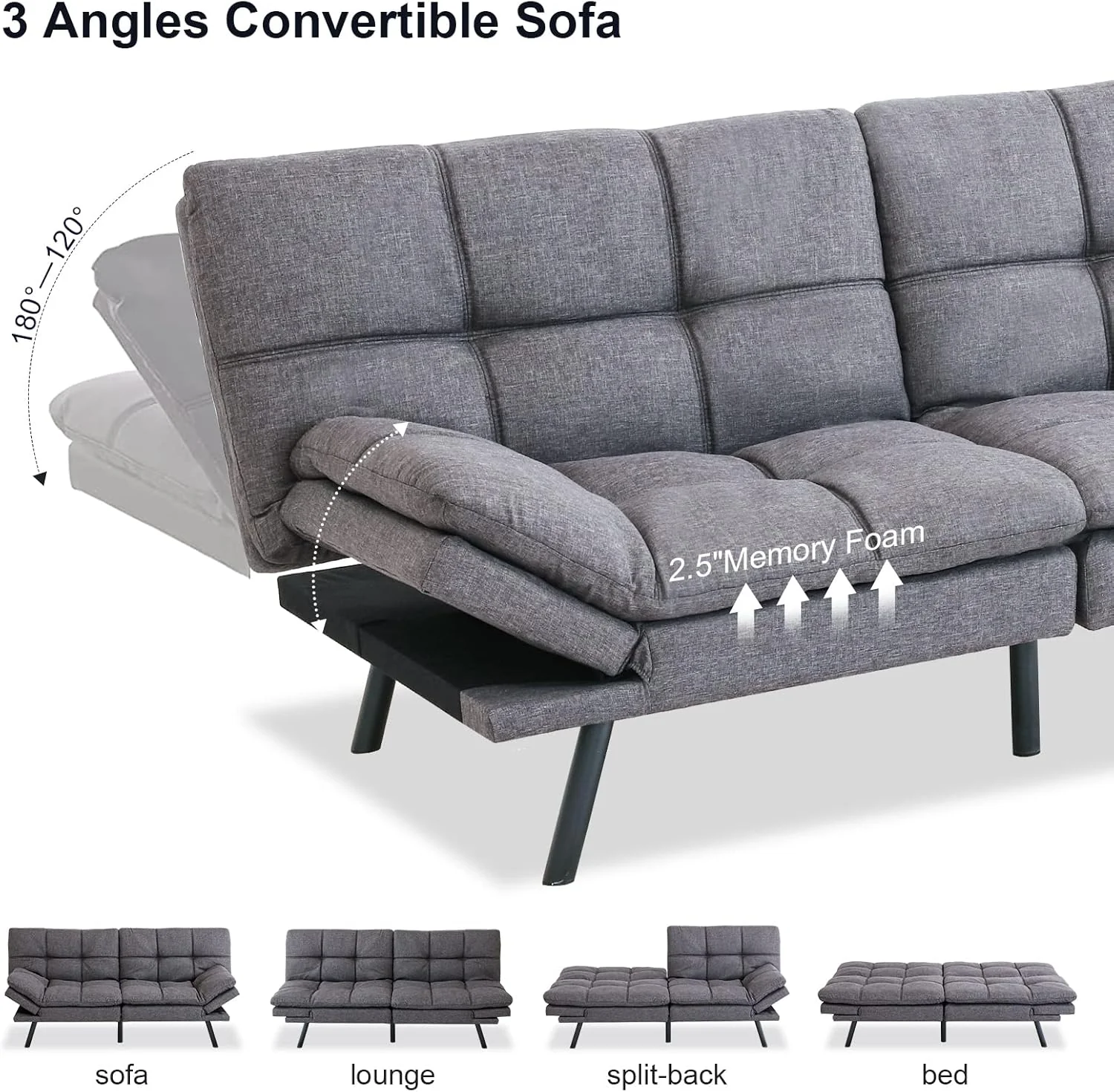 2025 Sofá cama tipo futón con colchón de espuma viscoelástica