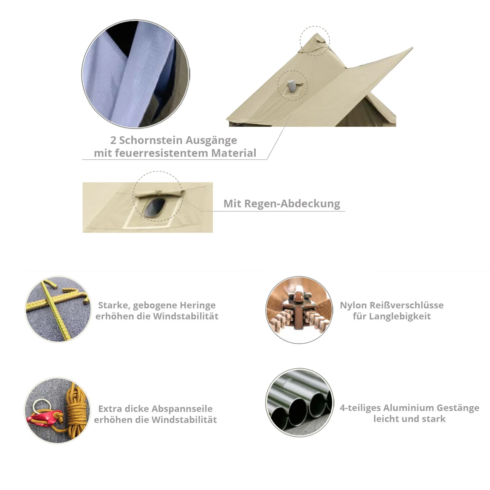 2025 KingCamp Khan 400 C – Tienda muy espaciosa para hasta 6 personas con forma clásica redonda de tipi. que aporta un encanto especial de glamping