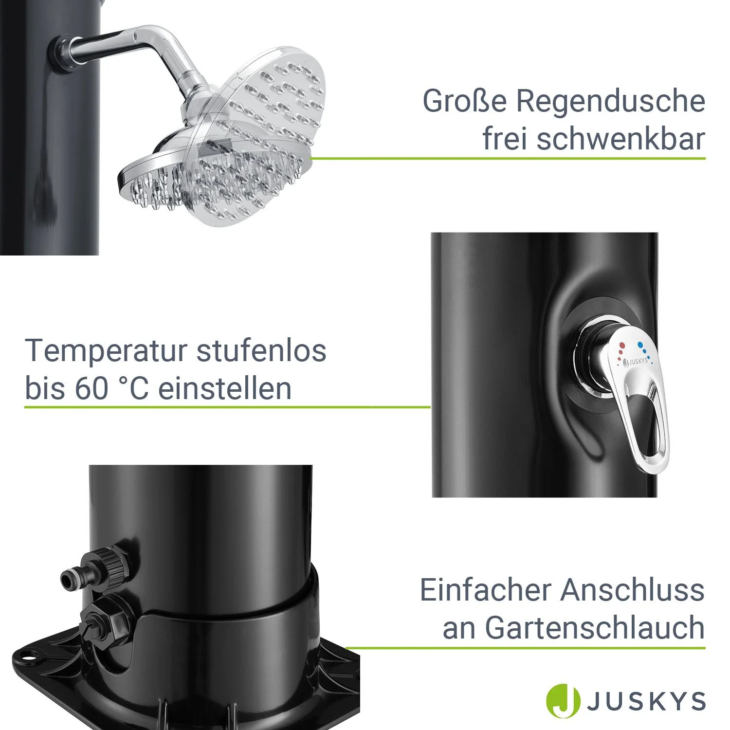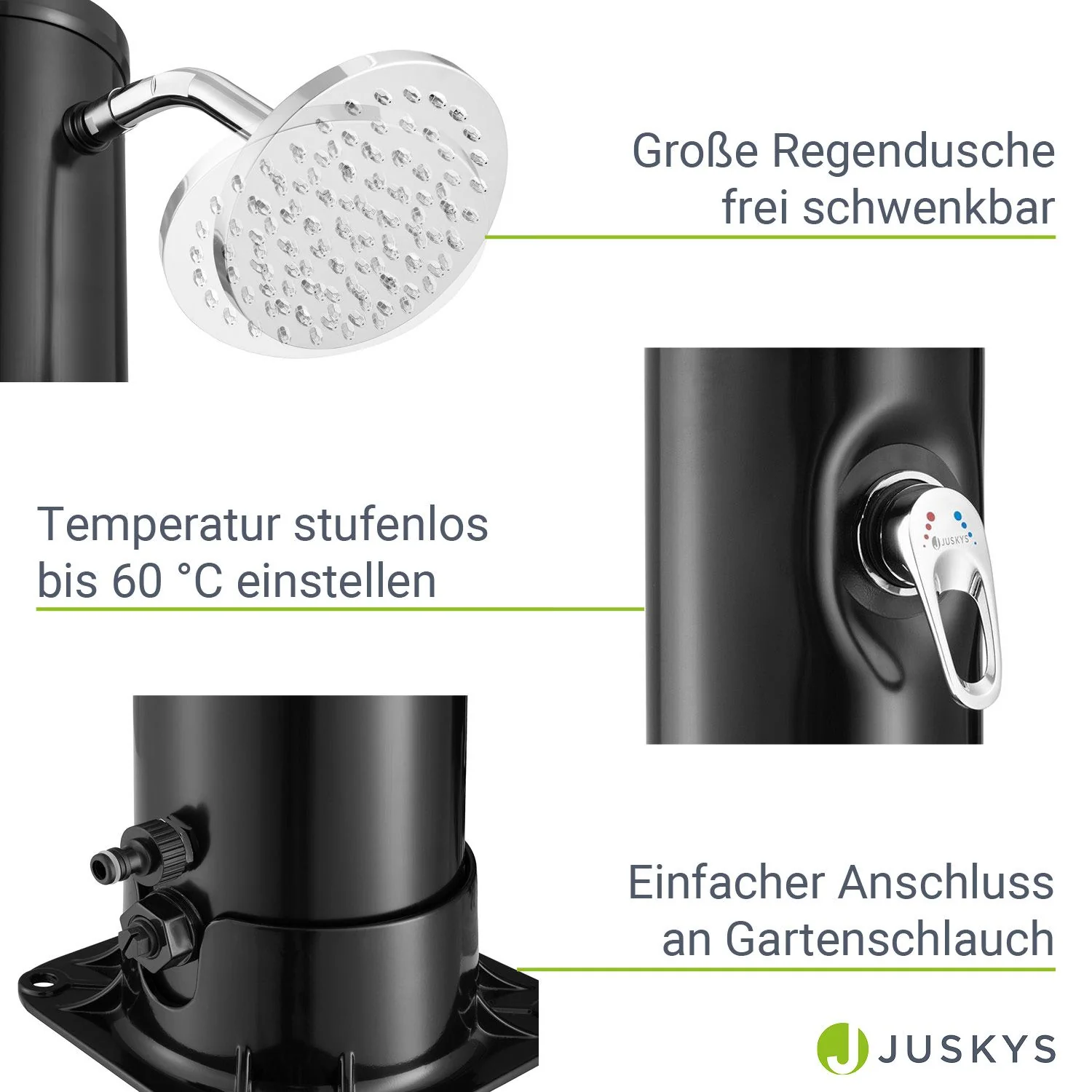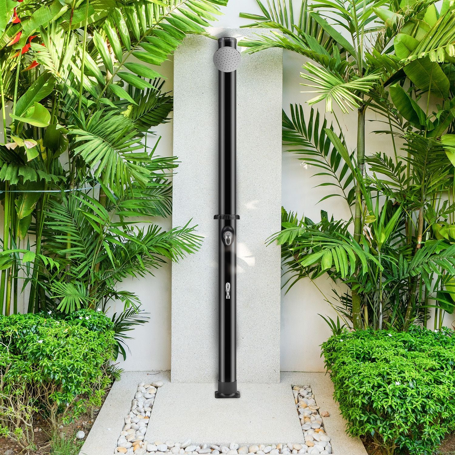 2025 Ducha Solar de Jardín Victoria 20 L Negra con Rociador Lluvia. Regulador de Temperatura y Ducha para Pies