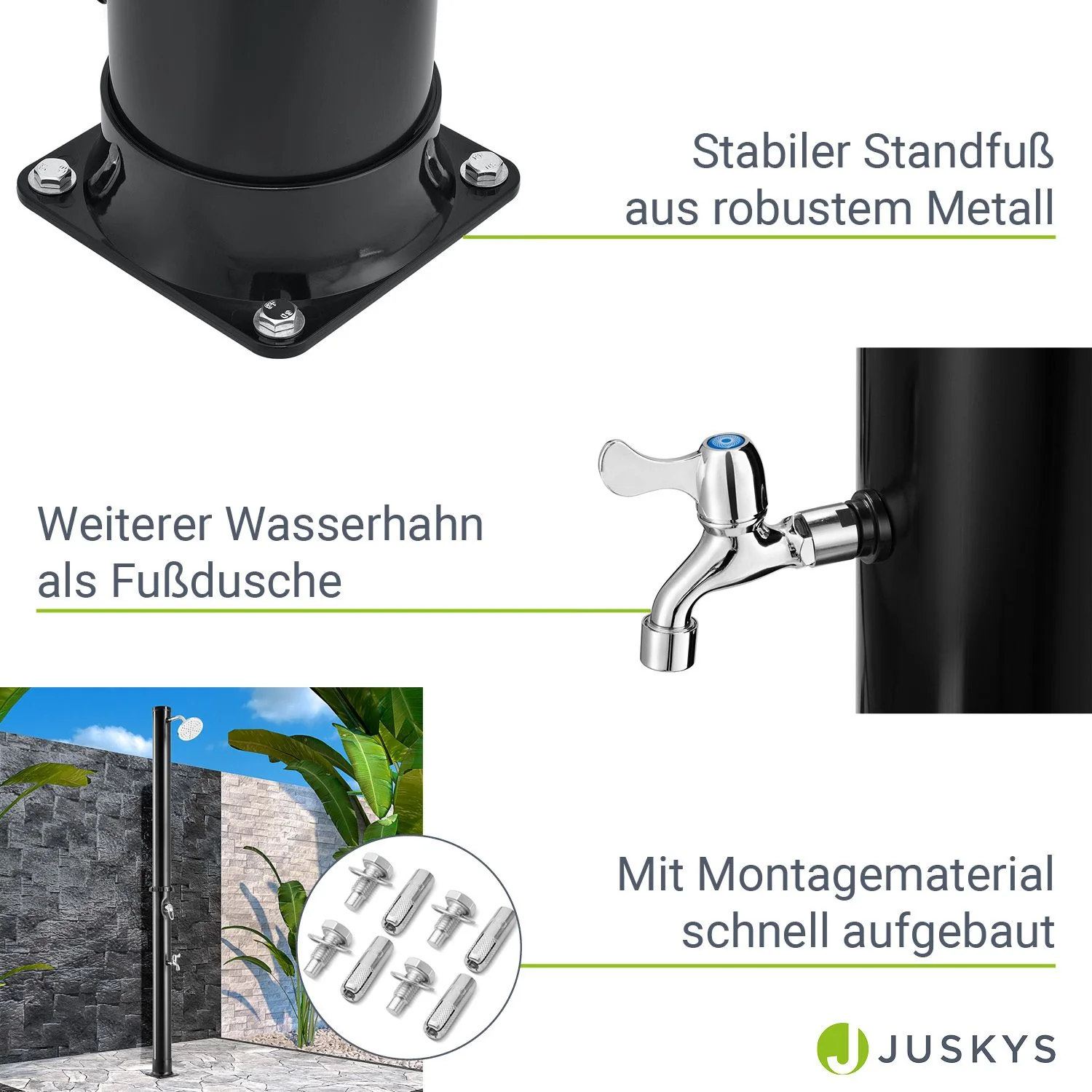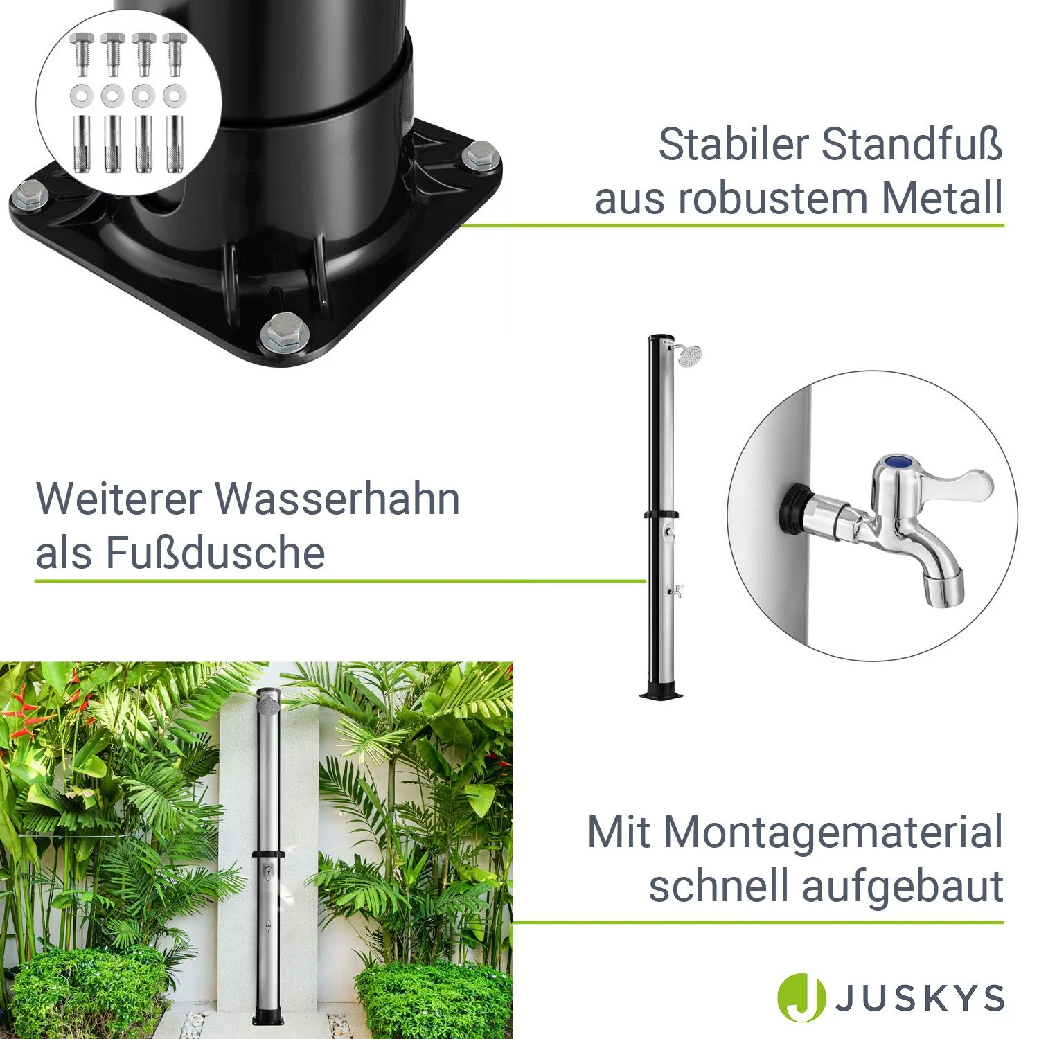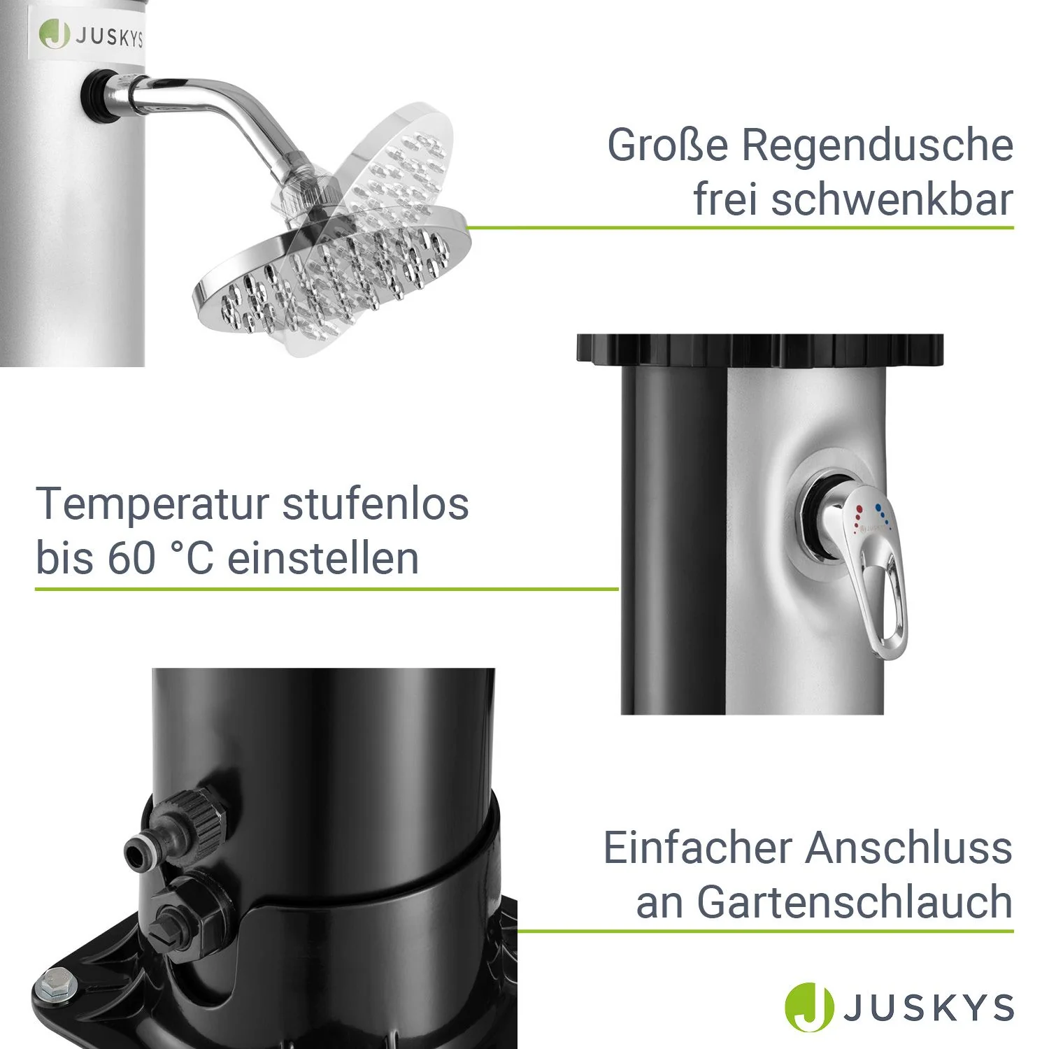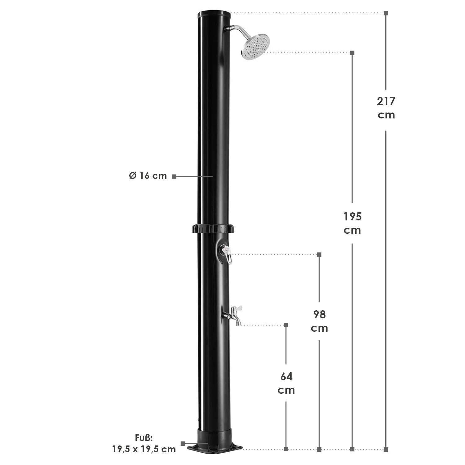 2025 Ducha Solar de Jardín Victoria 20 L Negra con Rociador Lluvia. Regulador de Temperatura y Ducha para Pies