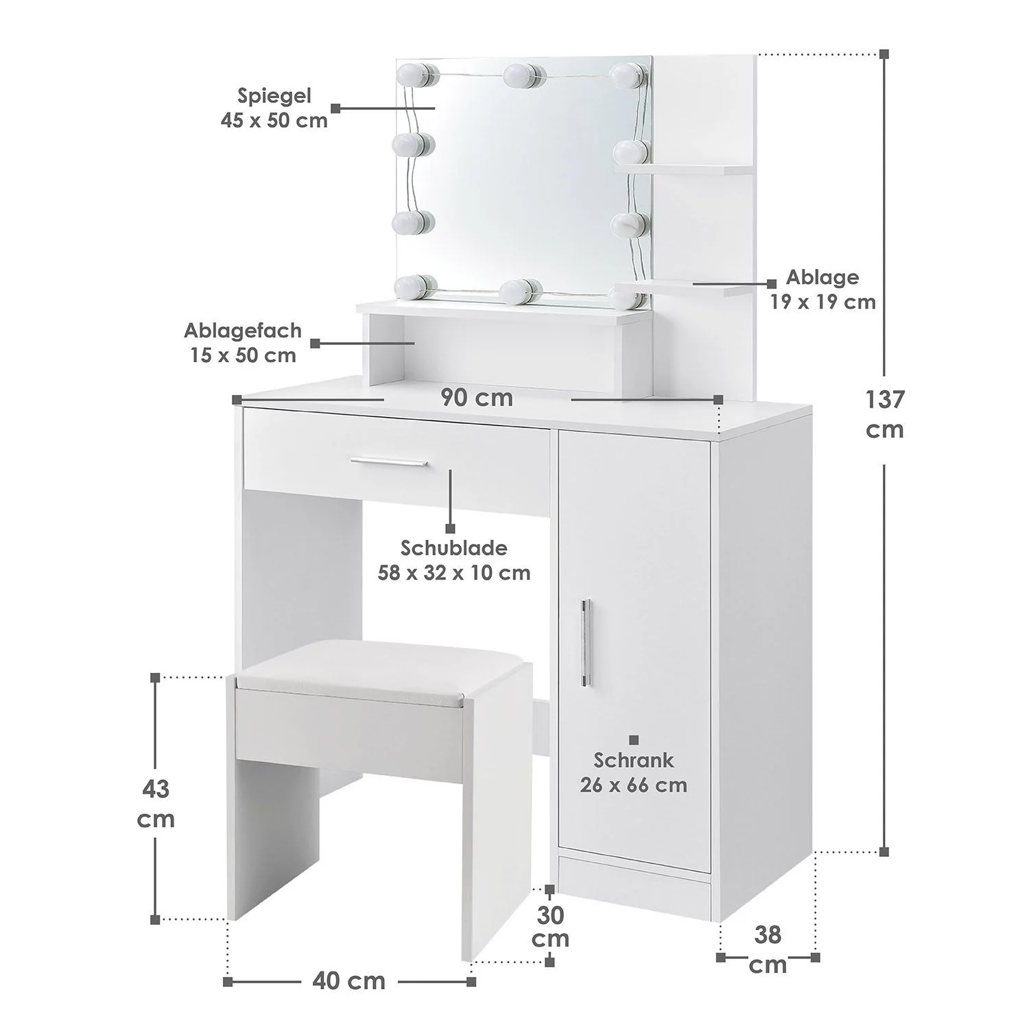 2025 Tocador Zoey con taburete Melly