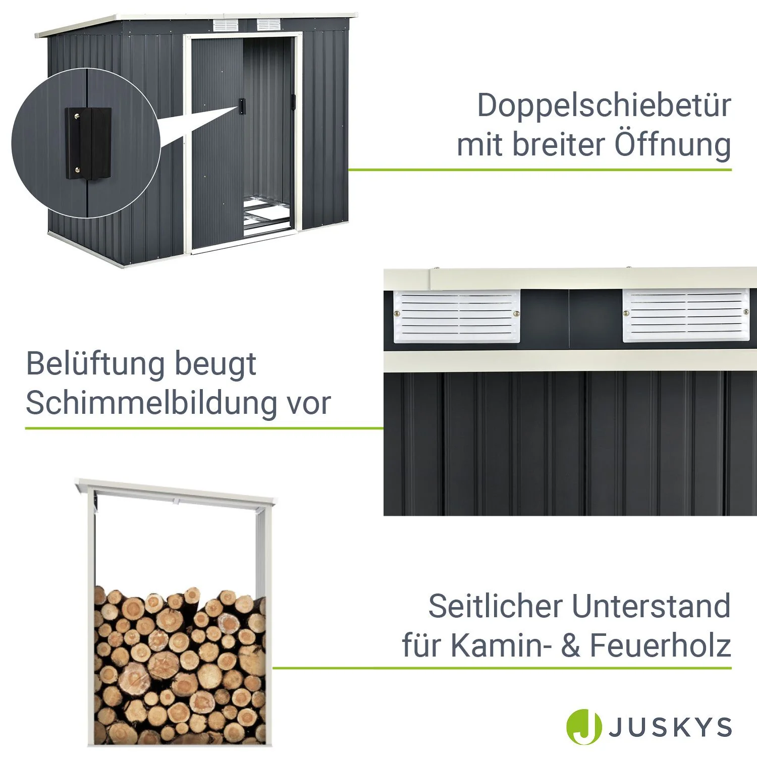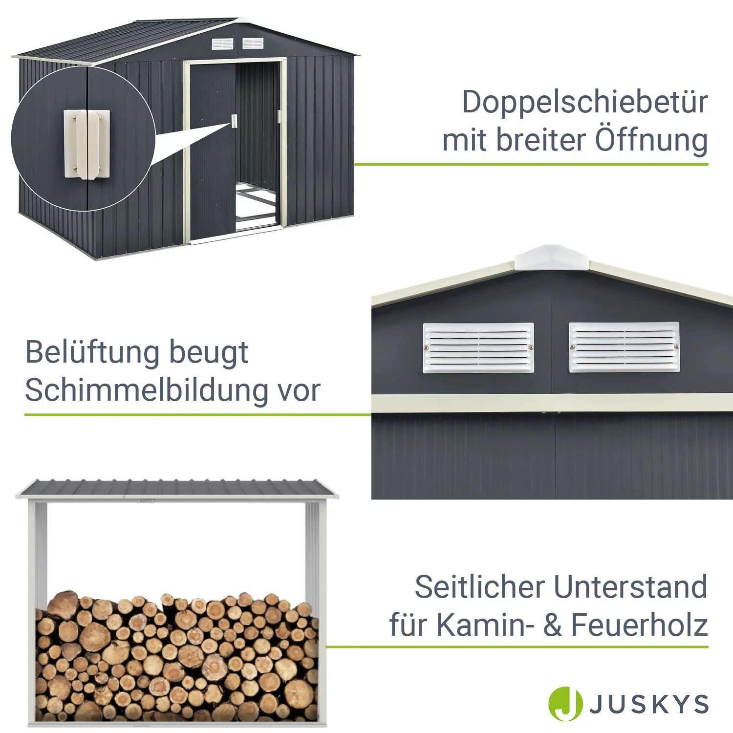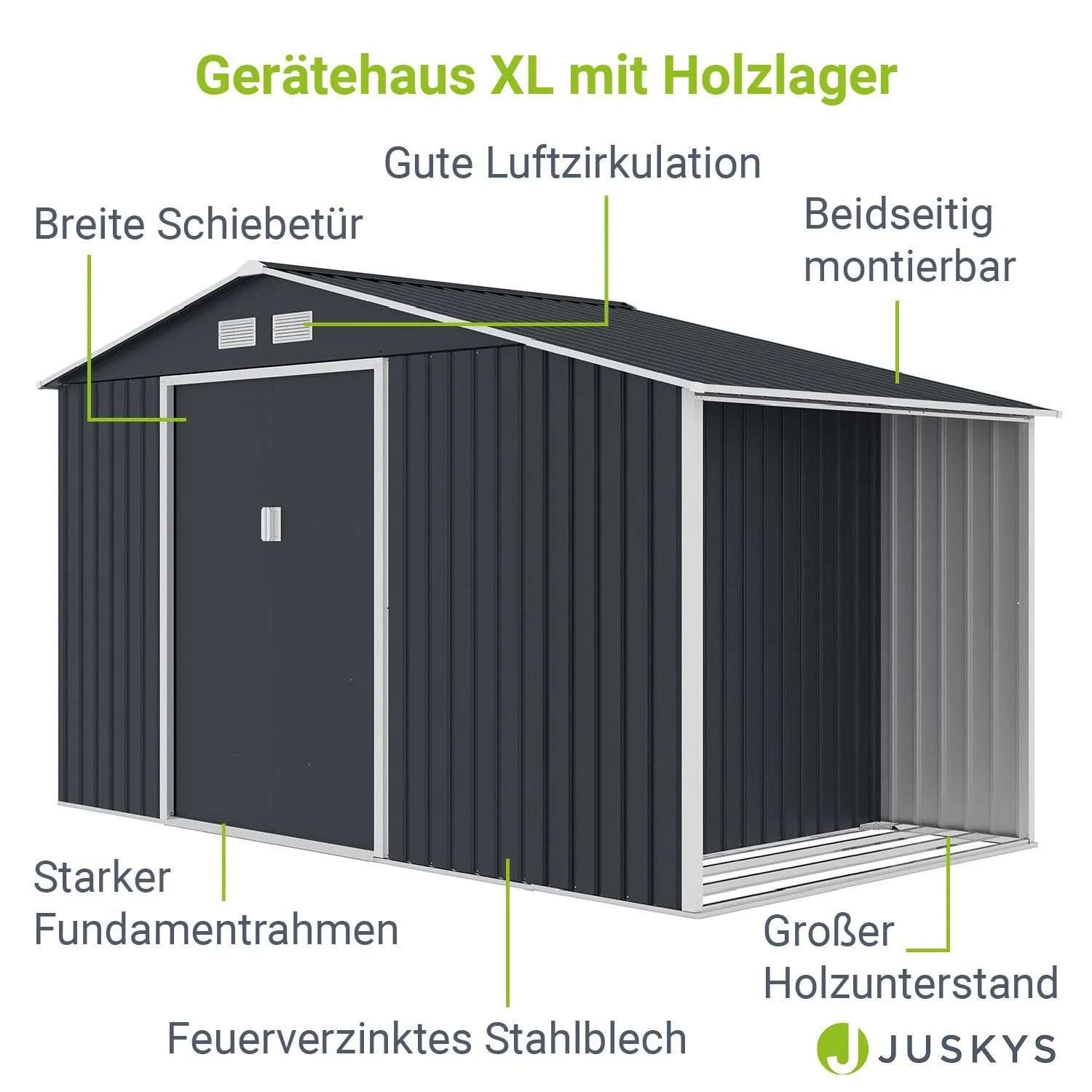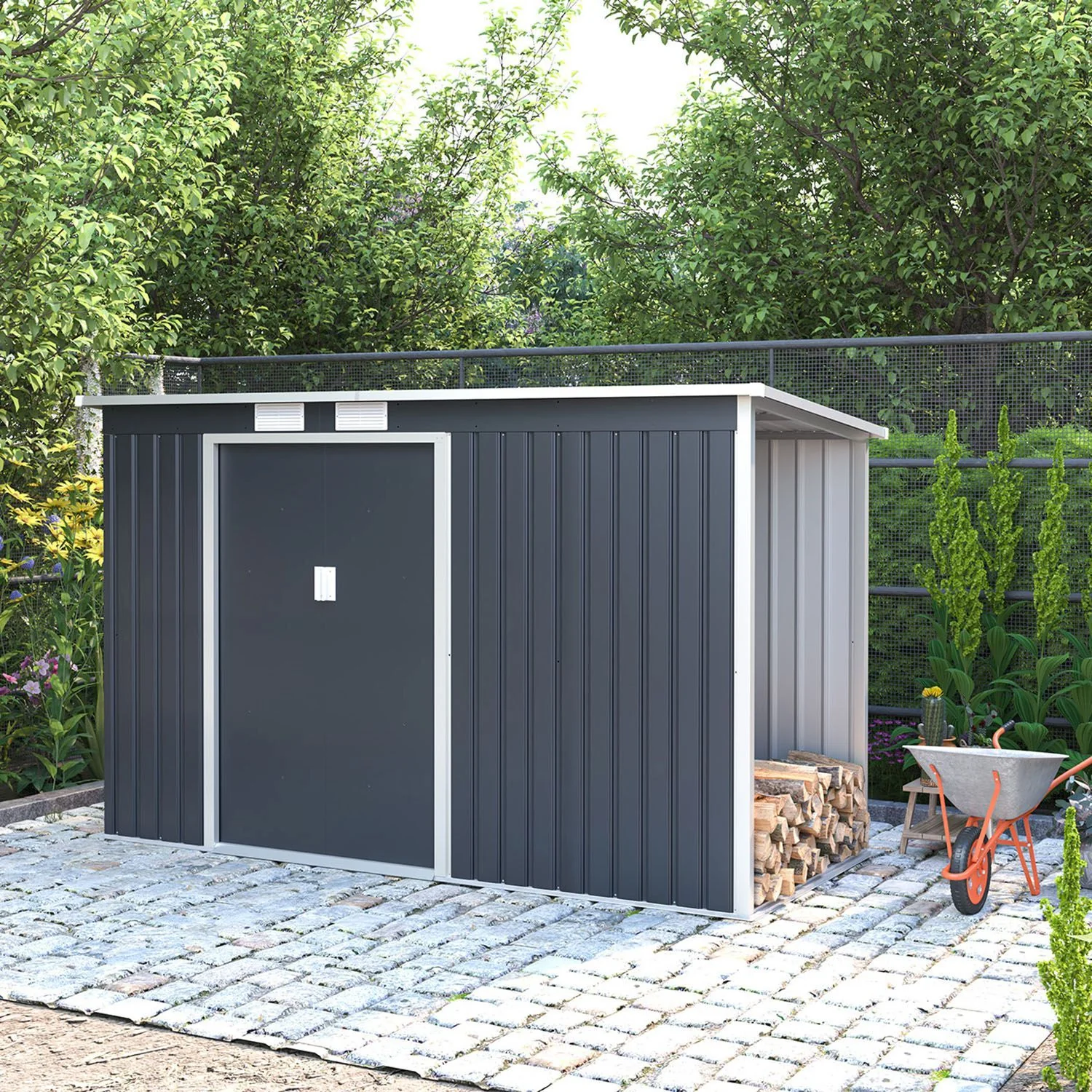 2025 Cobertizo de jardín metálico con leñero