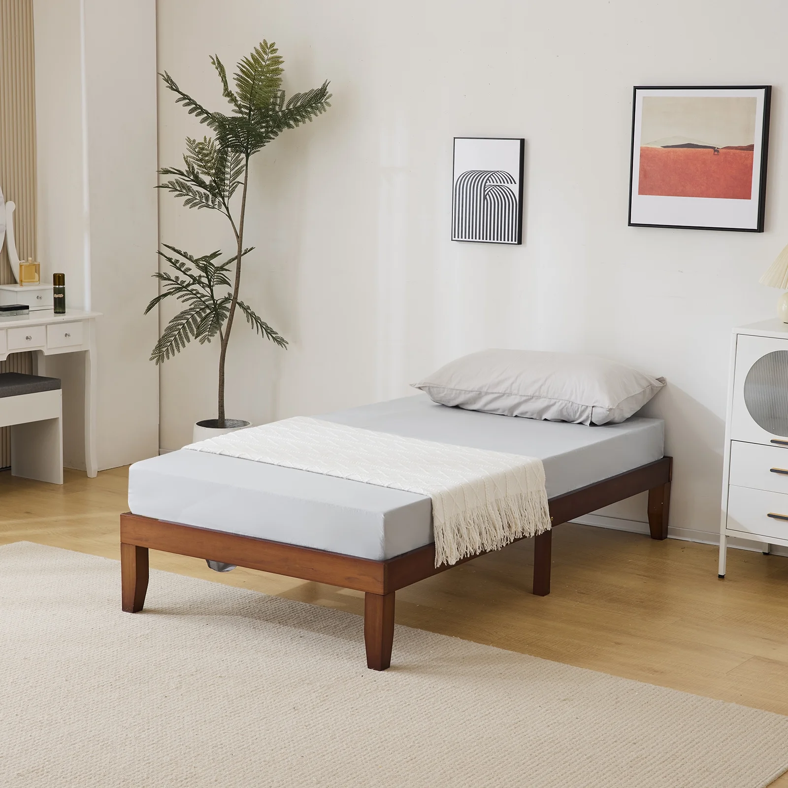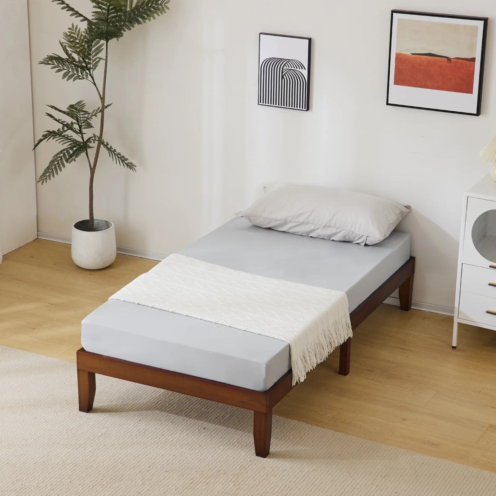 2025 Estructura de cama individual de madera con acabado marrón – diseño robusto y sencillo. 197.2 x 96.5 x 30.5 cm – ideal para habitación infantil.