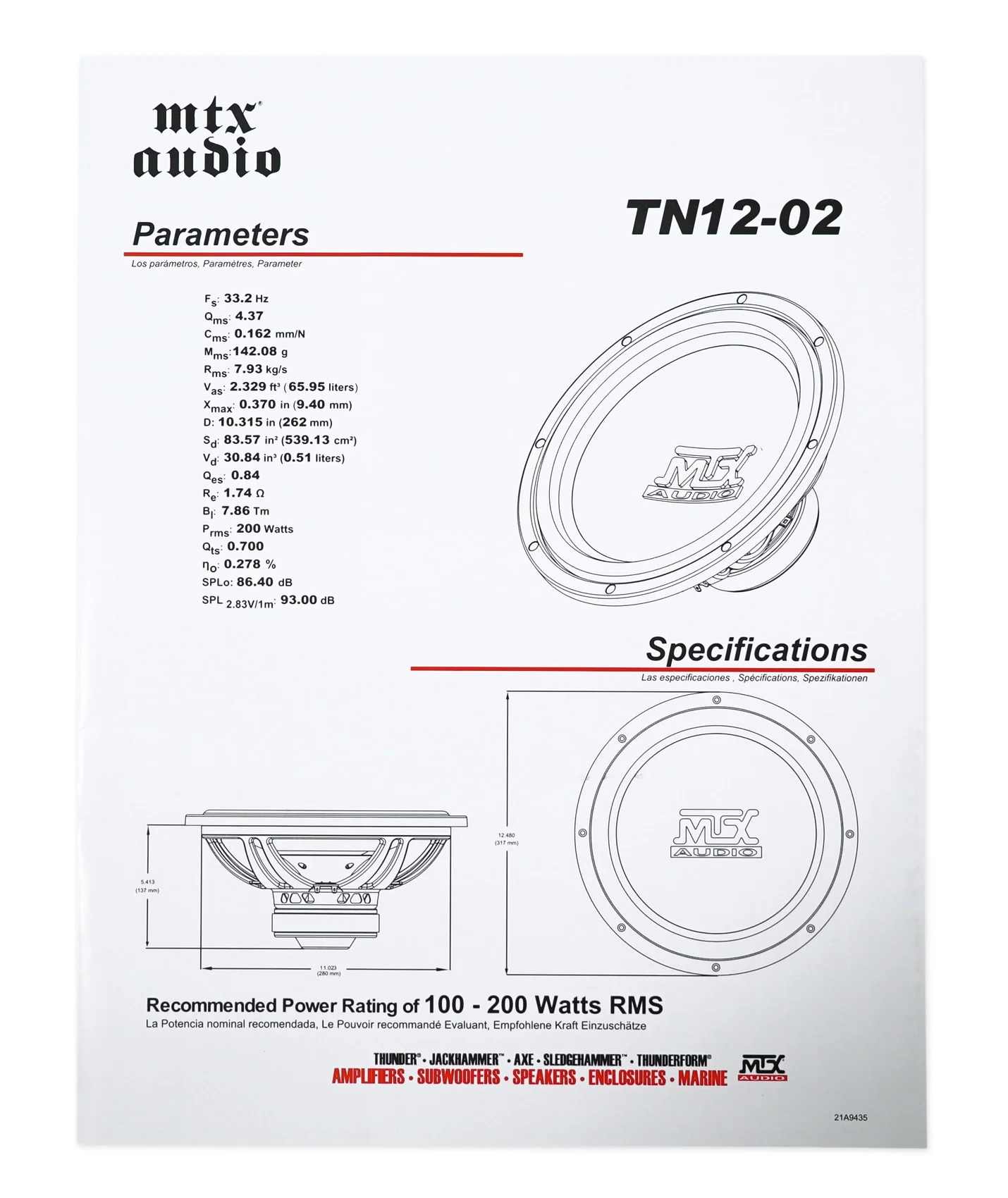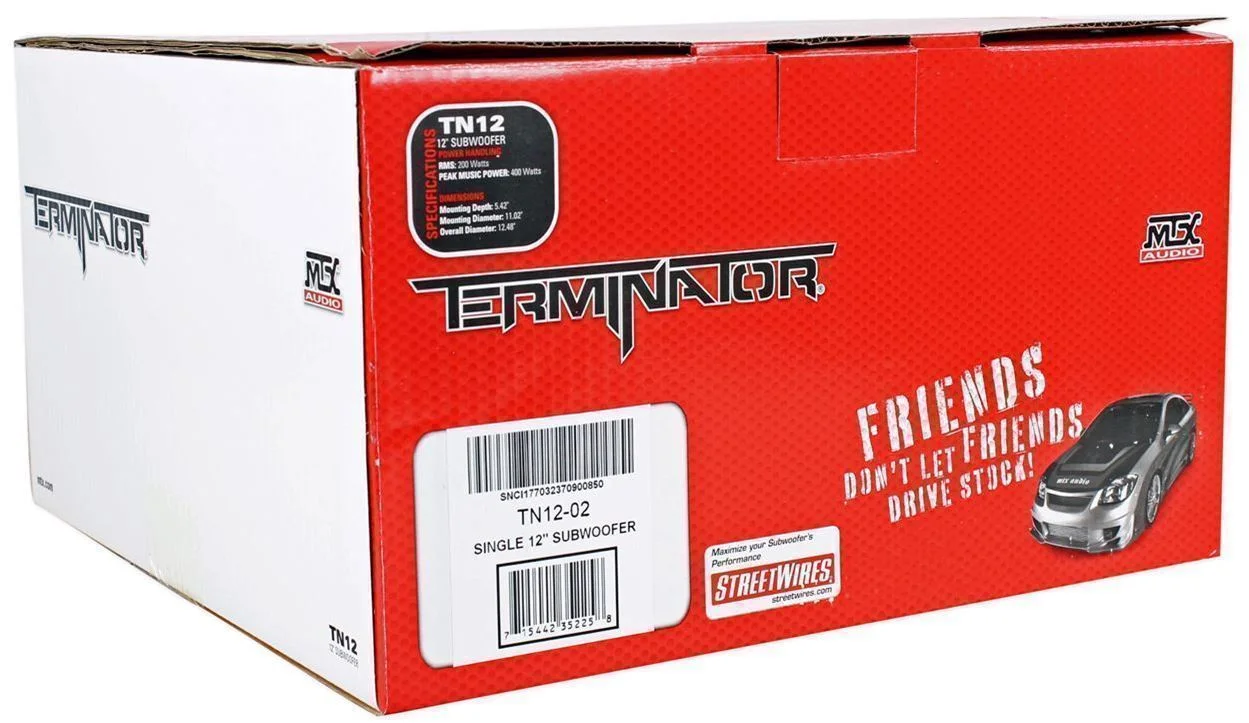2025 Subwoofer para coche MTX Terminator TN12-02 de 12 pulgadas. 400 Watts. con caja estanca