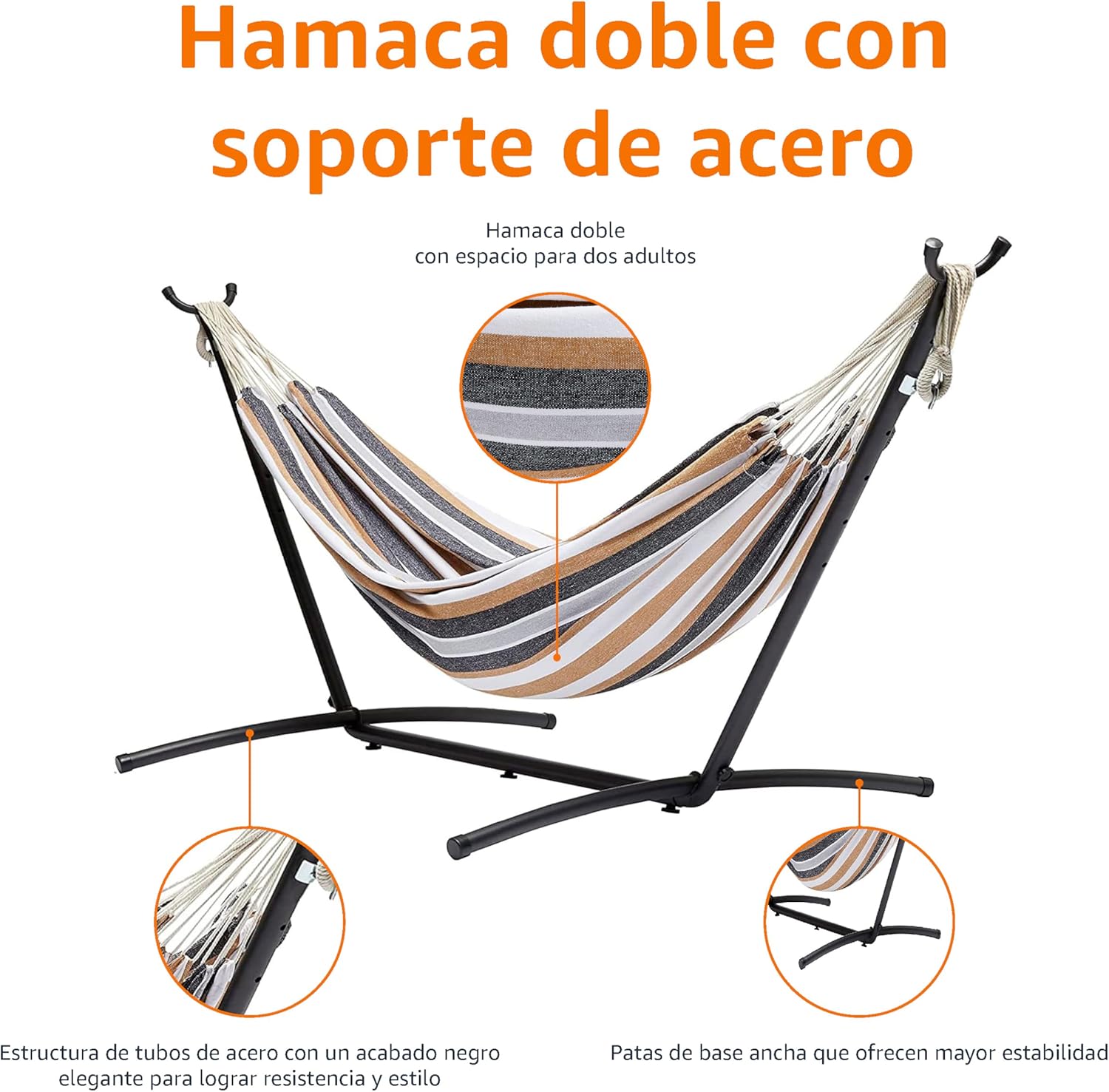 Amazon Basics medianas Hamaca de tela con soporte, Abigarrado, 300 x 117 x 100 cm