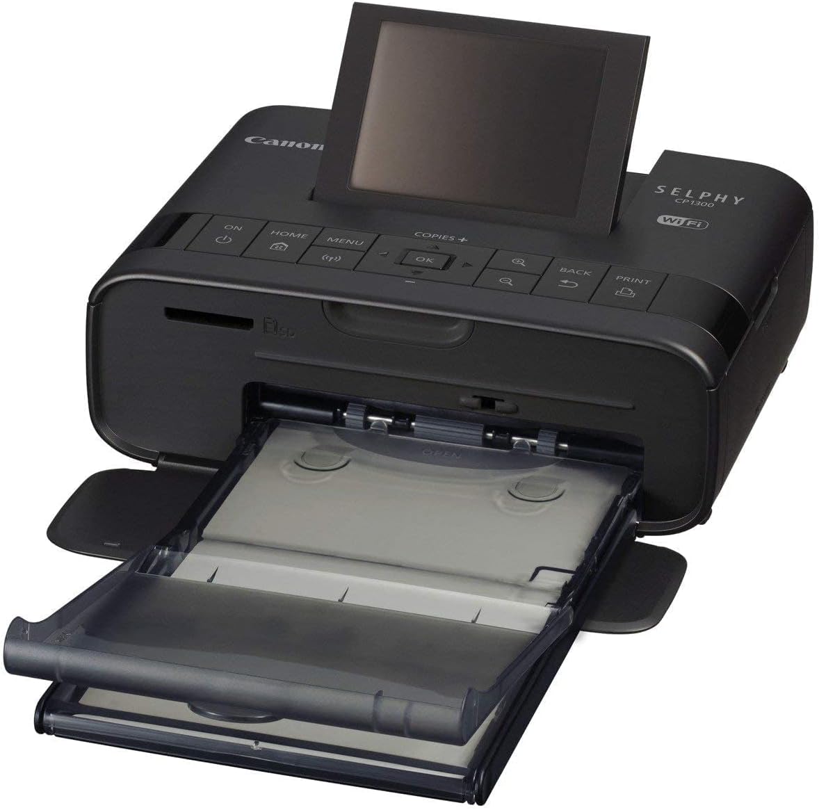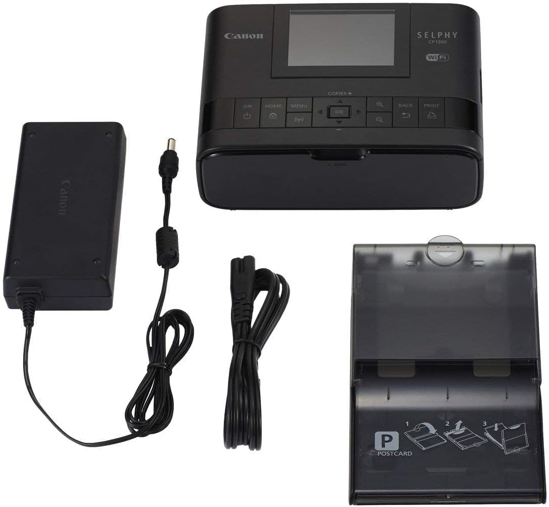 Canon Selphy CP1300 Wireless Photo Printer (Apple AirPrint, Mopria, 8.2 cm Flip Screen, 3 Color Inks, 300 x 300 dpi), Wifi, USB, Black
