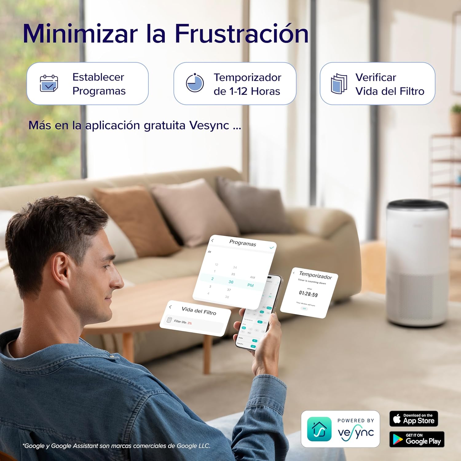 LEVOIT Purificador de Aire Inteligente con APP y ALEXA, Purificador de Aire CADR 400m³/h a 83m², 24dB Silencioso, Pantalla PM2.5, Filtro HEPA, Elimina el 99.97% de Alergias Polen Polvo Olores