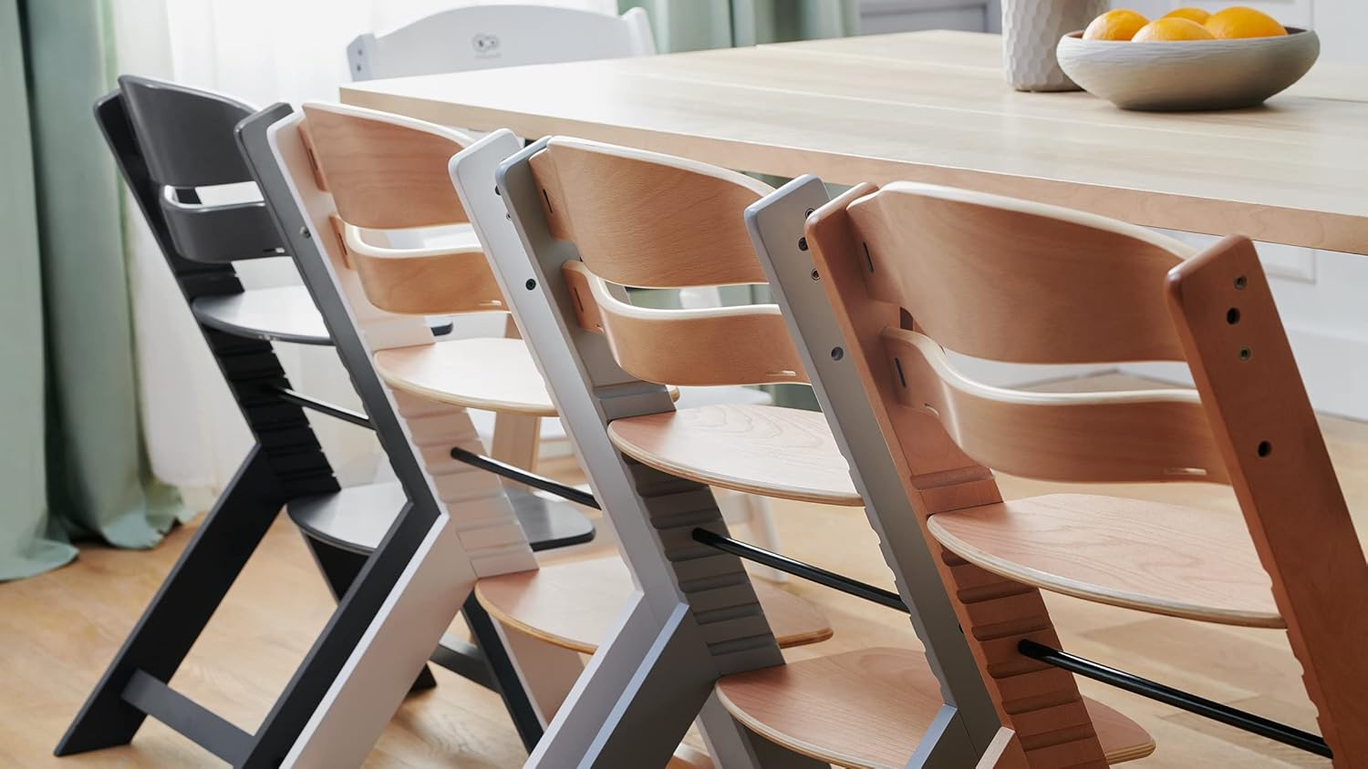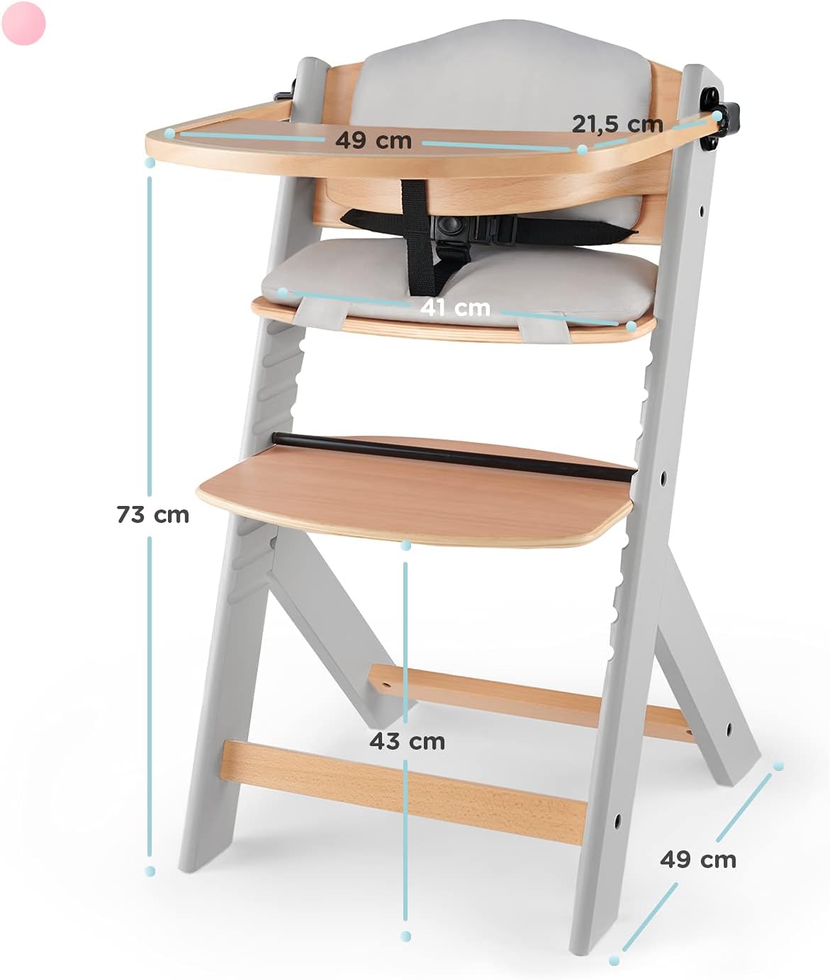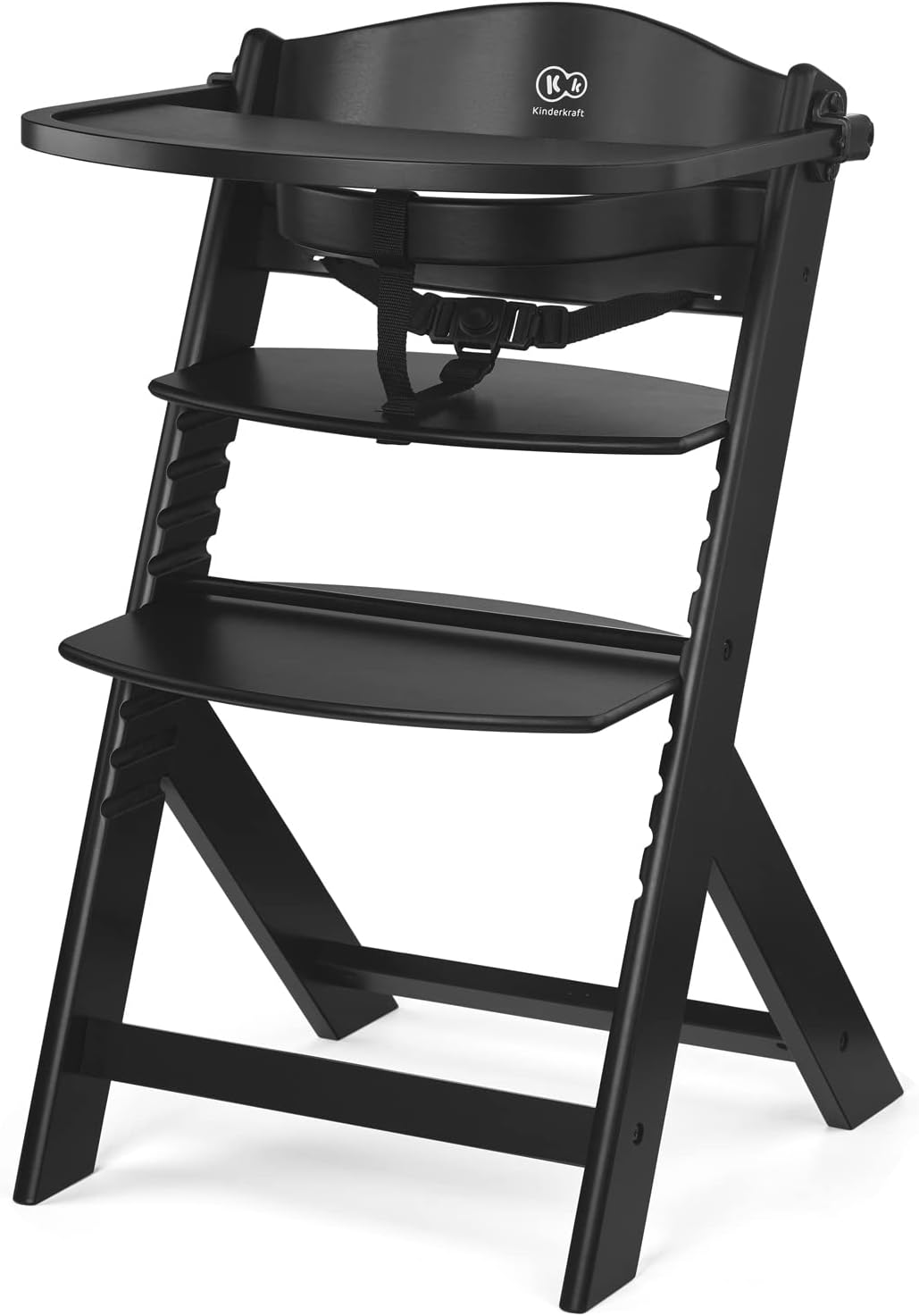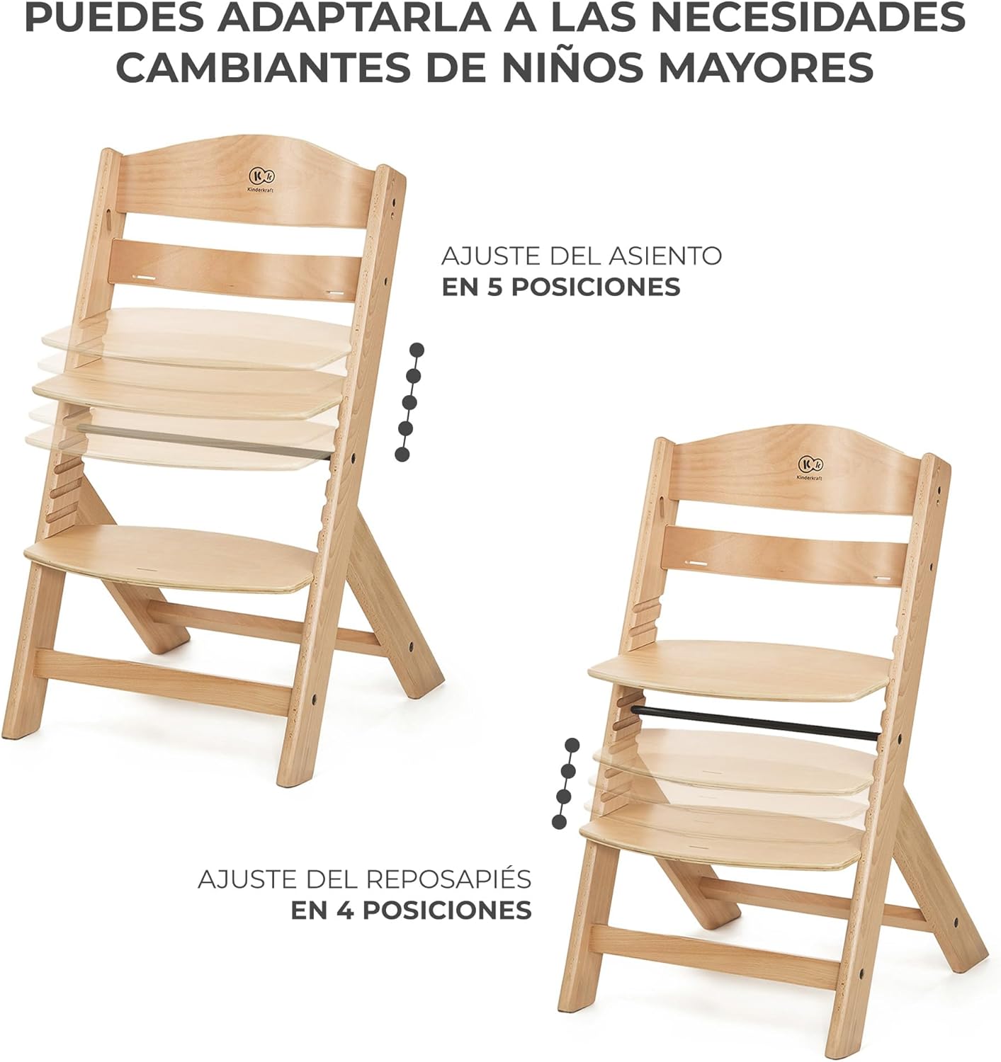 Kinderkraft ENOCK Trona bebé de Madera + Hamaca Bebé CALMEE, portatil, para niños, Silla alta Infantil, Evolutiva, Ergonómica, Barrera y Bandeja, Gris