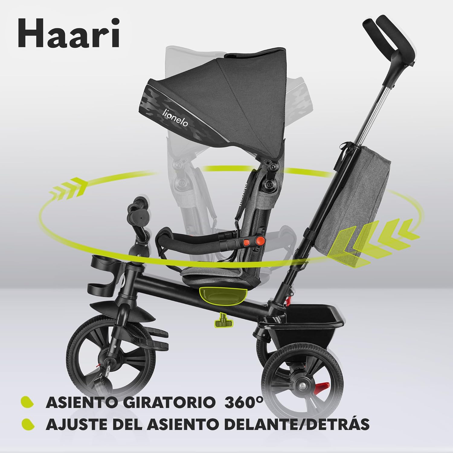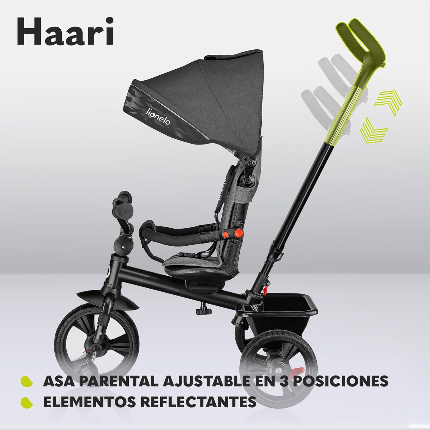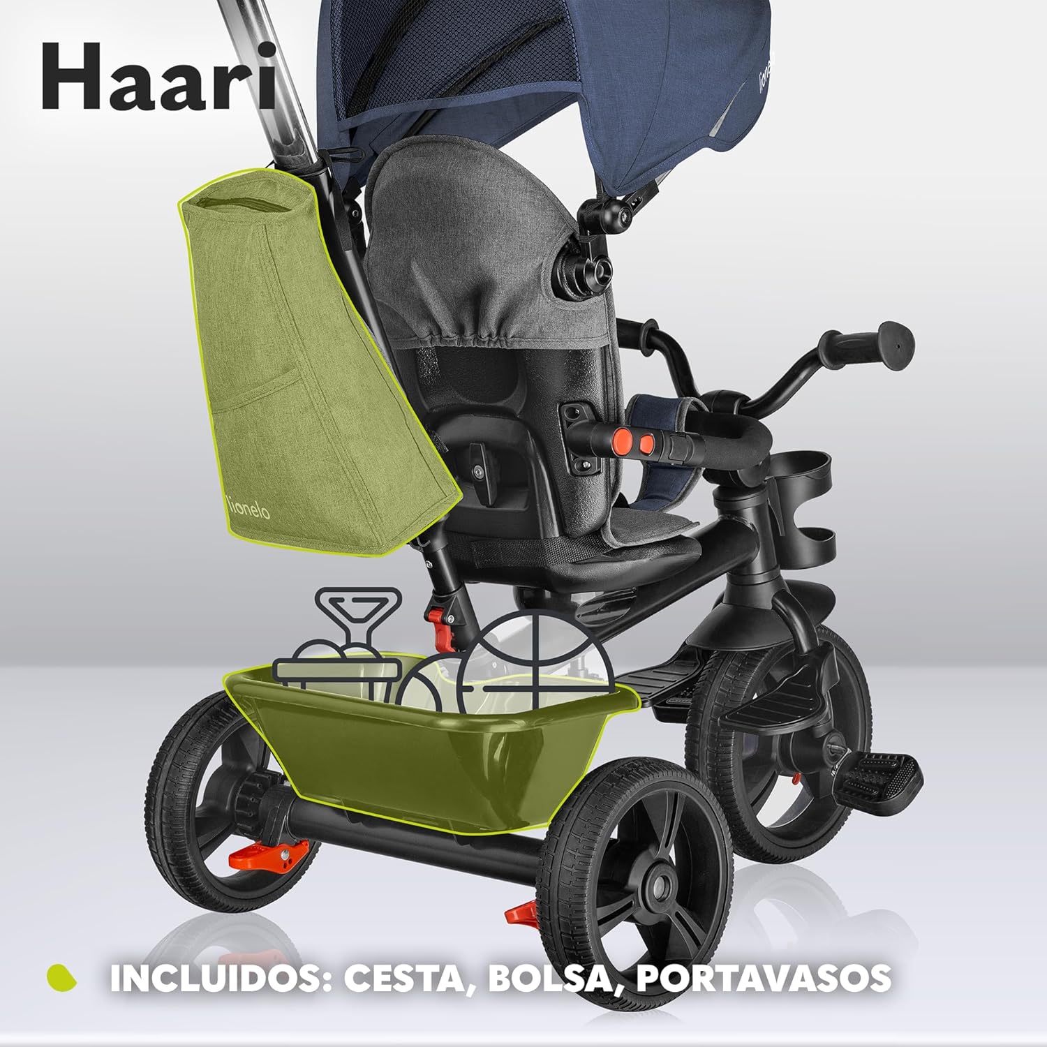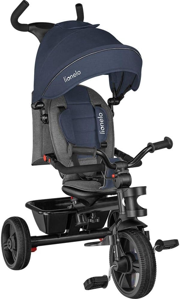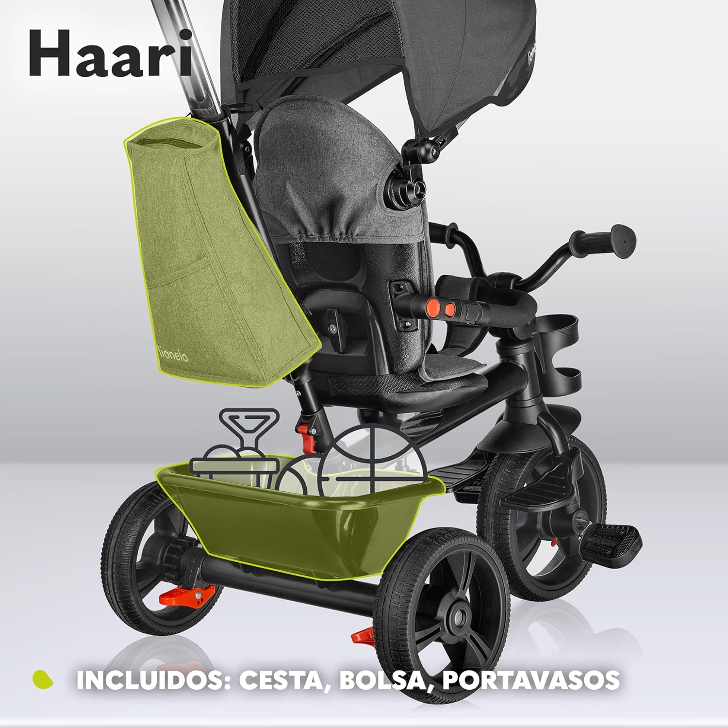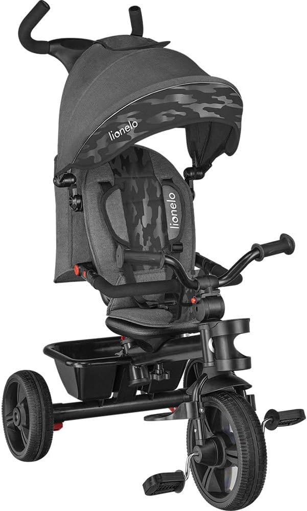 LIONELO Haari Bicicleta 2 en 1 Menores hasta 25 kg 1,5-5 años Triciclo- Carrito Cesta espaciosa, Bolsa y portavasos Cinturones de 3 Puntos con Fundas Toldo Reposapiés Gris