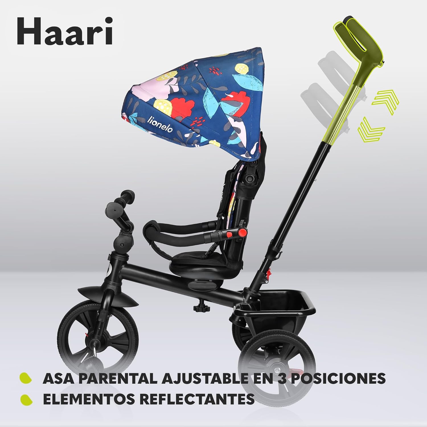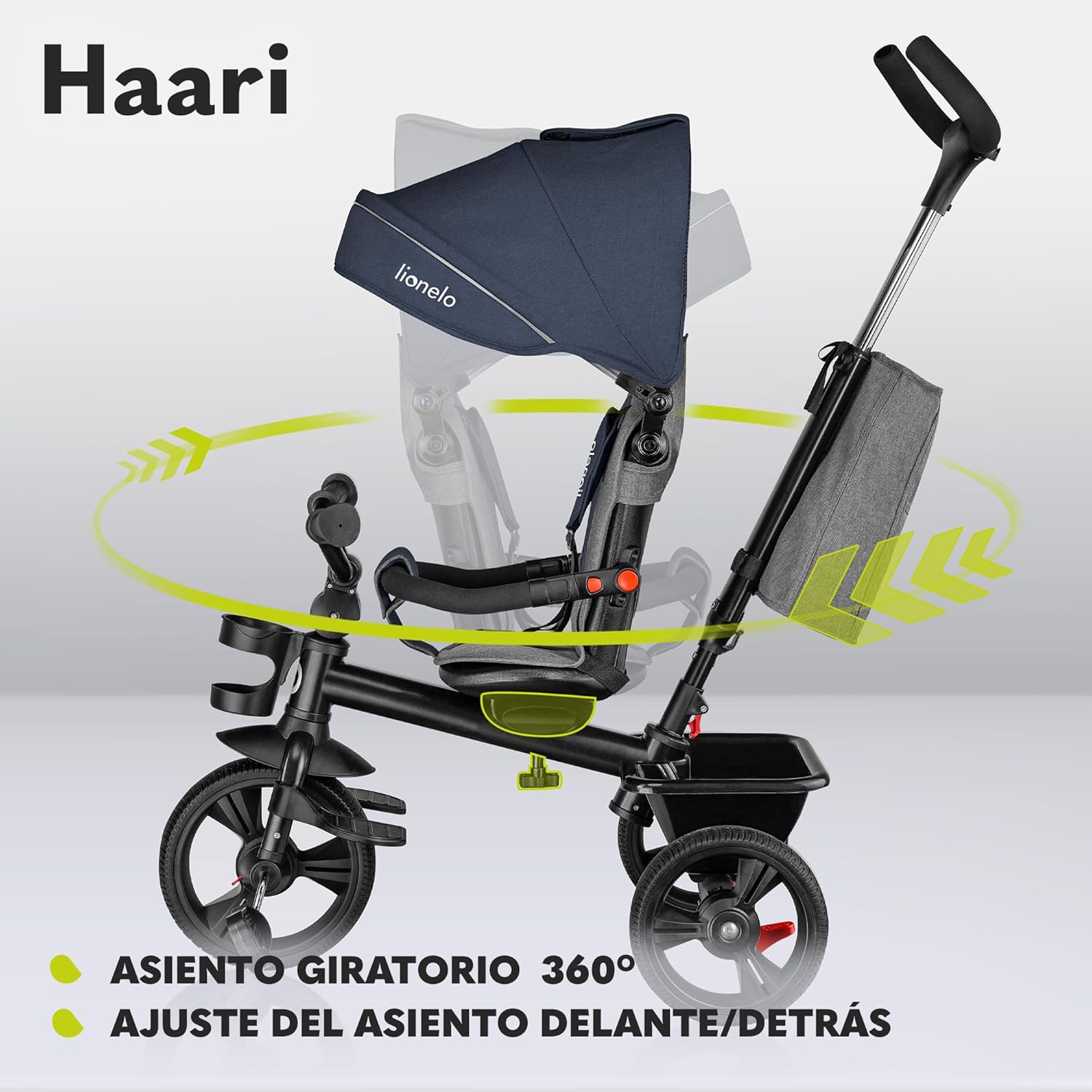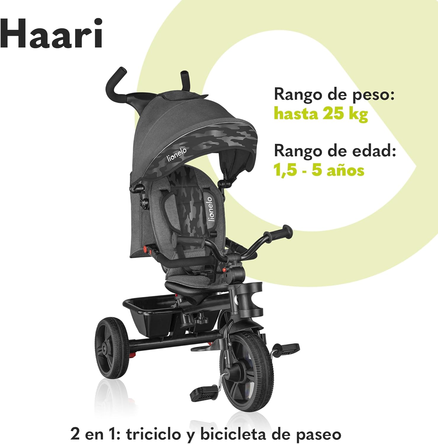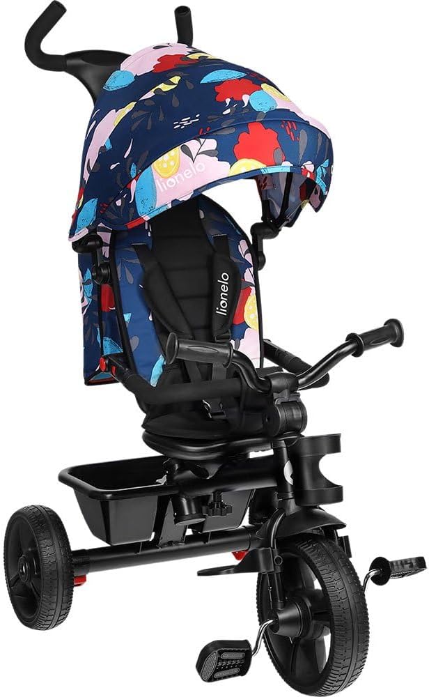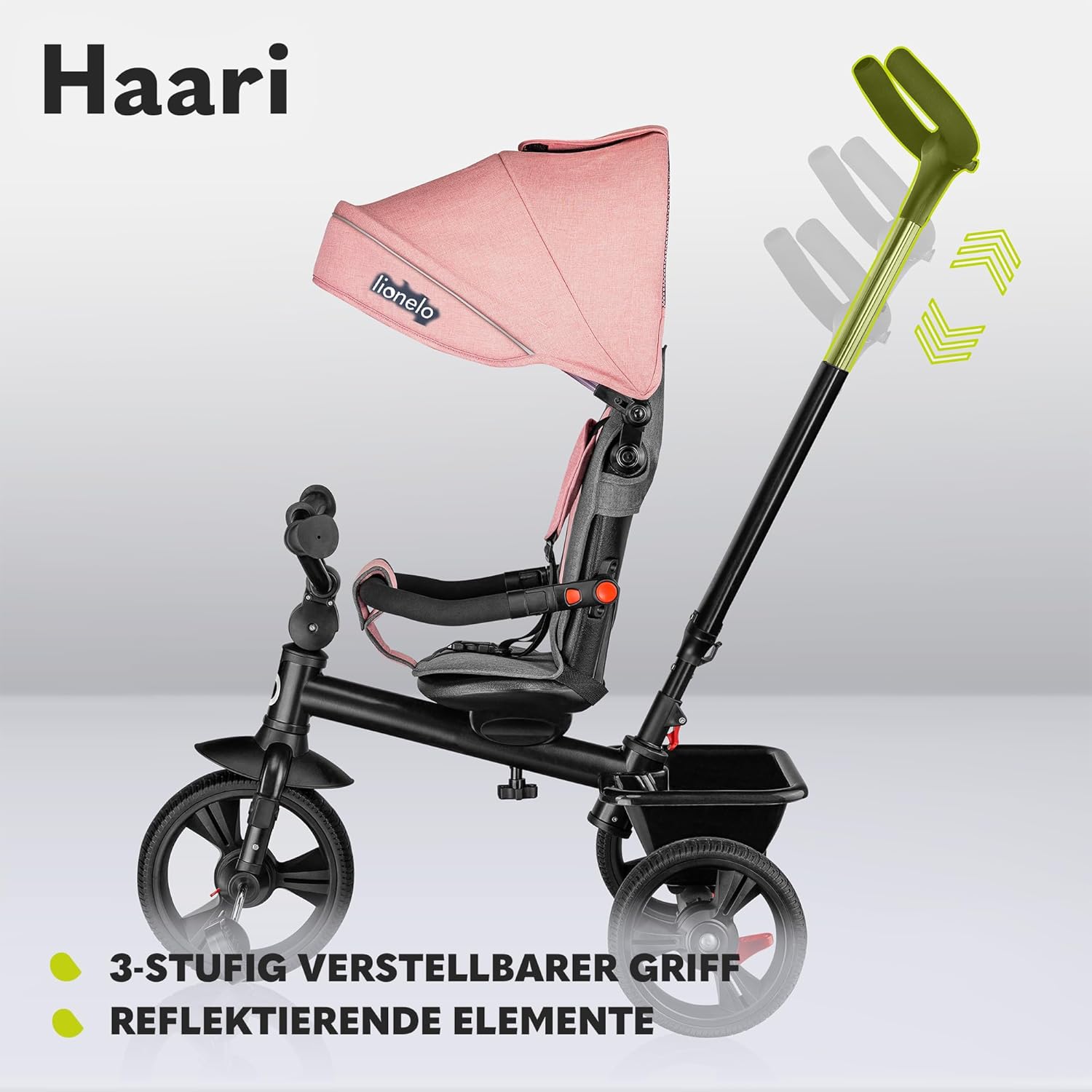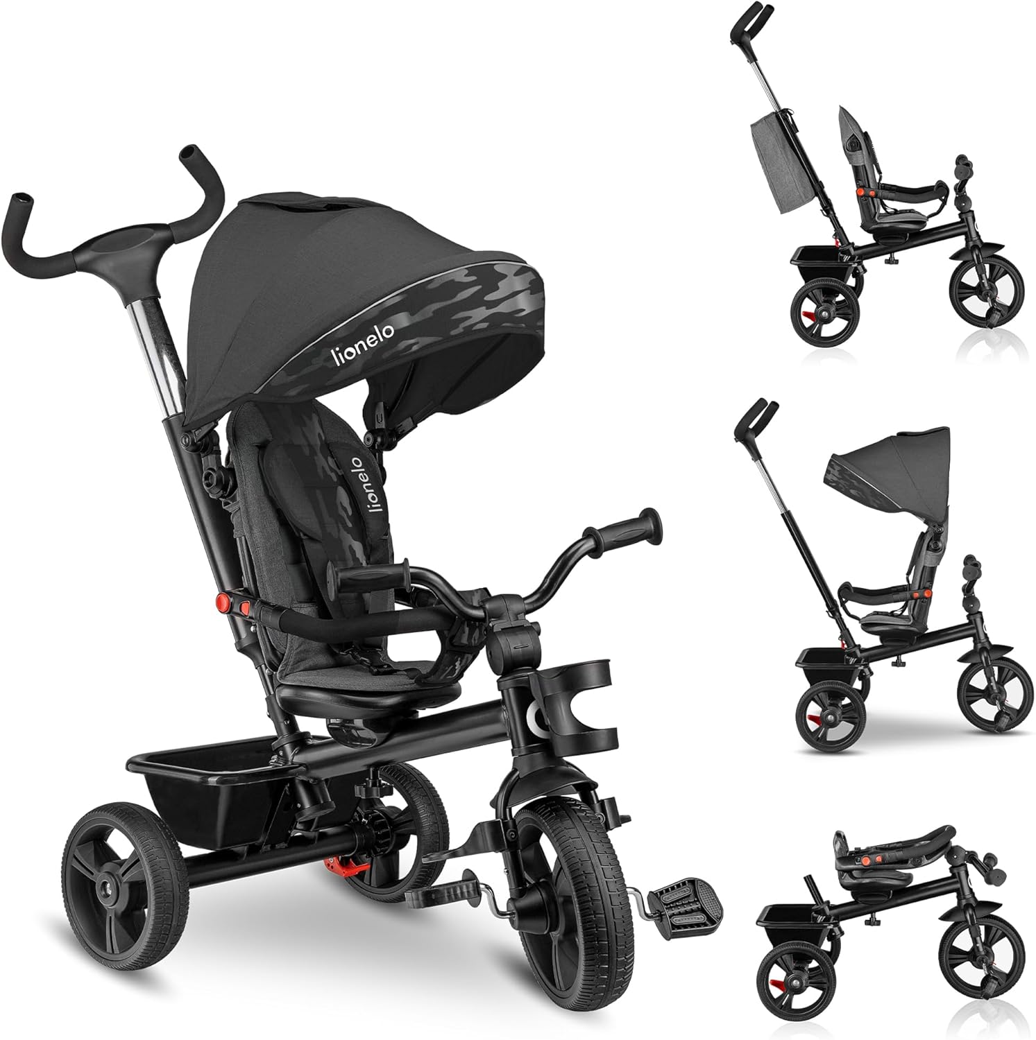 LIONELO Haari Bicicleta 2 en 1 Menores hasta 25 kg 1,5-5 años Triciclo- Carrito Cesta espaciosa, Bolsa y portavasos Cinturones de 3 Puntos con Fundas Toldo Reposapiés Gris