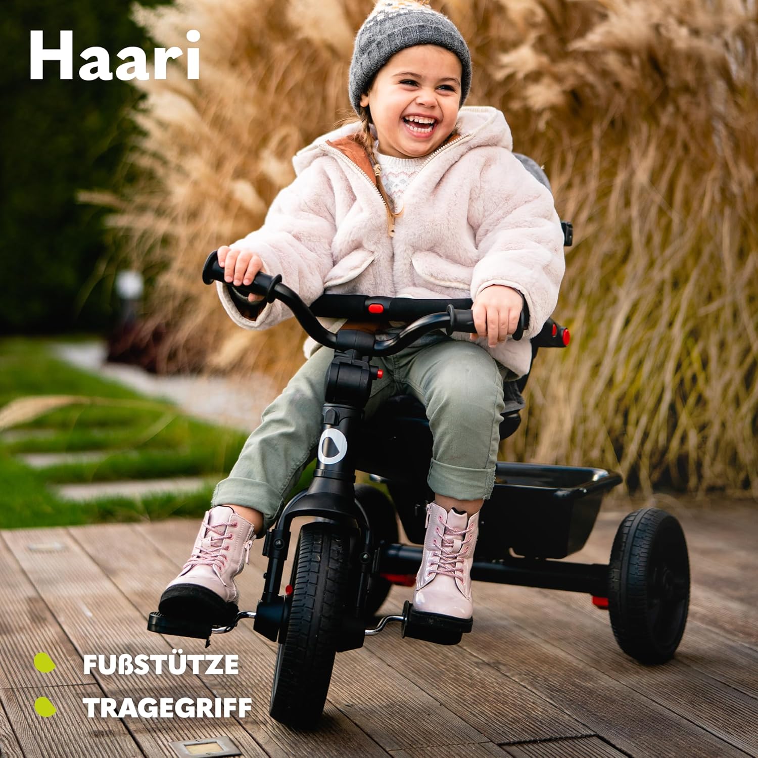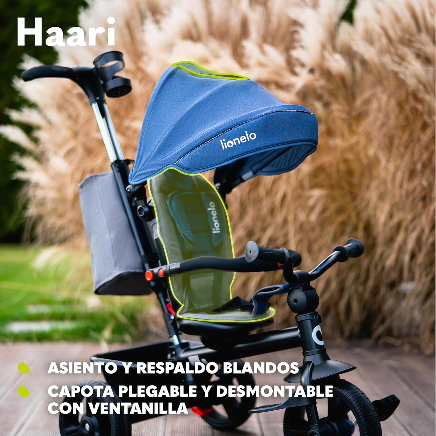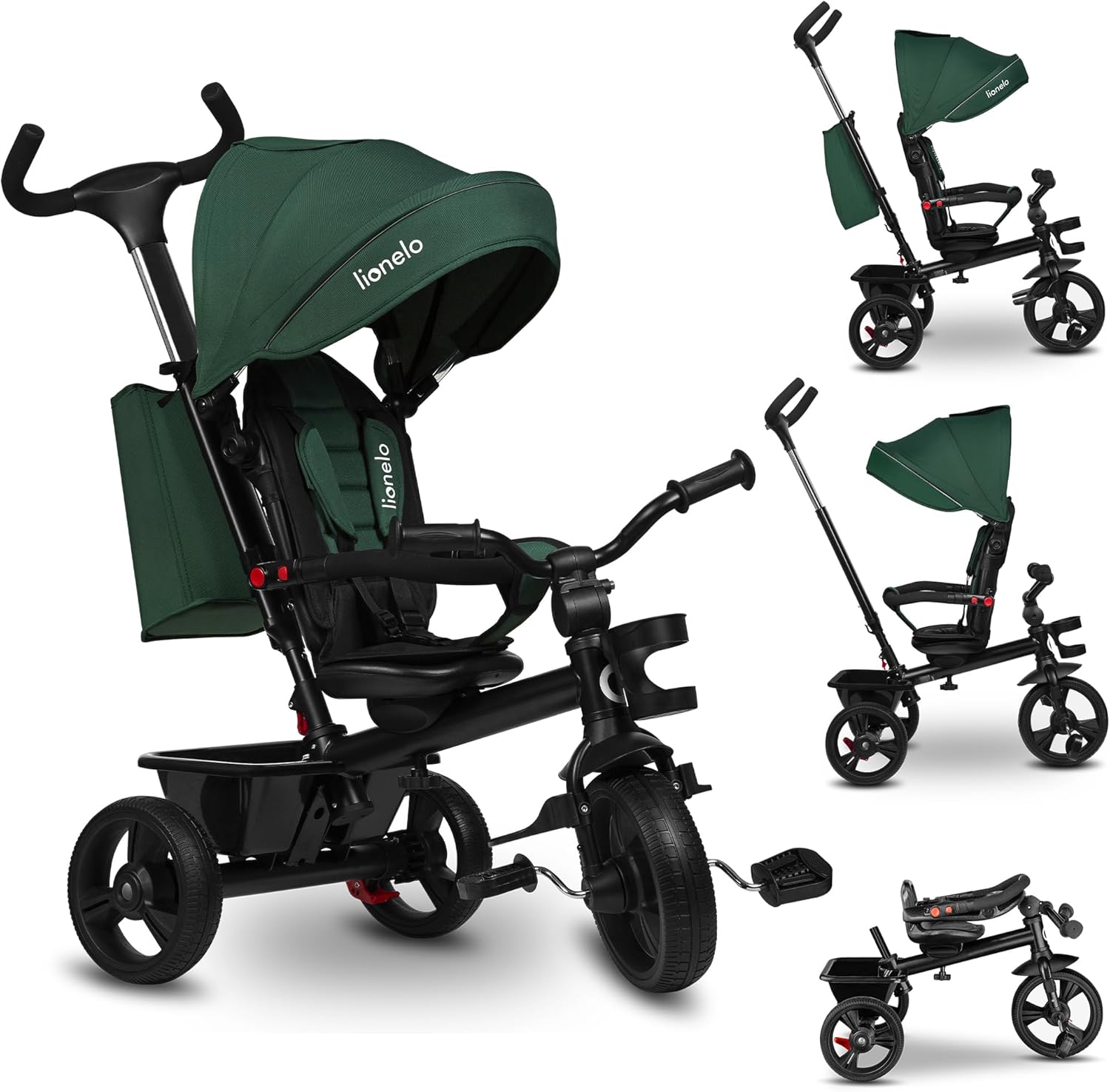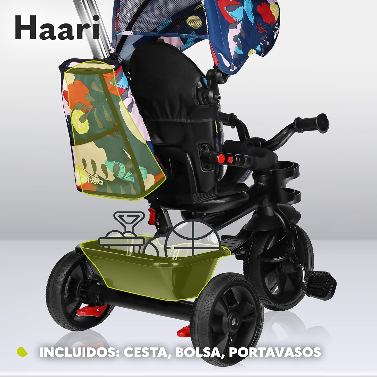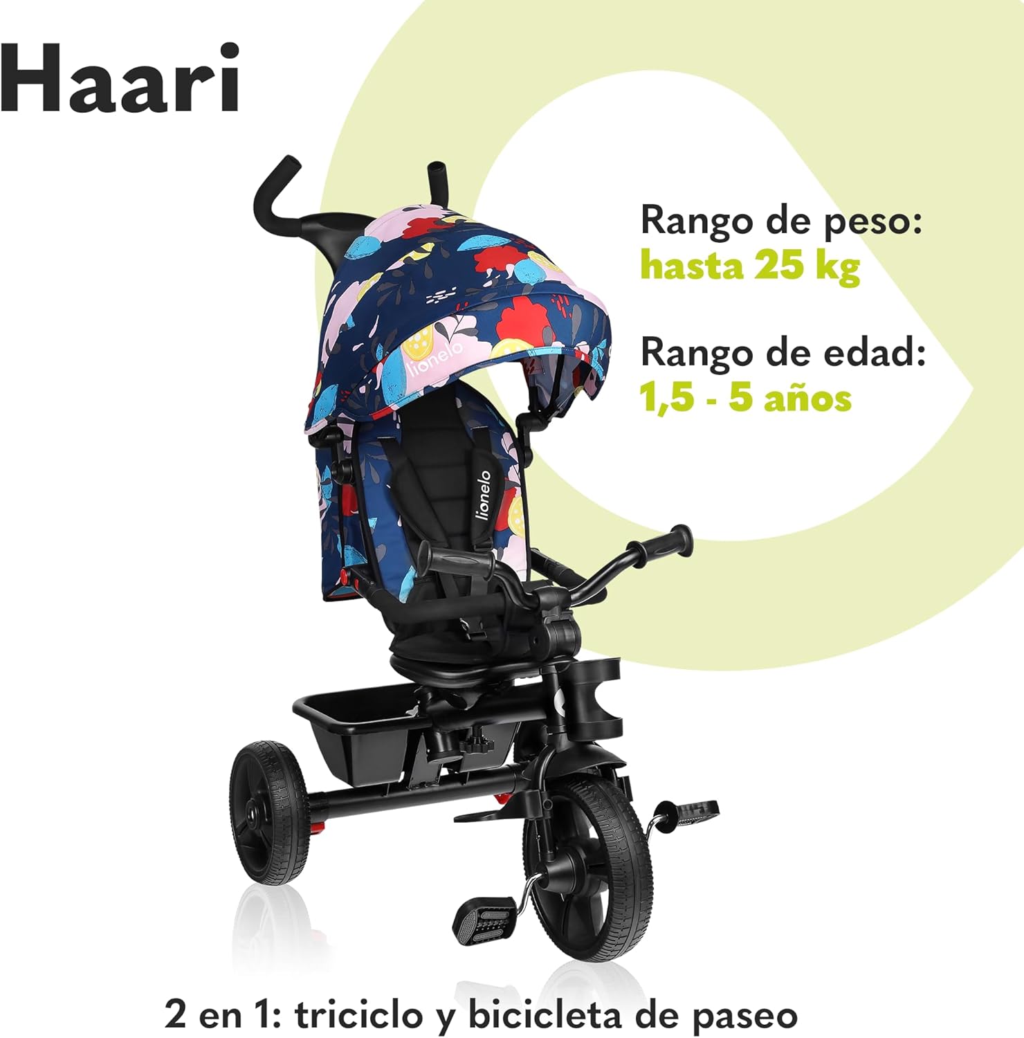 LIONELO Haari Bicicleta 2 en 1 Menores hasta 25 kg 1,5-5 años Triciclo- Carrito Cesta espaciosa, Bolsa y portavasos Cinturones de 3 Puntos con Fundas Toldo Reposapiés Gris