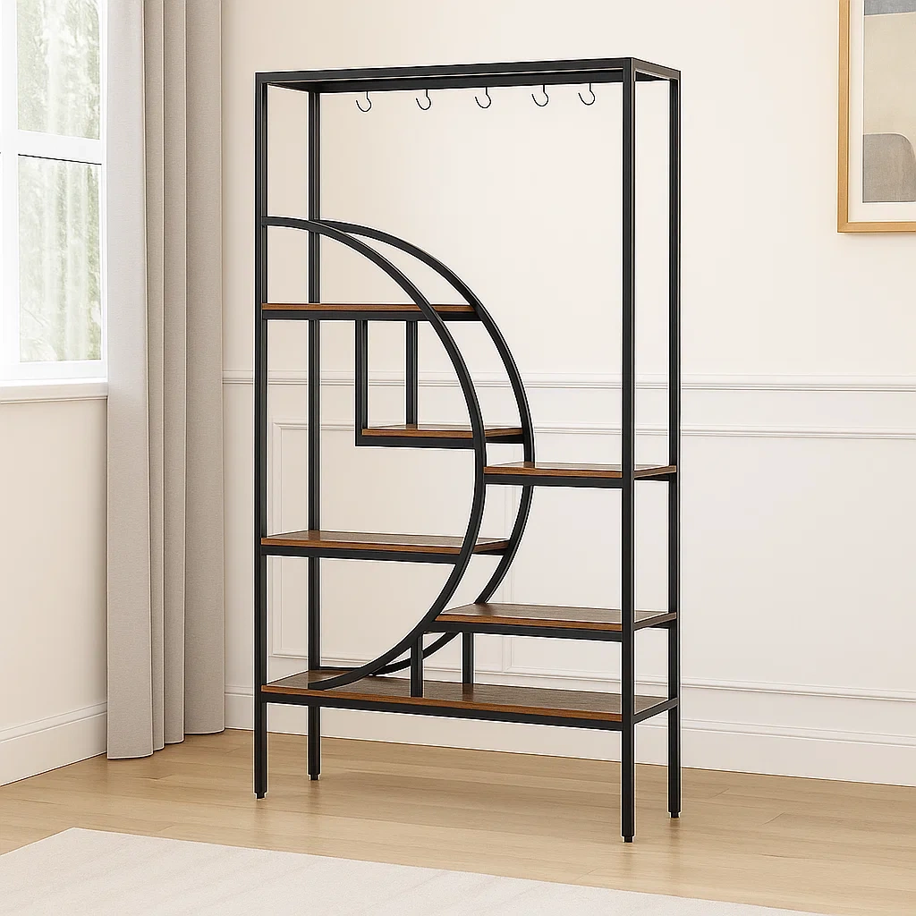 Soporte para plantas de 7 niveles con ganchos en forma de S - Marrón - Madera y metal - Interior - 105×30×180 cm - 2Dv7JeD9RcR8