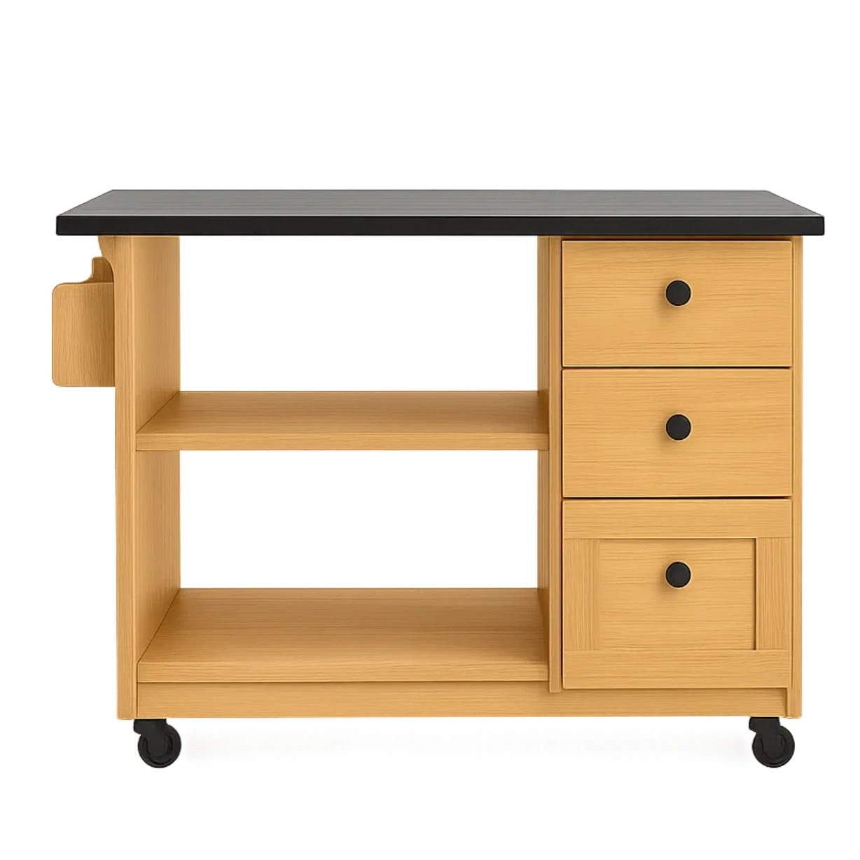 Isla cocina rectangular,con estantes y cajones,madera color natural,con ruedas,120x60x90 cm,para cocina doméstica. - zydIcYLoR87O