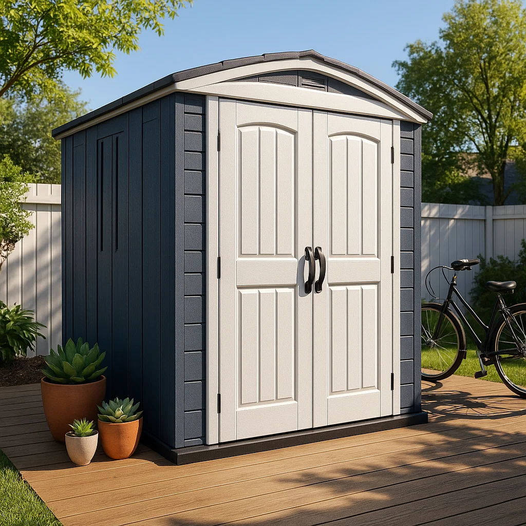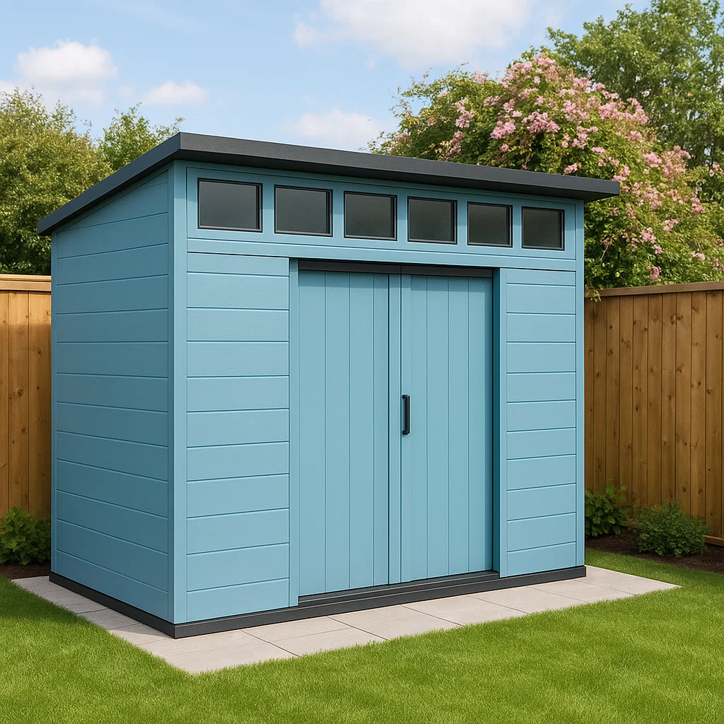 Caseta de jardín Caseta exterior Azul cielo Resina Almacenamiento de jardín 190x150x200 cm ecKgZxL215eE