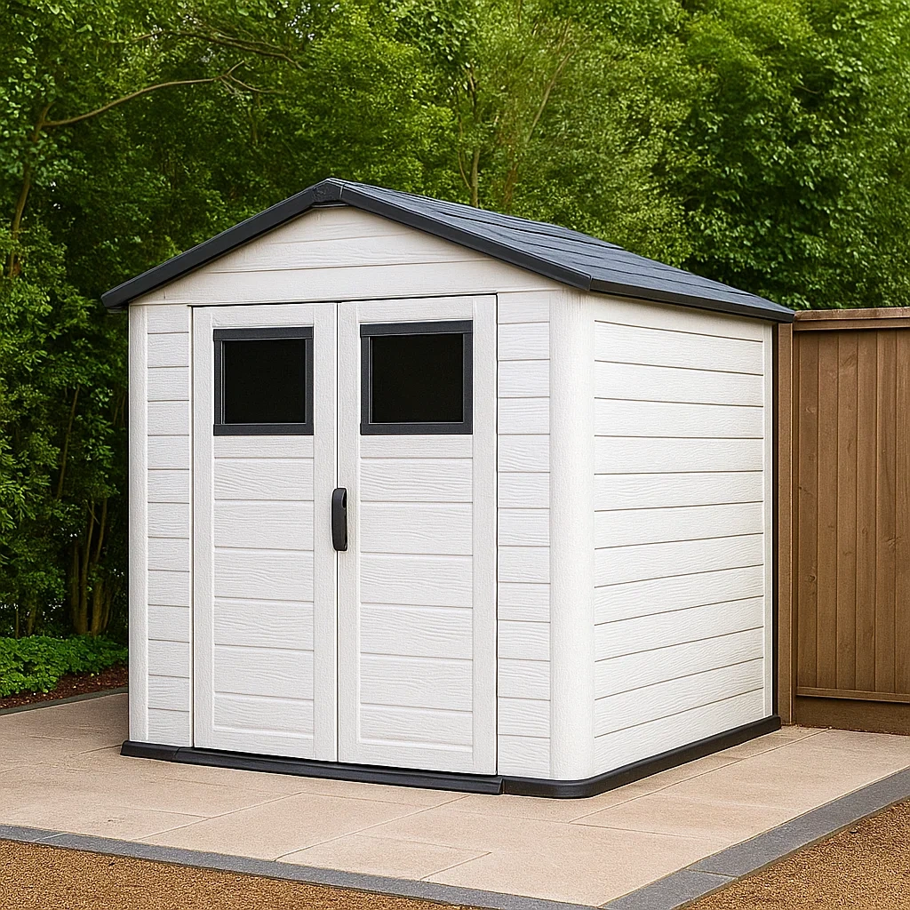 Caseta de jardín,de resina,diseño rectangular,material resina,color blanco y negro,techo a dos aguas,instalación independiente,tamaño 180x170x220 cm,uso para almacenamiento en jardín - CSUlHzXBI2um