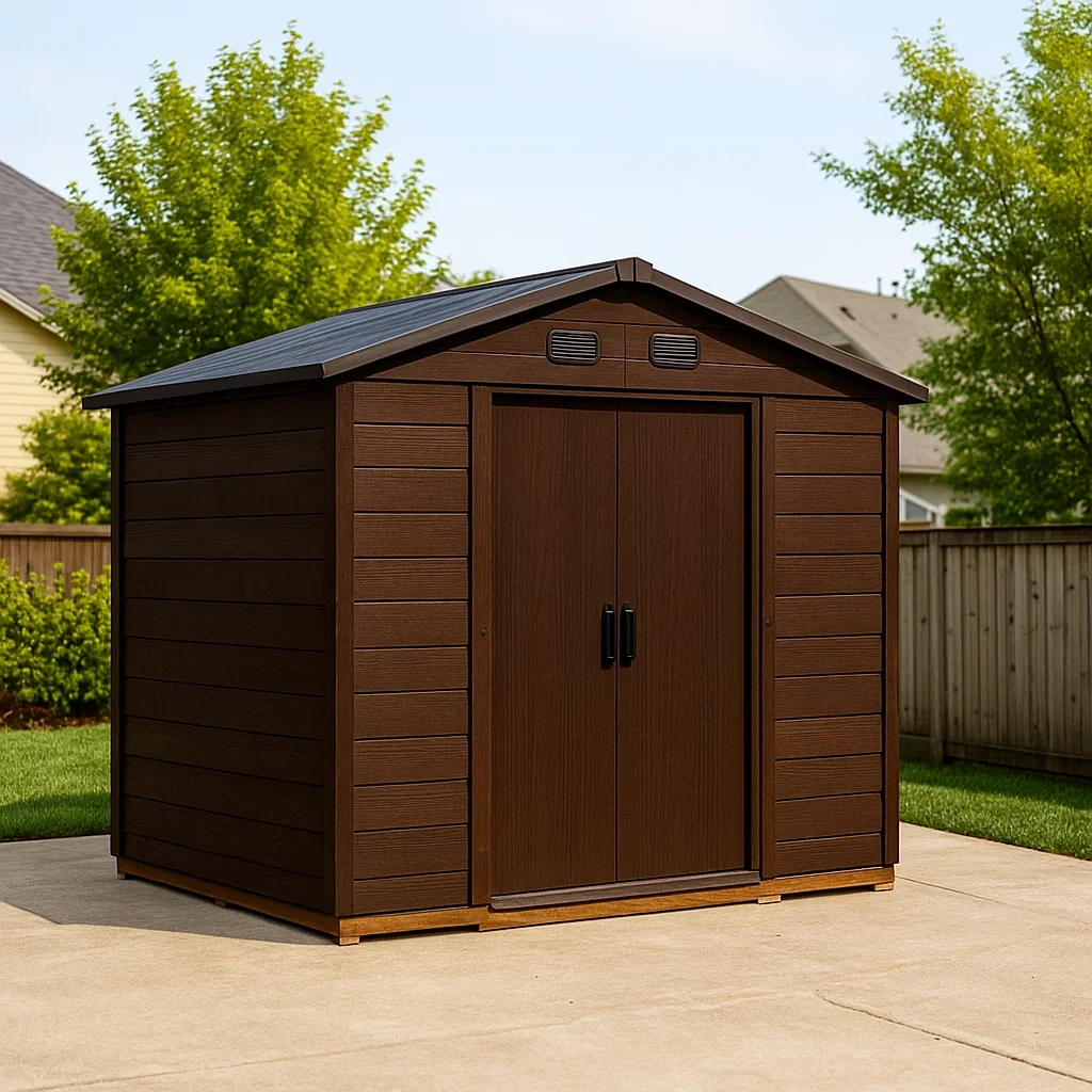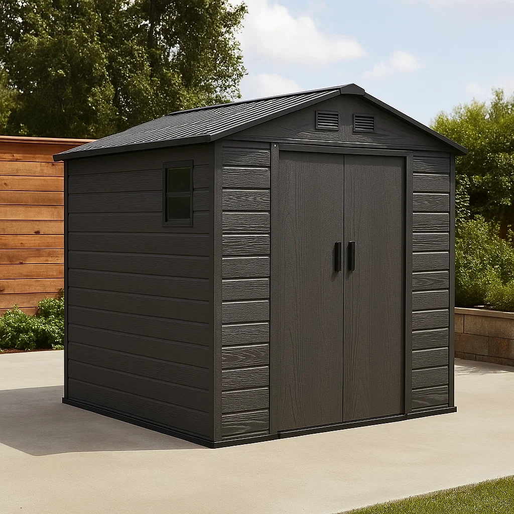 Caseta de jardín,de resina,con puertas dobles,color marrón y negro,tamaño 250x200x220 cm,para jardín exterior - YNWjgCxVzzLW