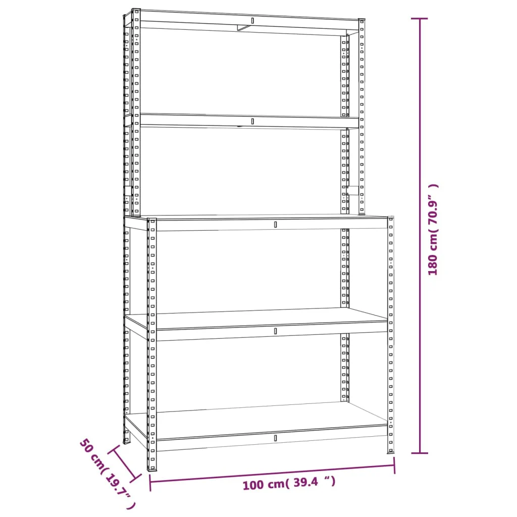 2025 Mesa de Trabajo con 5 Estantes Plateada en Acero y Panel de Madera Derivada